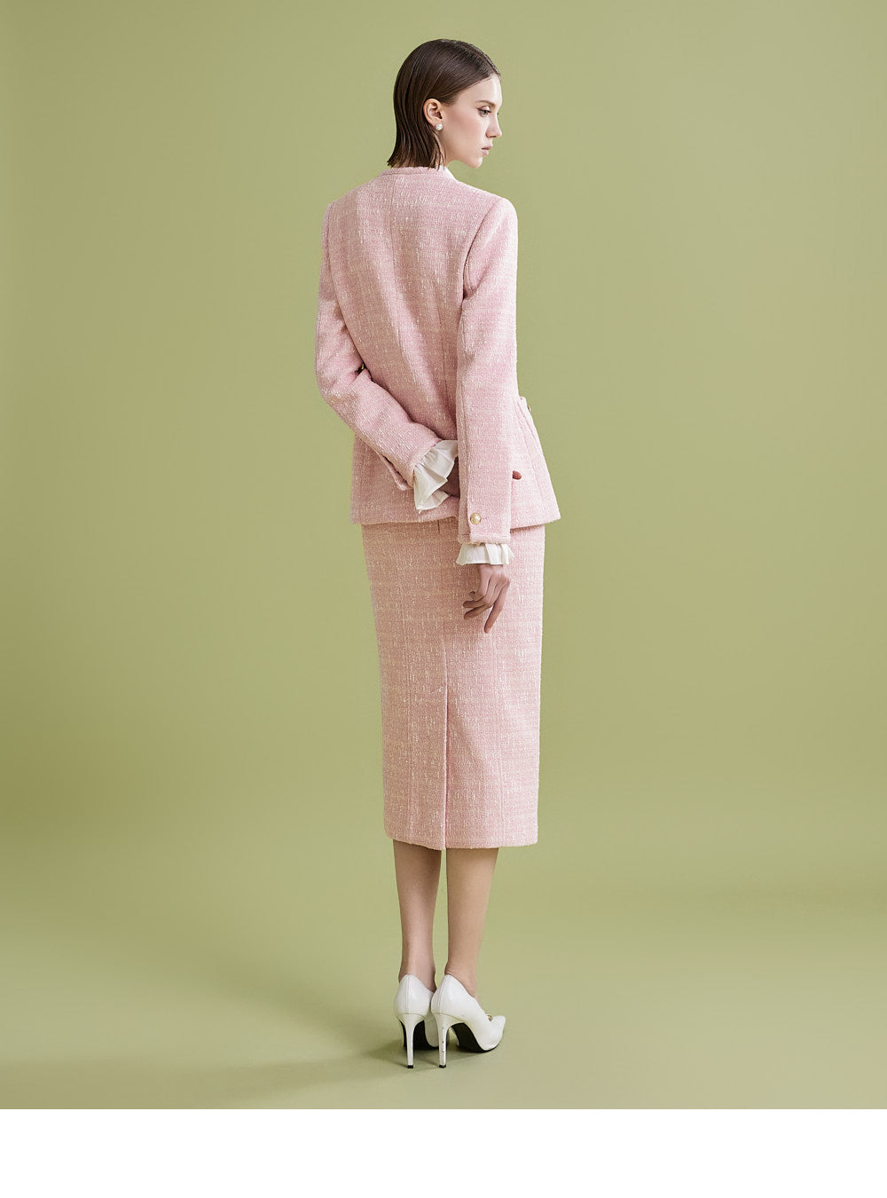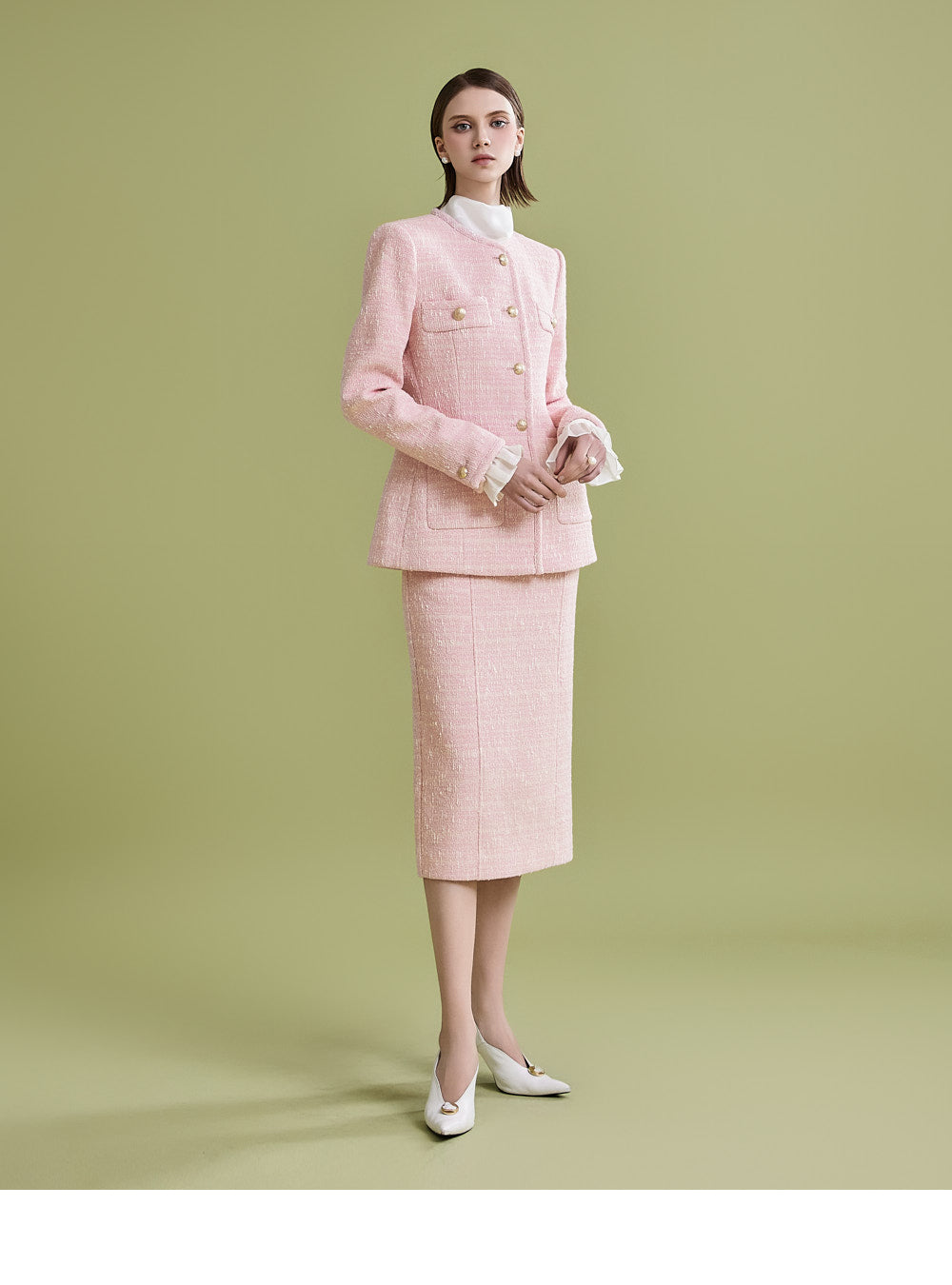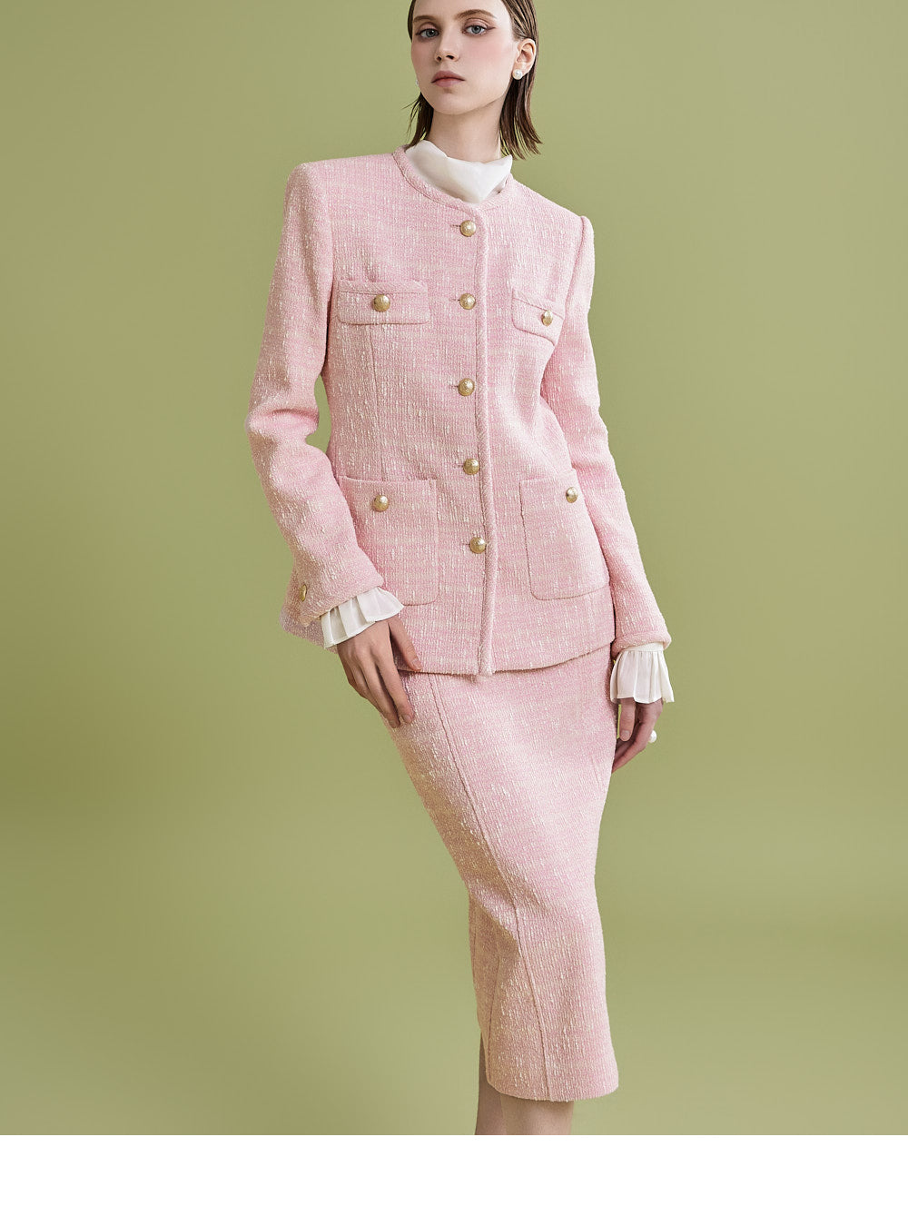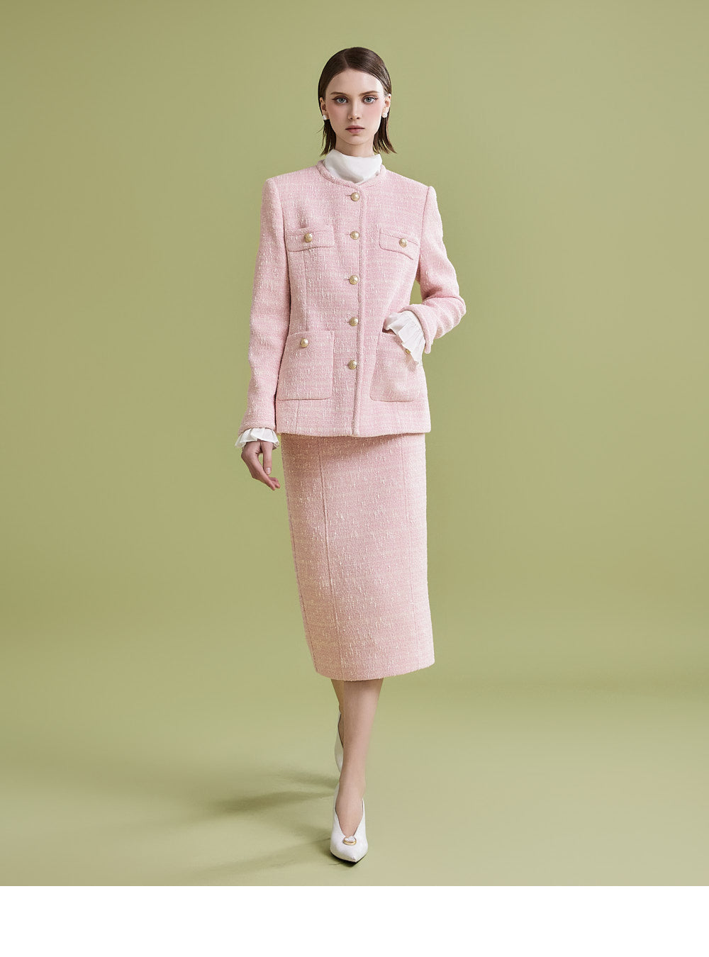 様々なトップスとの相性が良く、ツイード生地でフェミニンなムードを漂わせます。