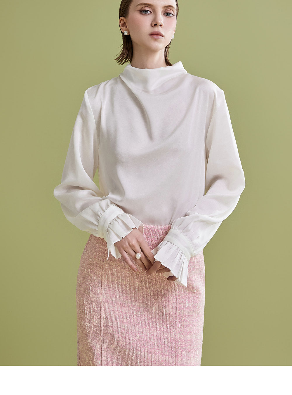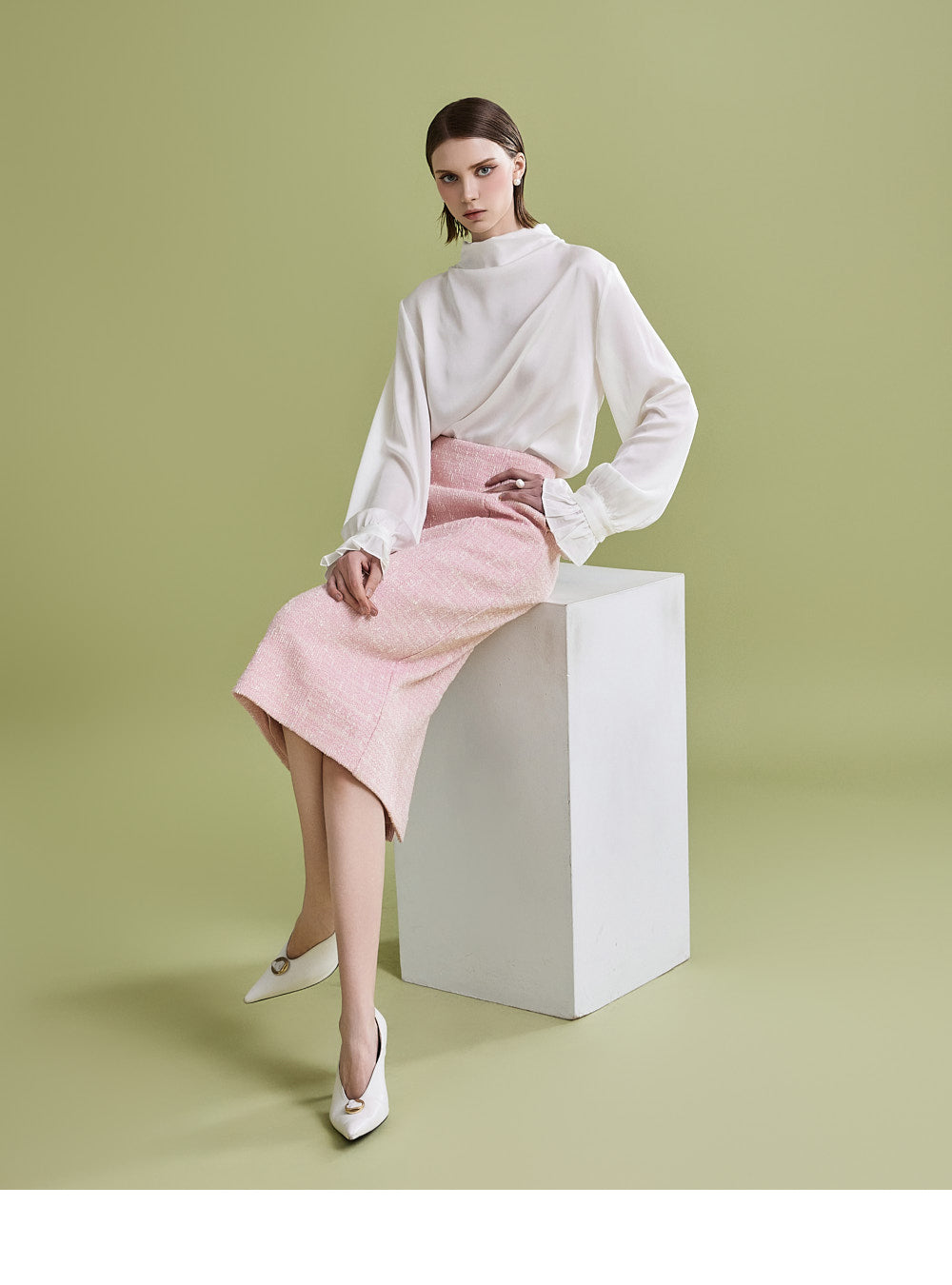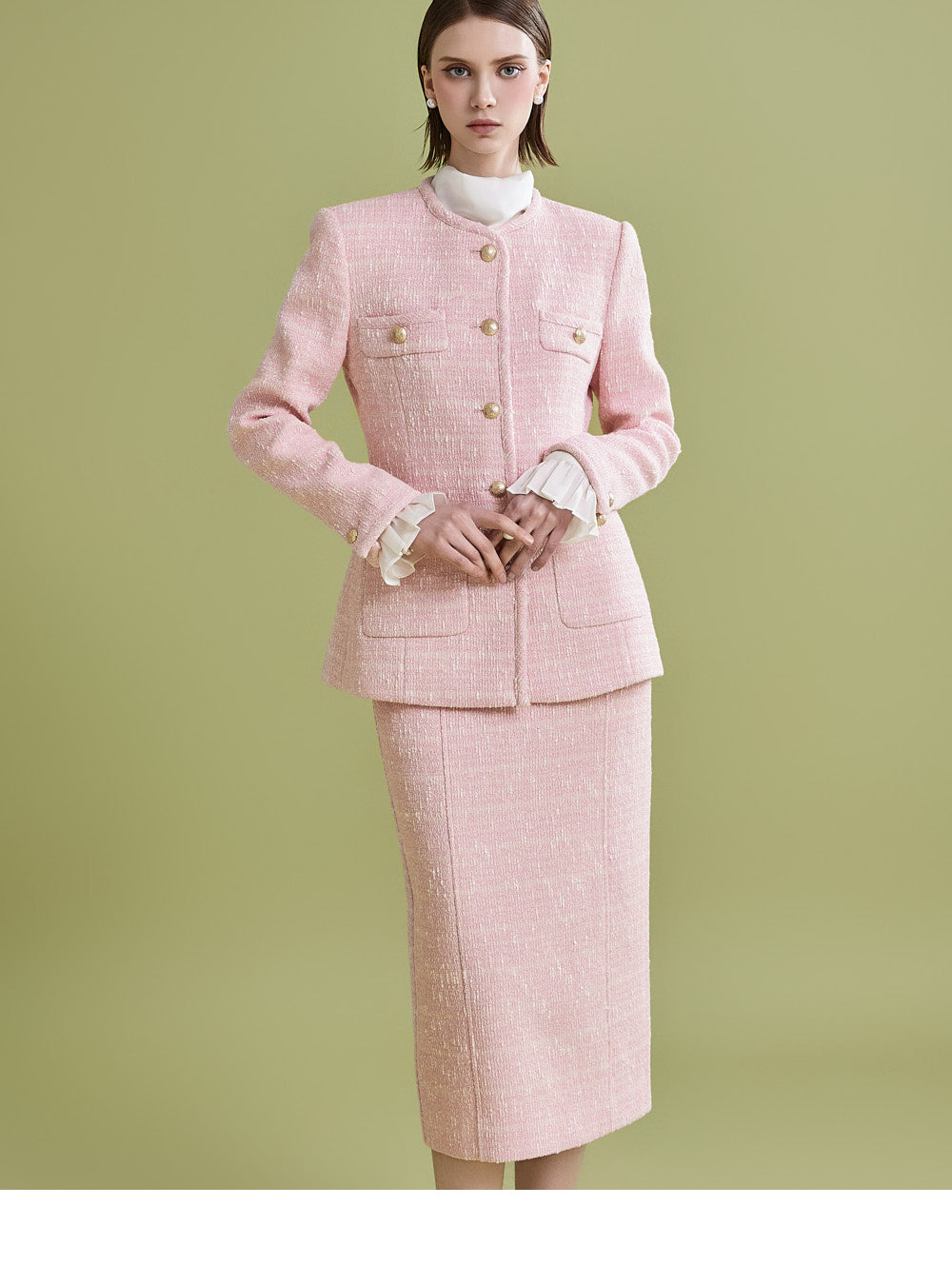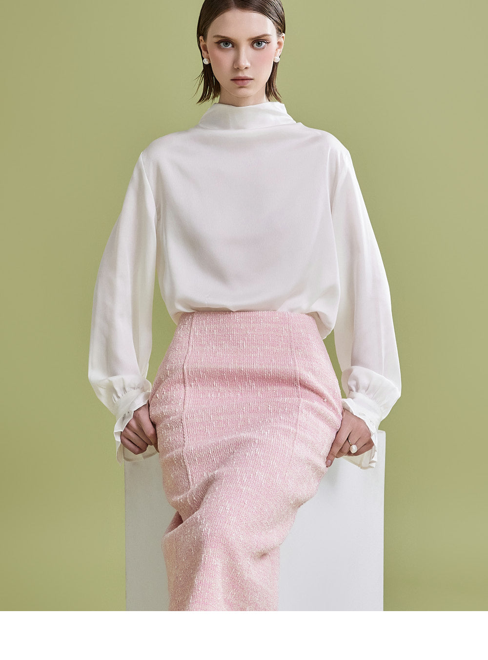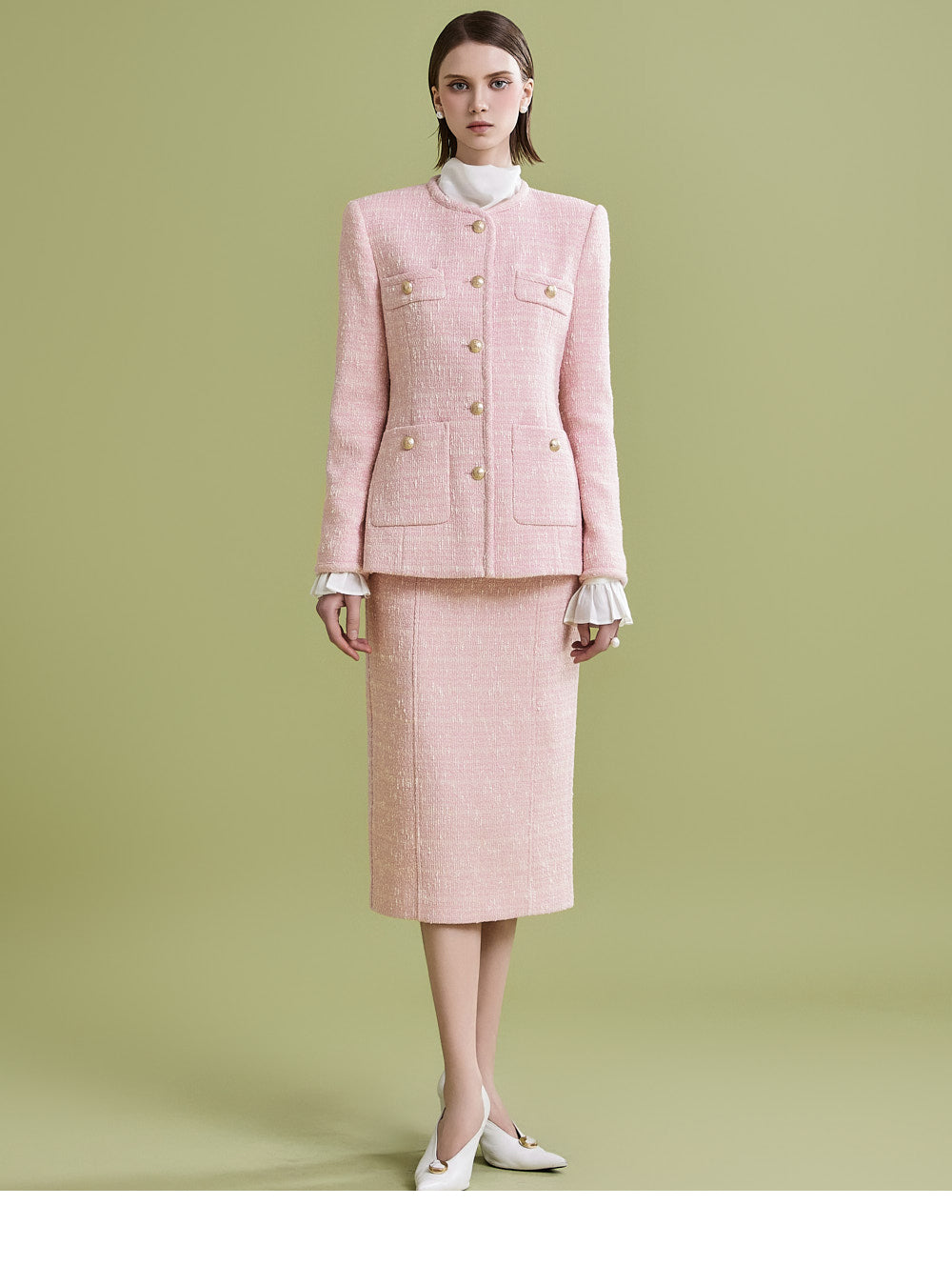 様々なトップスとの相性が良く、ツイード生地でフェミニンなムードを漂わせます。