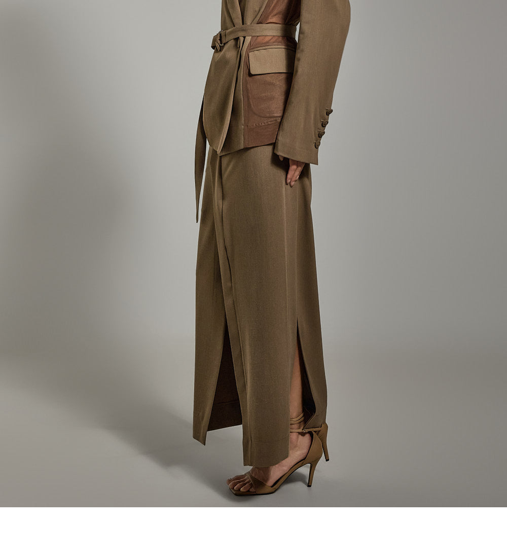 フロントとサイドにスリットが入っていて、楽な着心地と