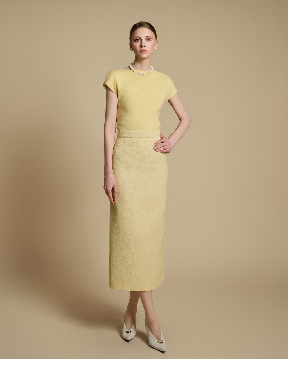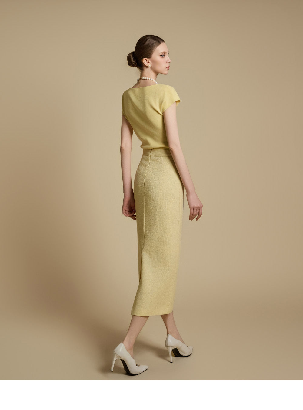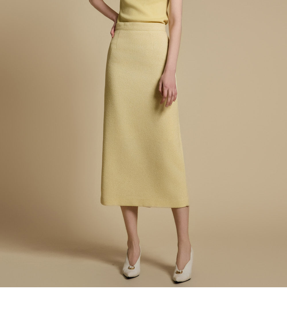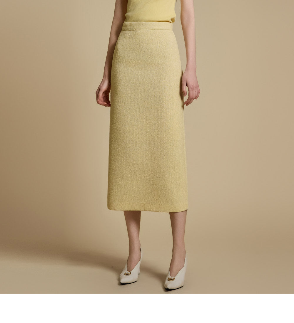ミディ丈はウエストラインに沿ってすっきりと落ち、