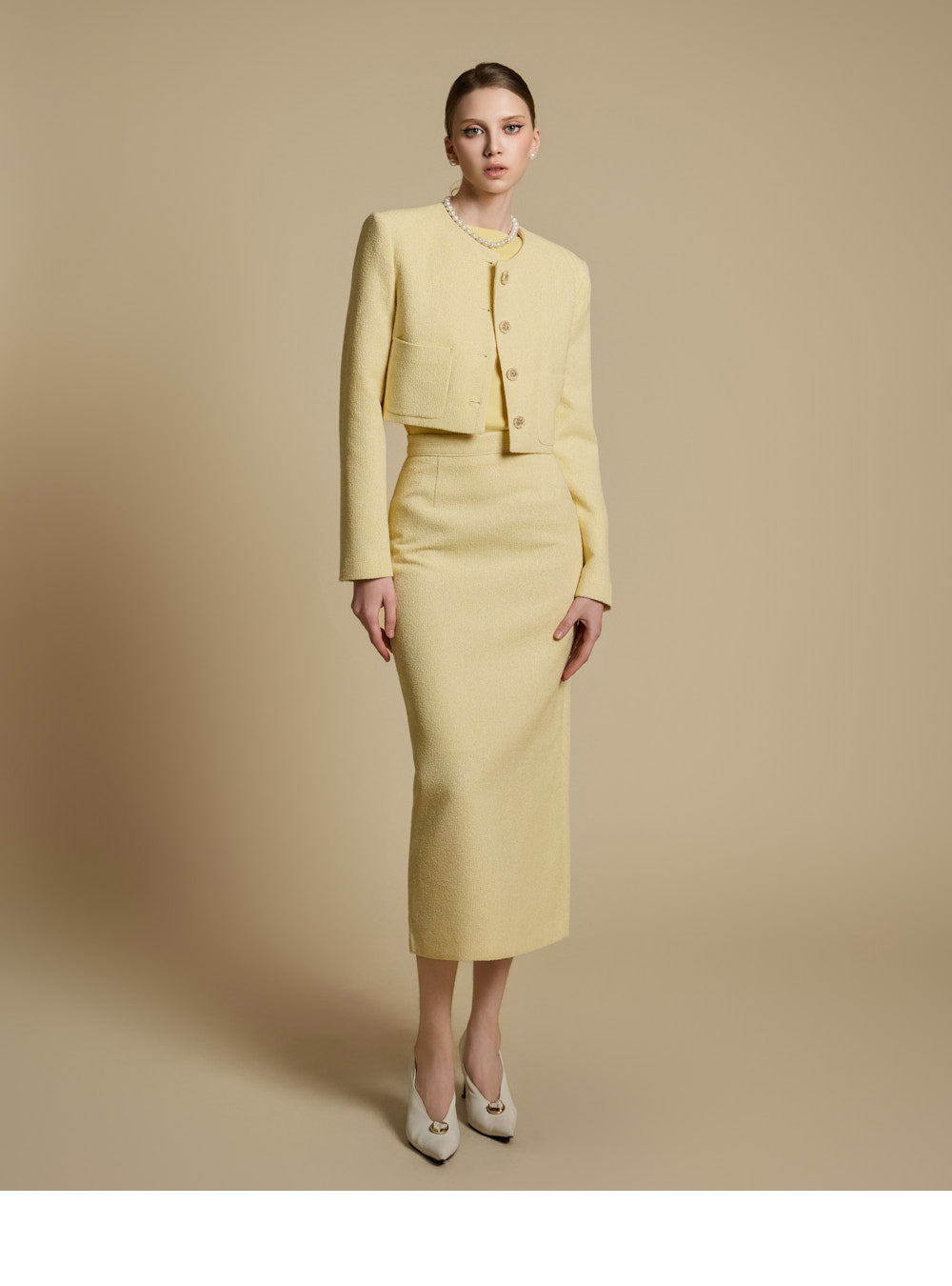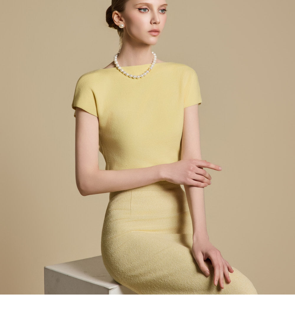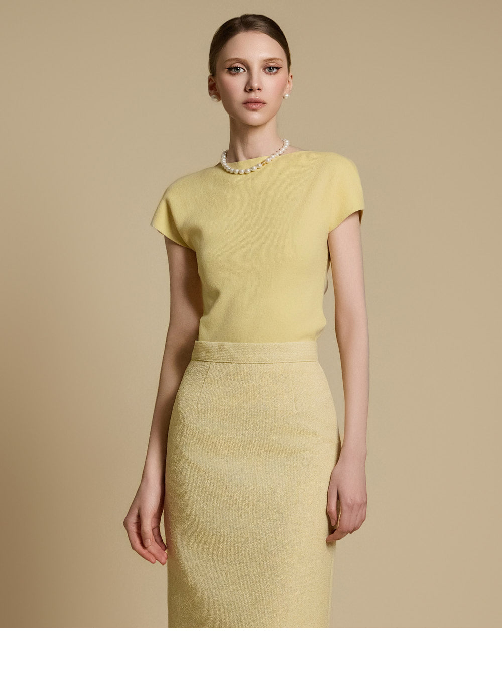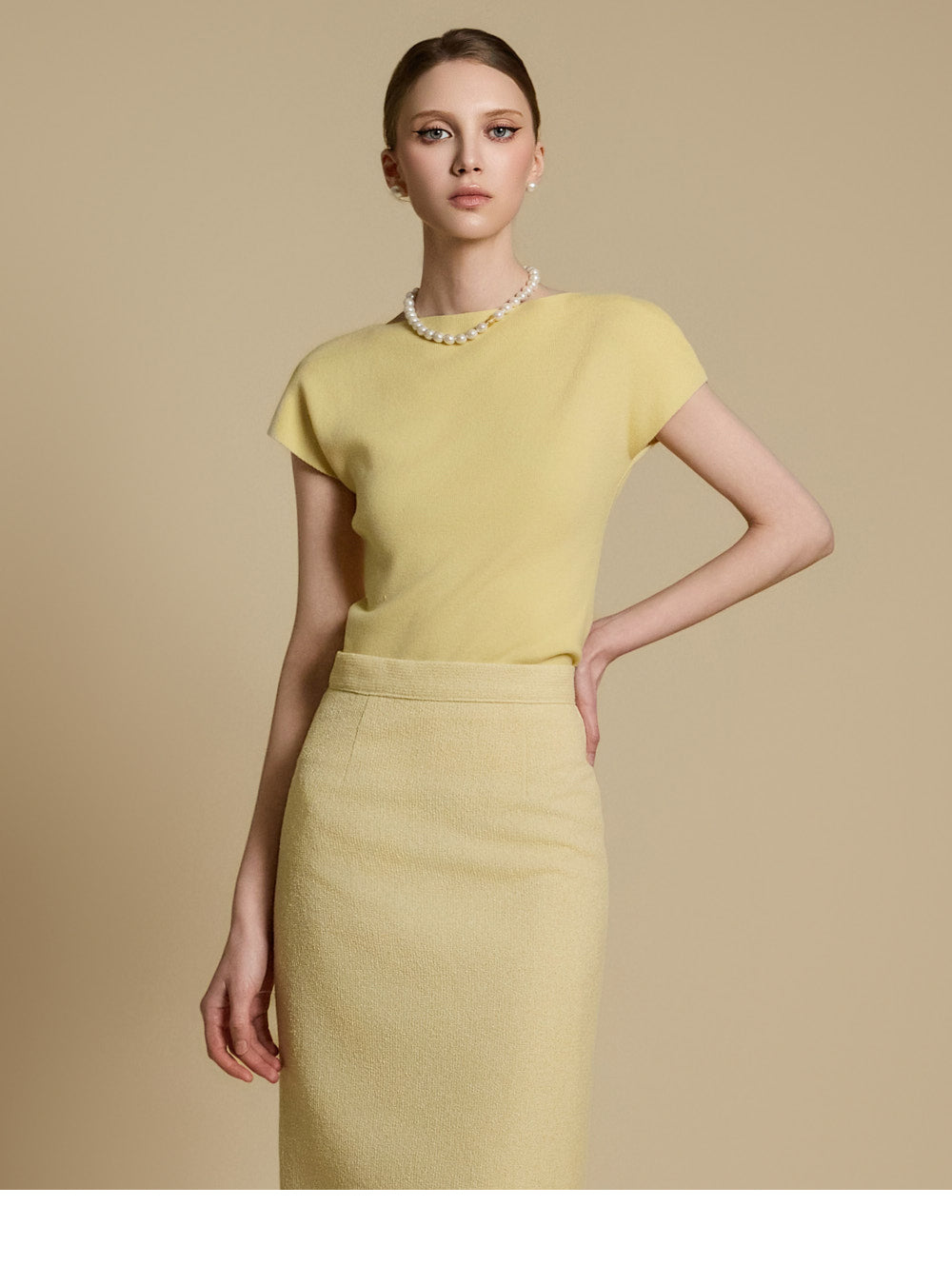 ミディ丈はウエストラインに沿ってすっきりと落ち、