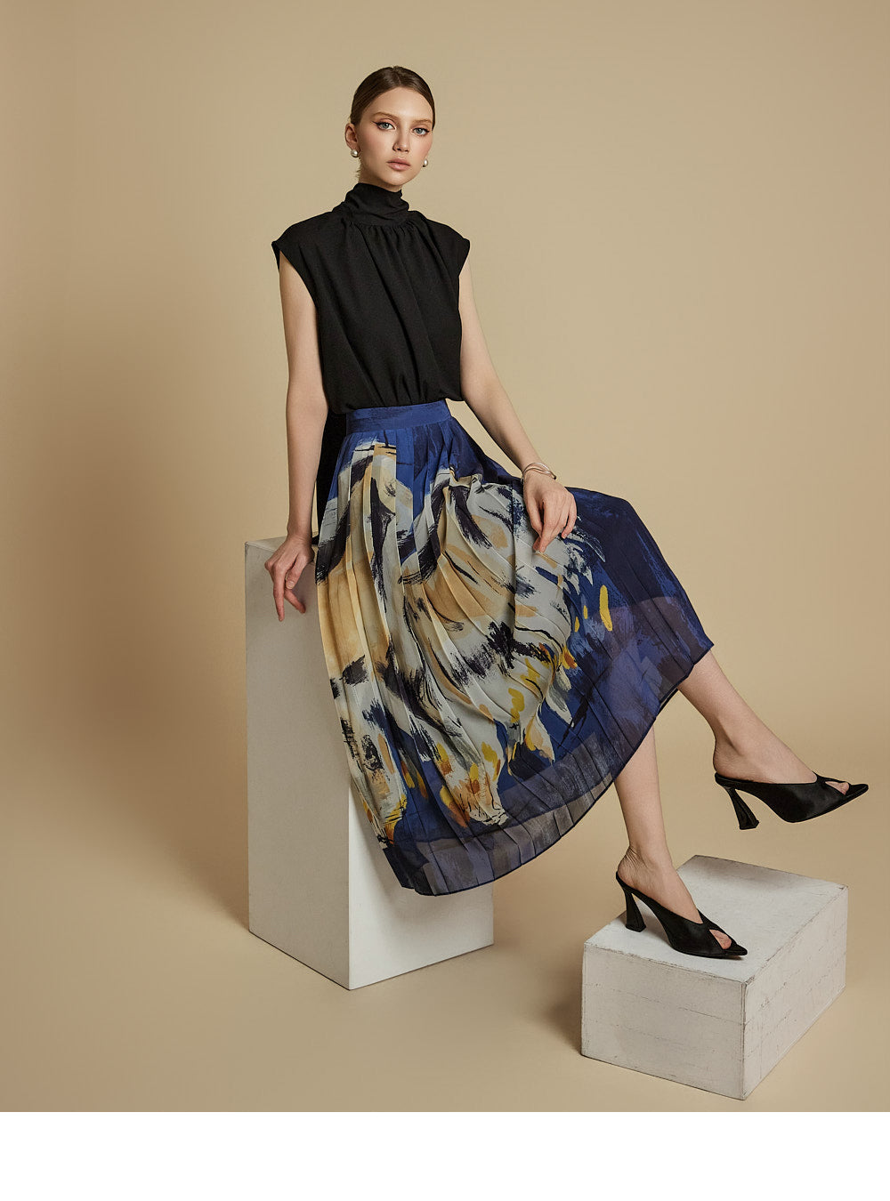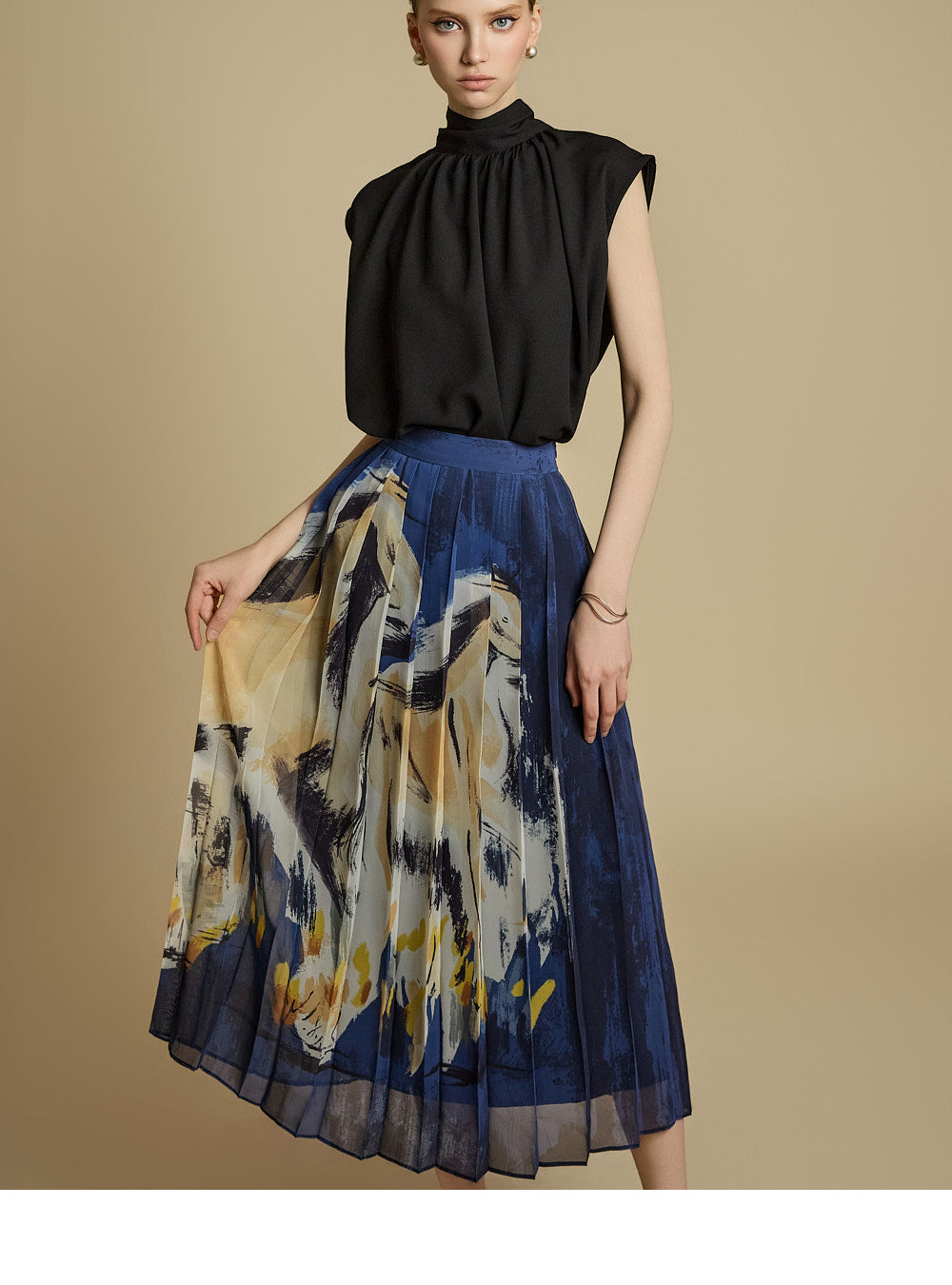 ポリエステル素材で作られており、軽くて流れるようなシルエットが特徴です。