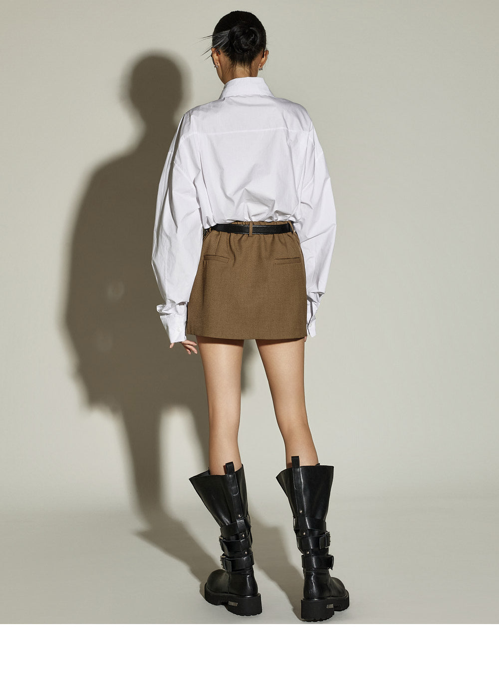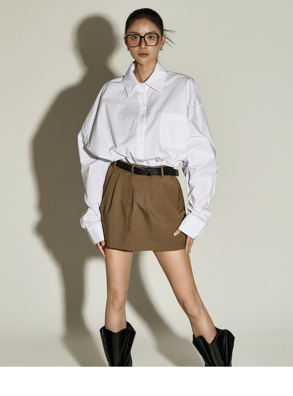 This modern pintuck mini skirt is crafted from a blend of polyester,