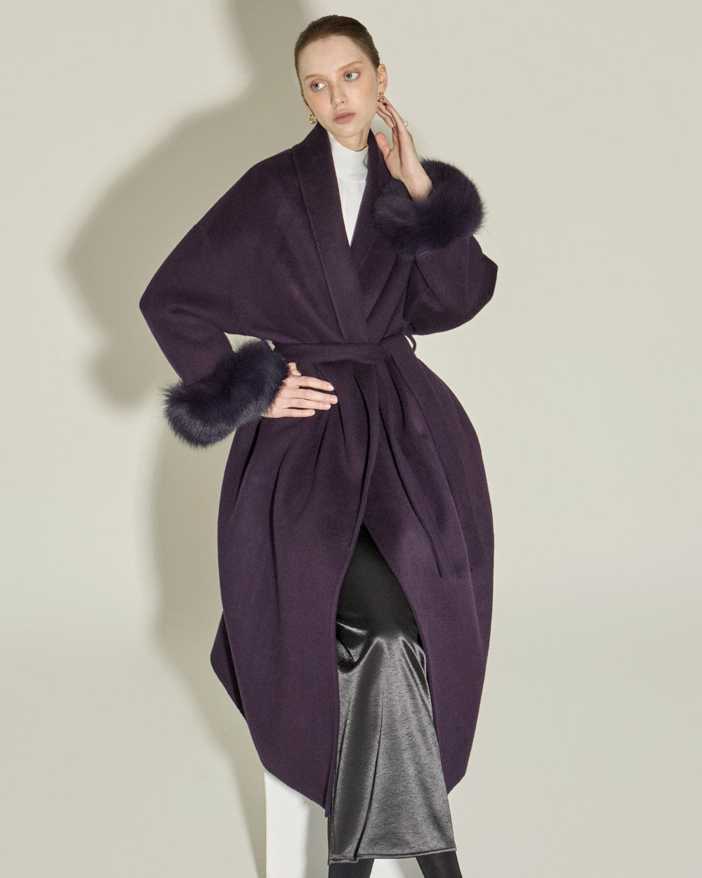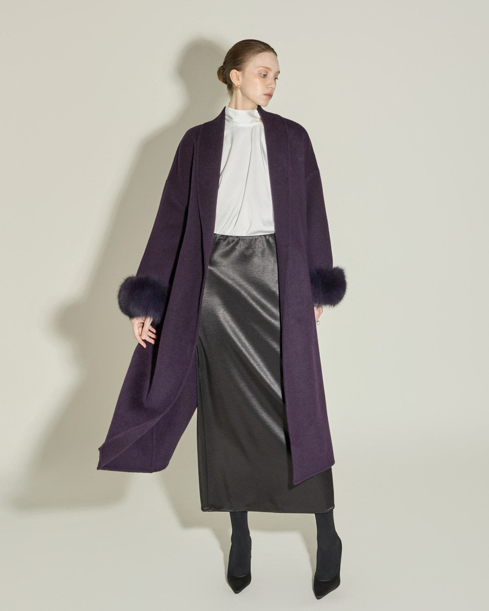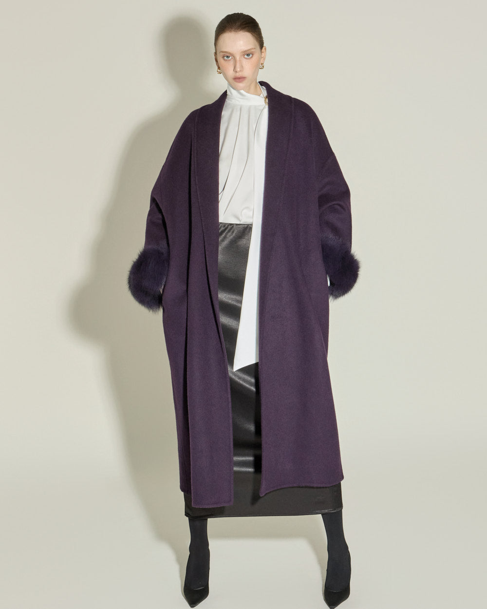 and its clean H-line silhouette and long length complete a sophisticated look.