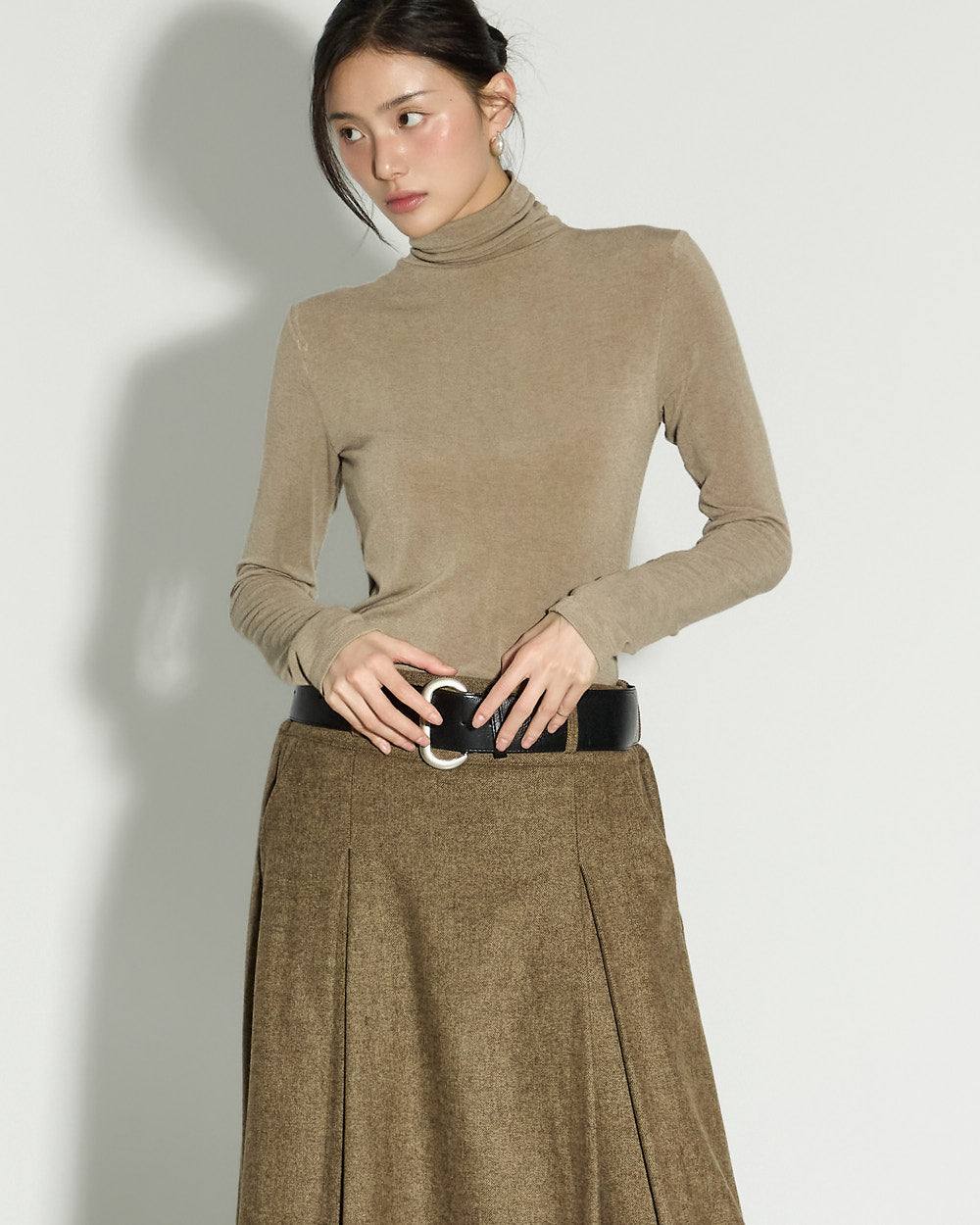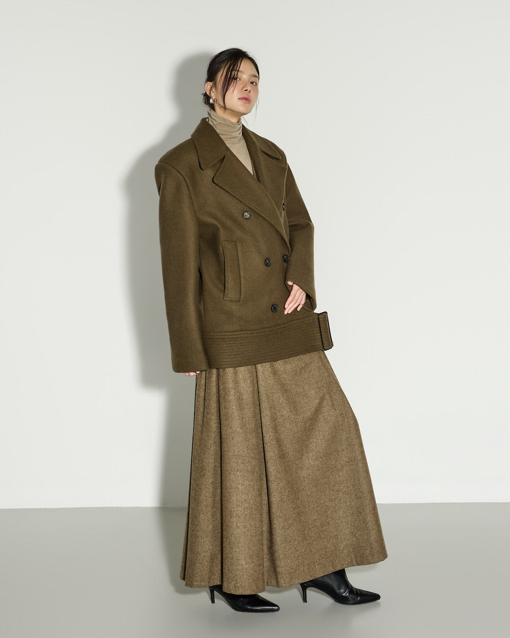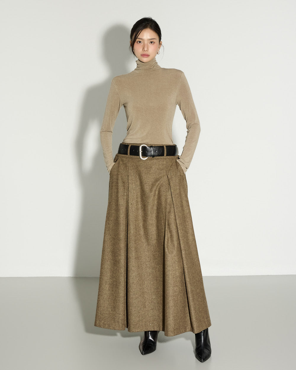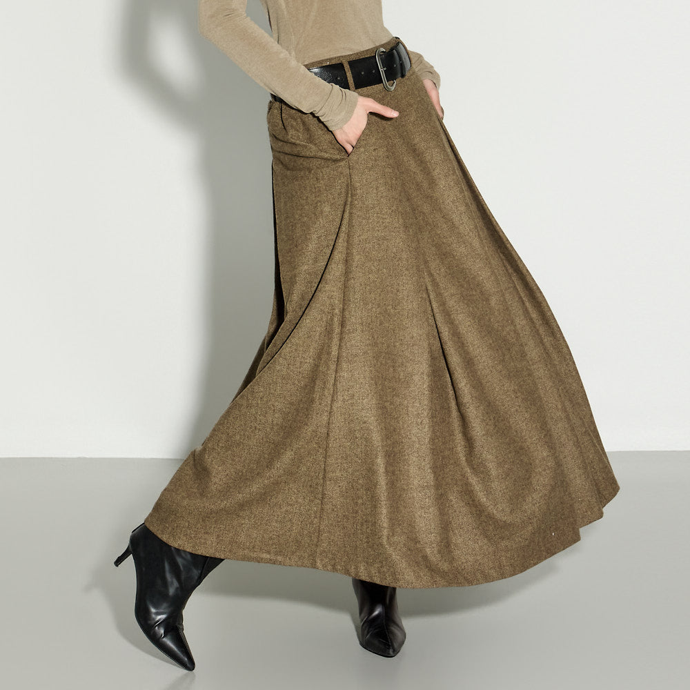 This wool skirt exudes a classic vibe.