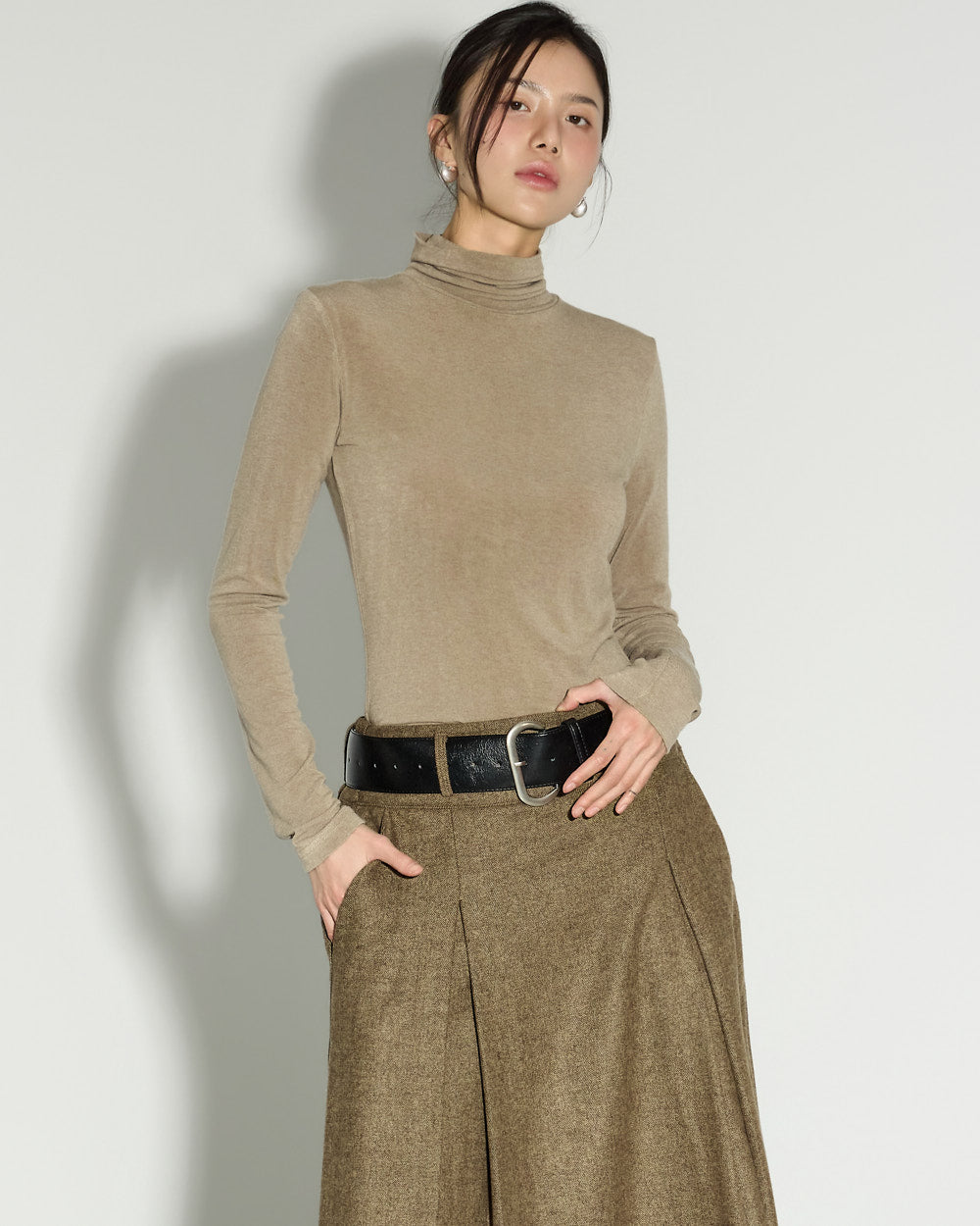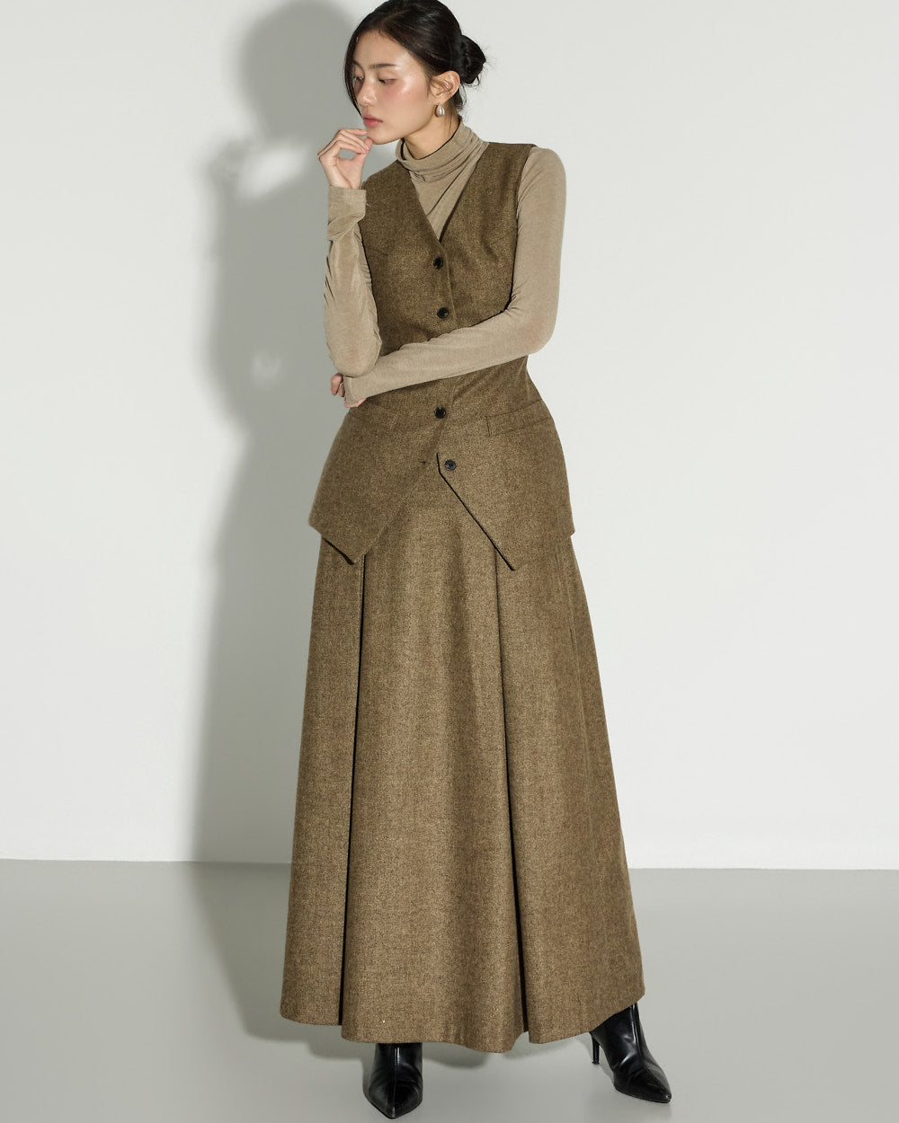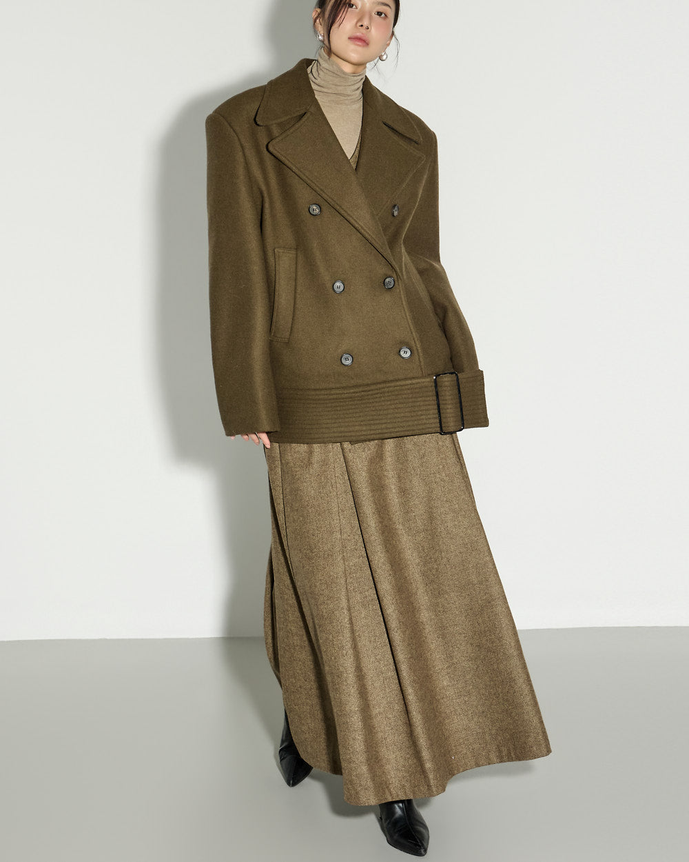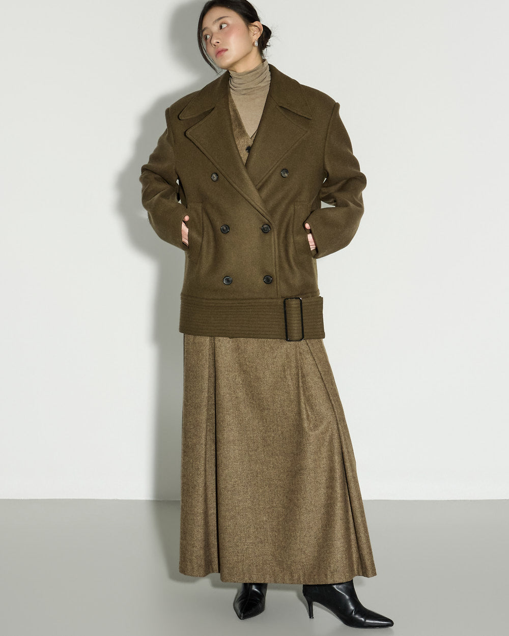 This wool skirt exudes a classic vibe.