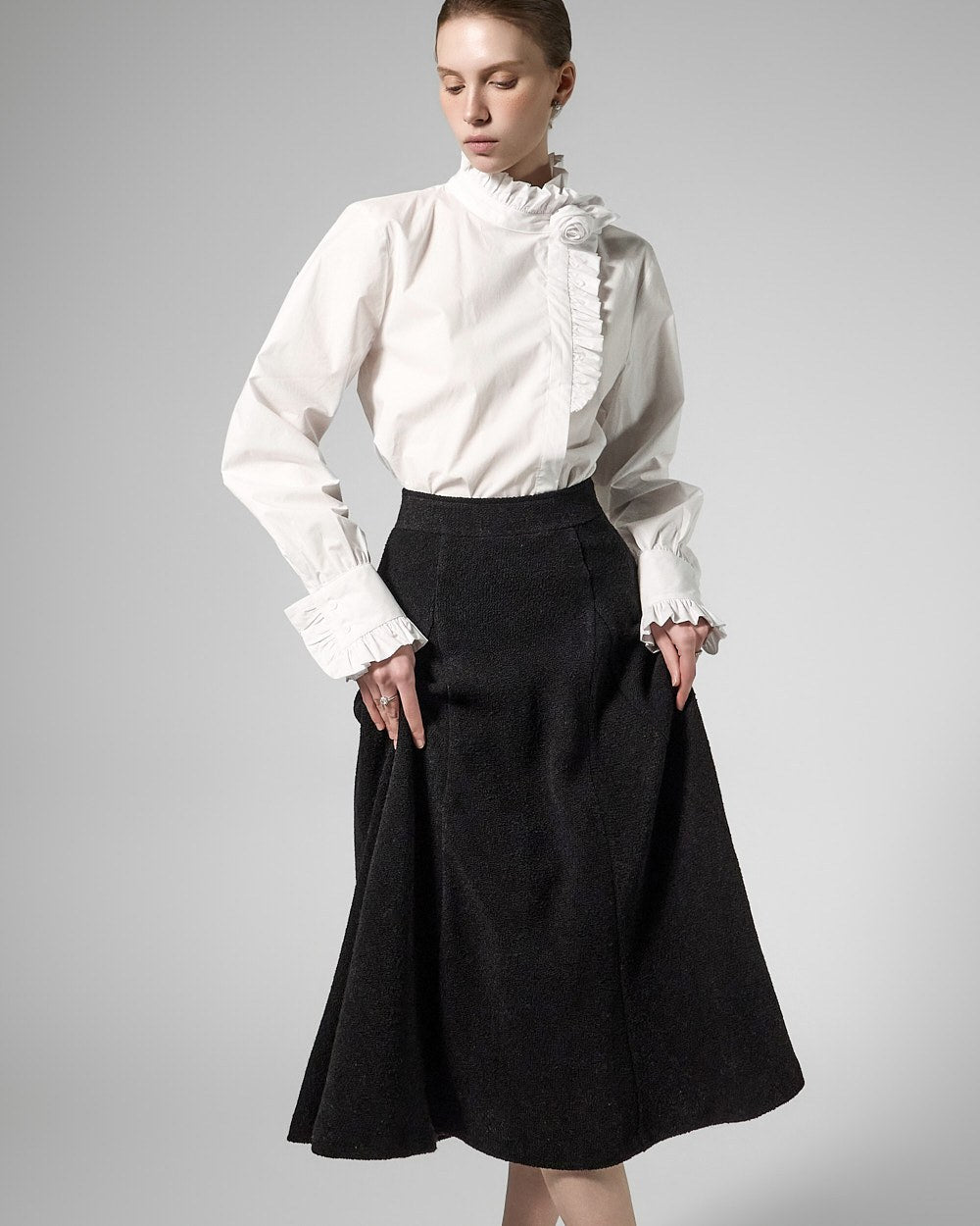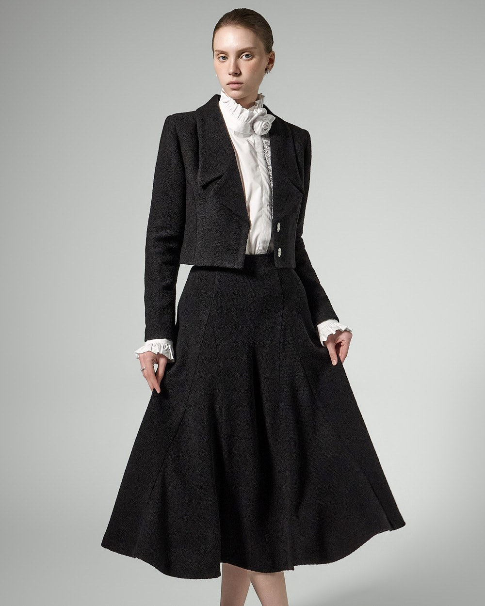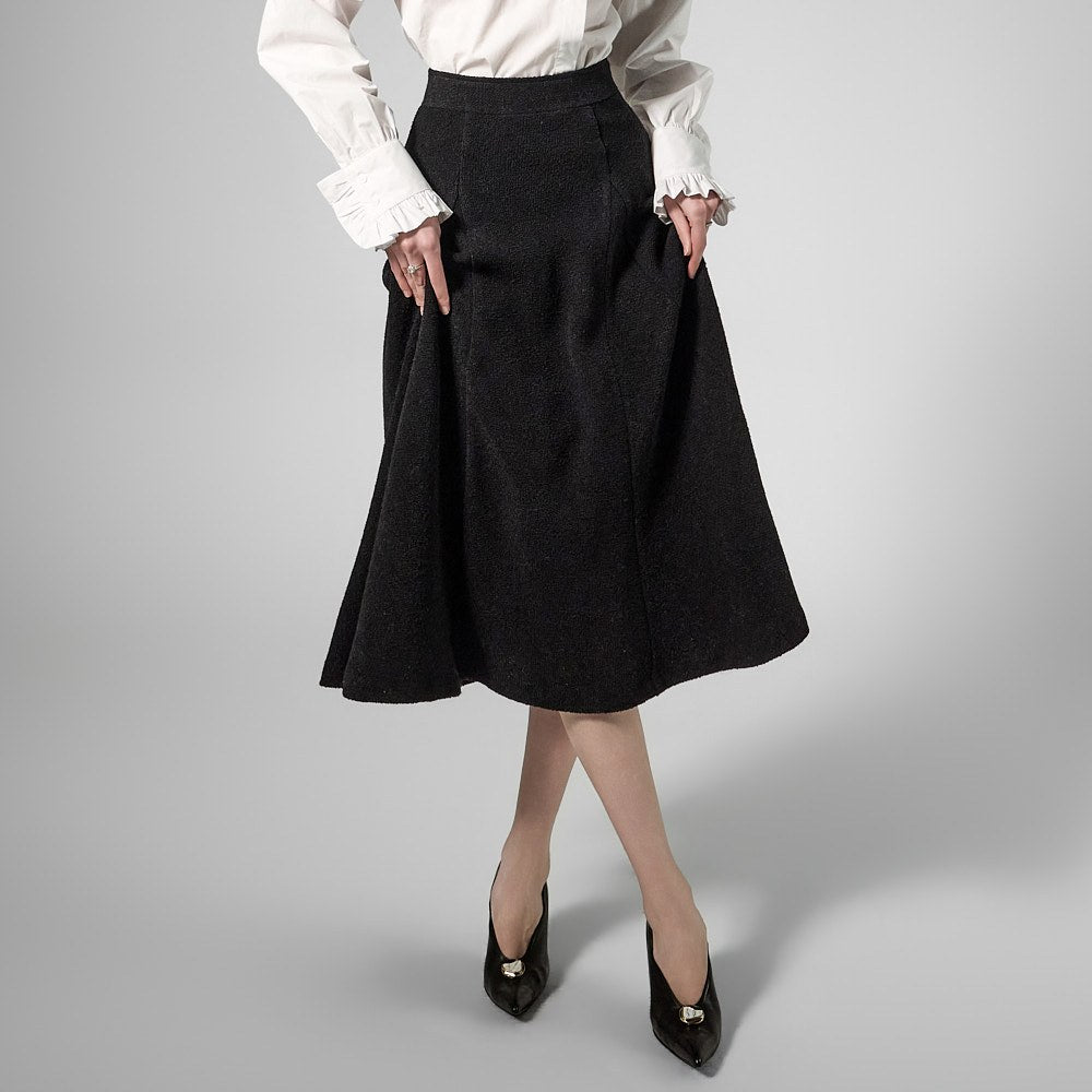 This tweed full skirt exudes a classic feminine vibe.
