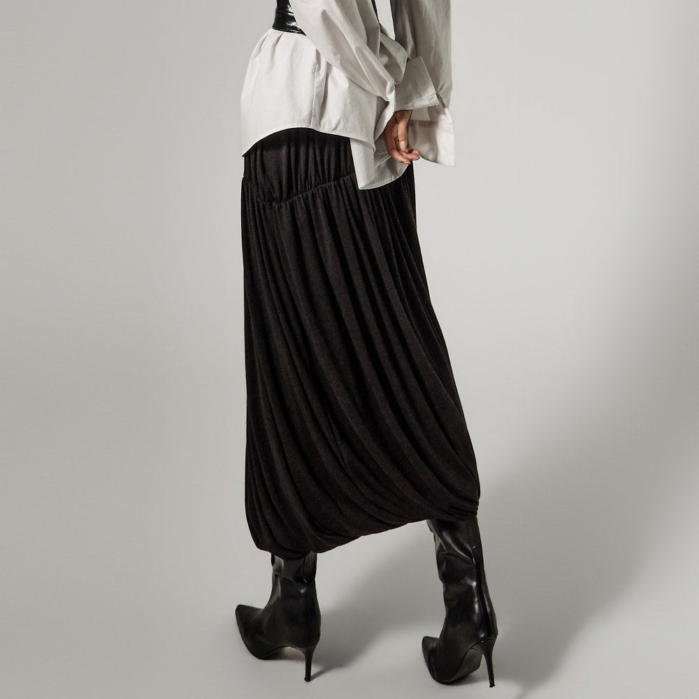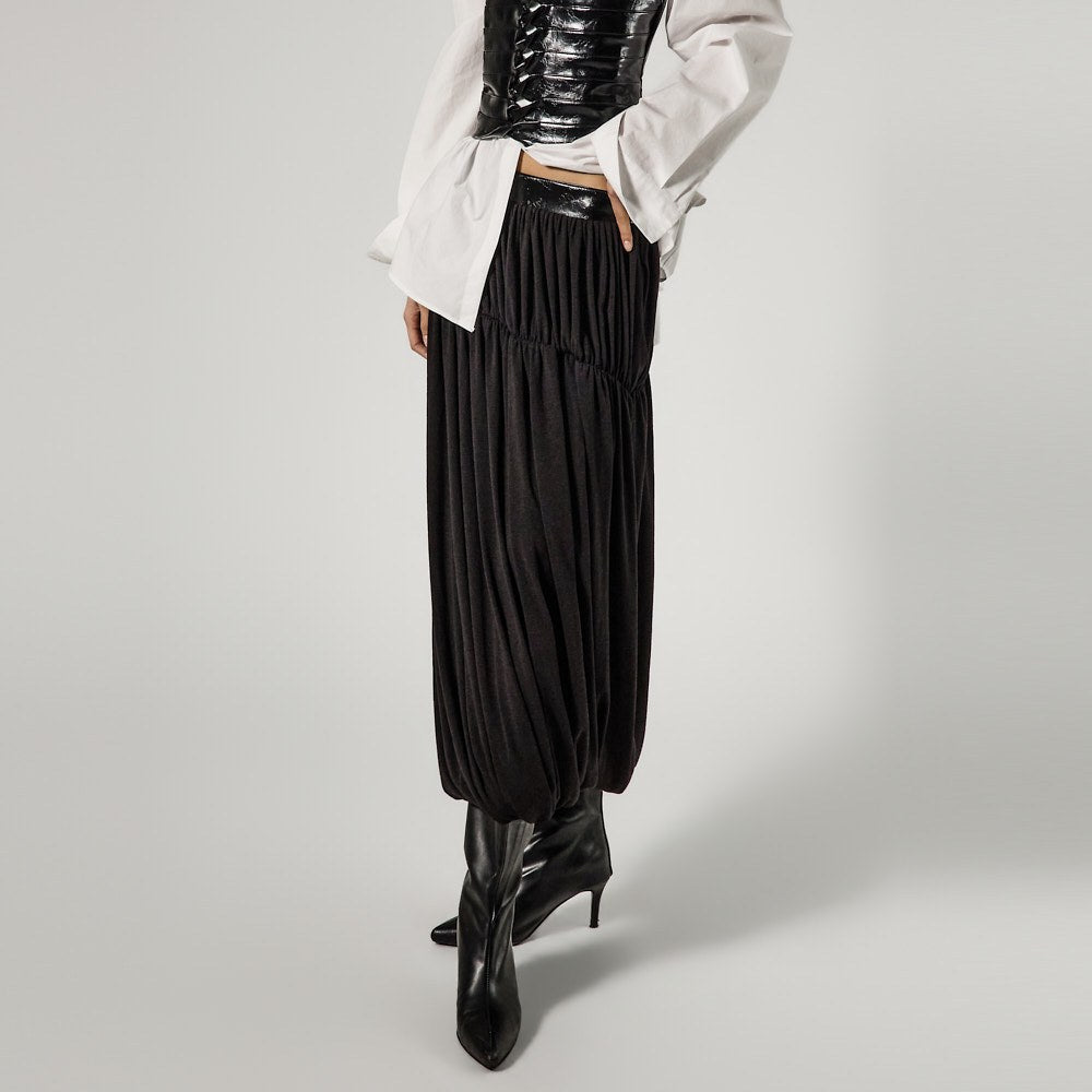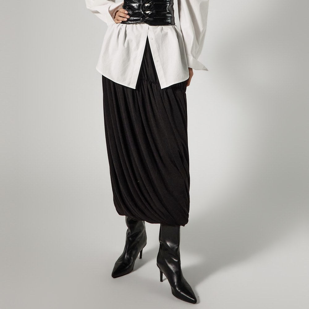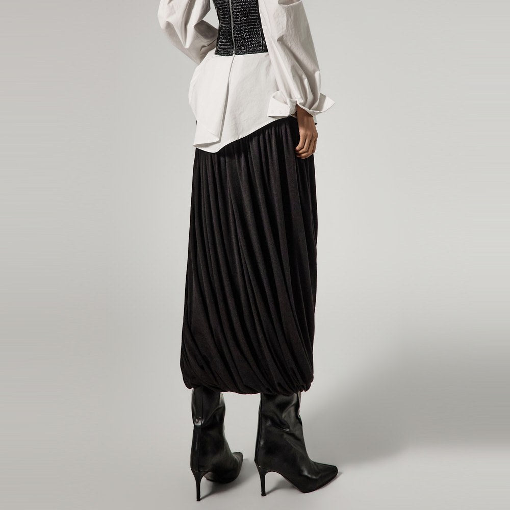 This unique rune shirring skirt is perfect for styling as a statement piece.