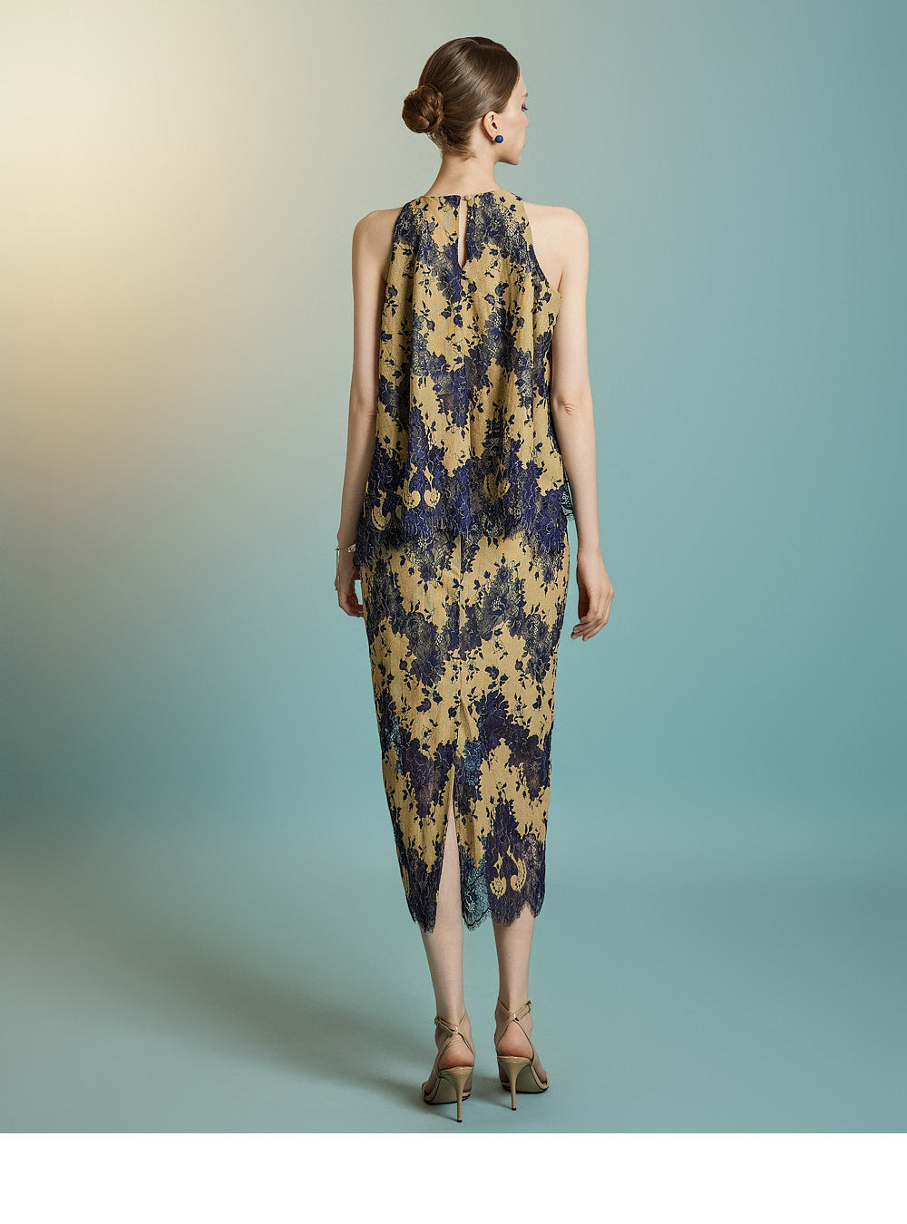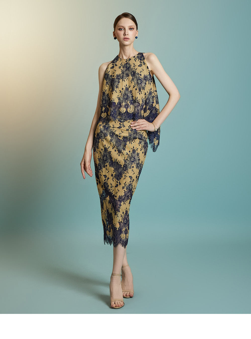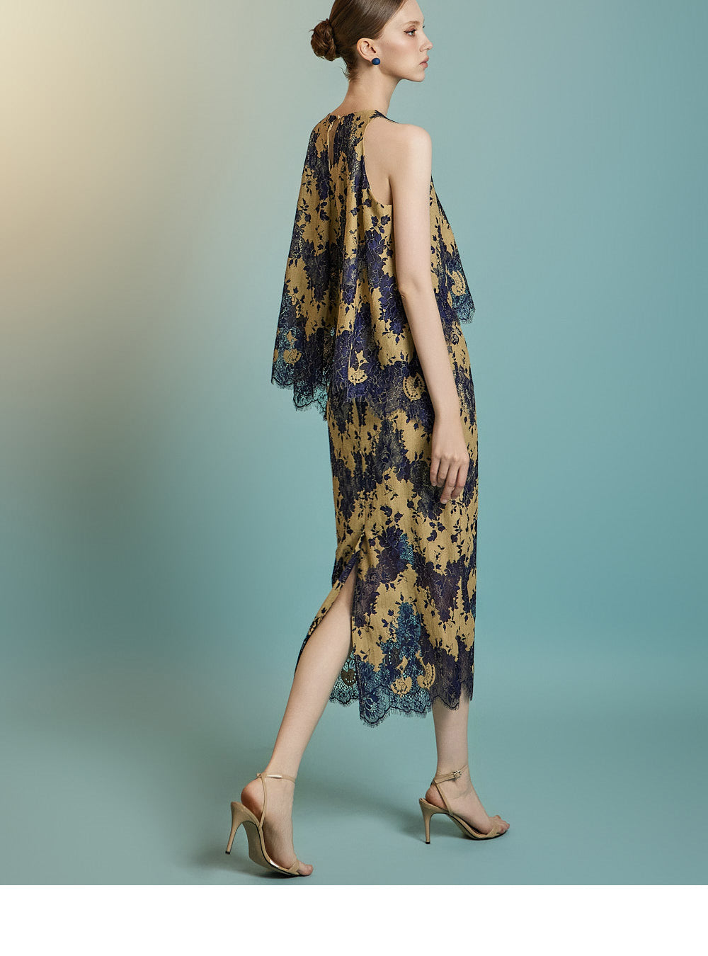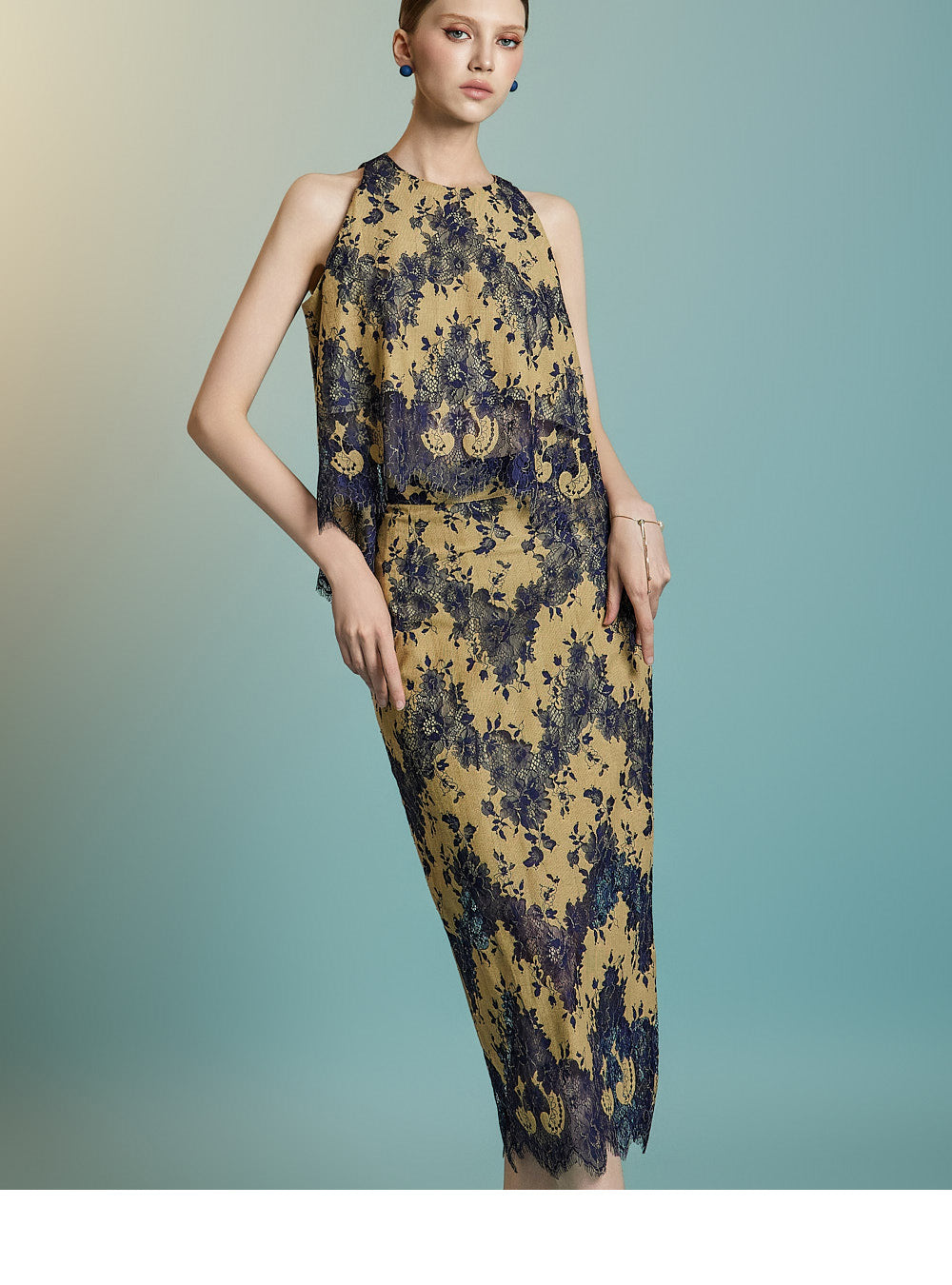 全体に花柄のレース生地を使用し、裾には透け感のあるディテールを施し、さりげないアクセントを添えています。