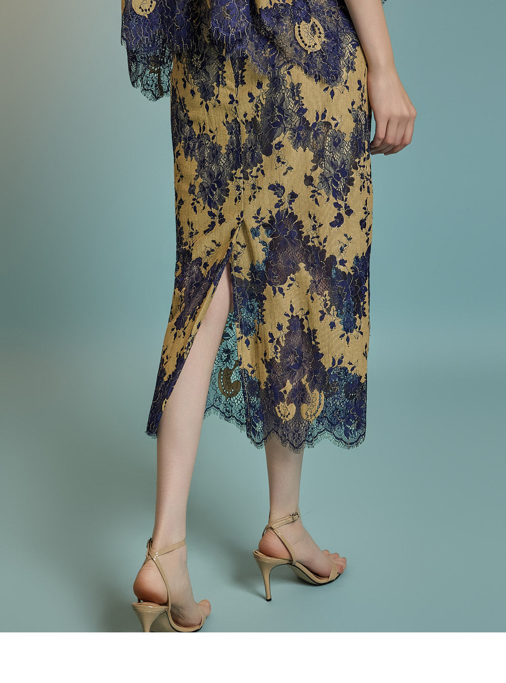 この花柄レーススカートはエレガントで洗練された印象を与えます。