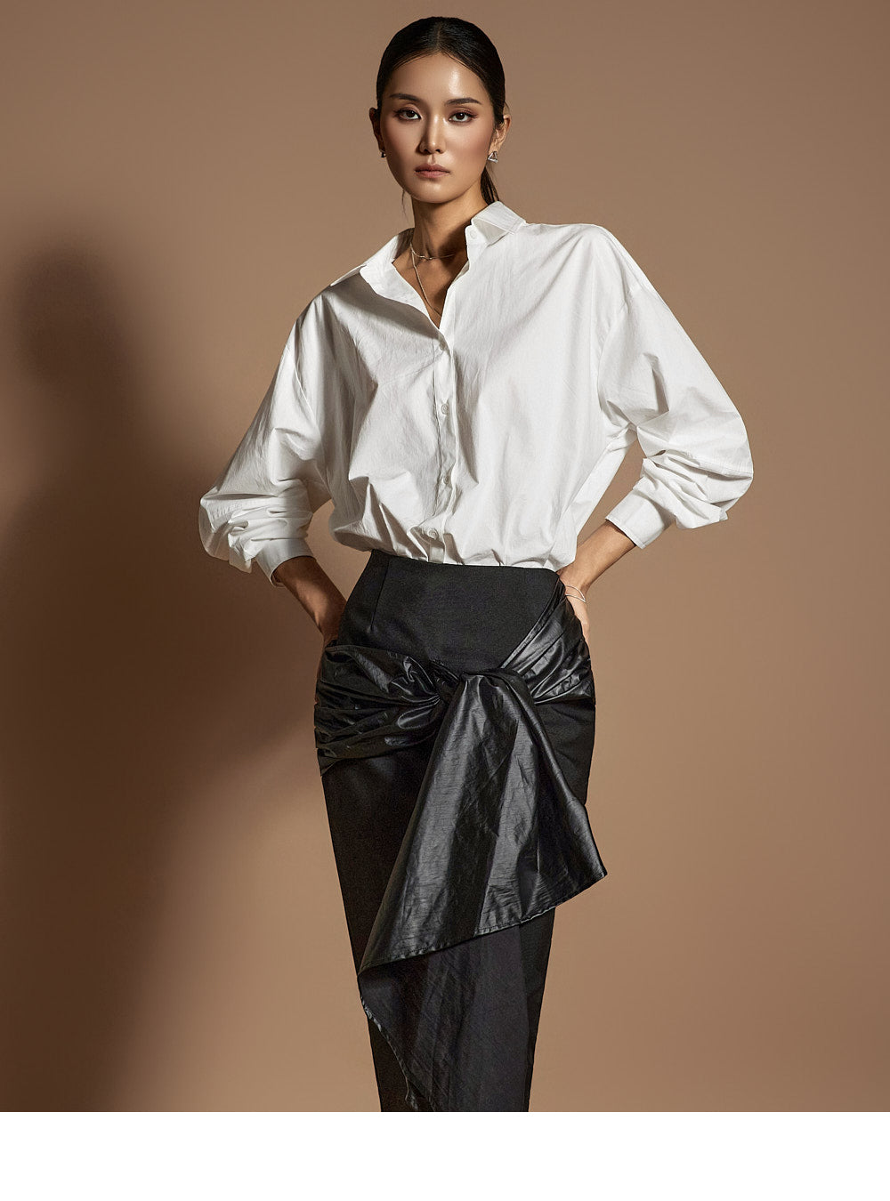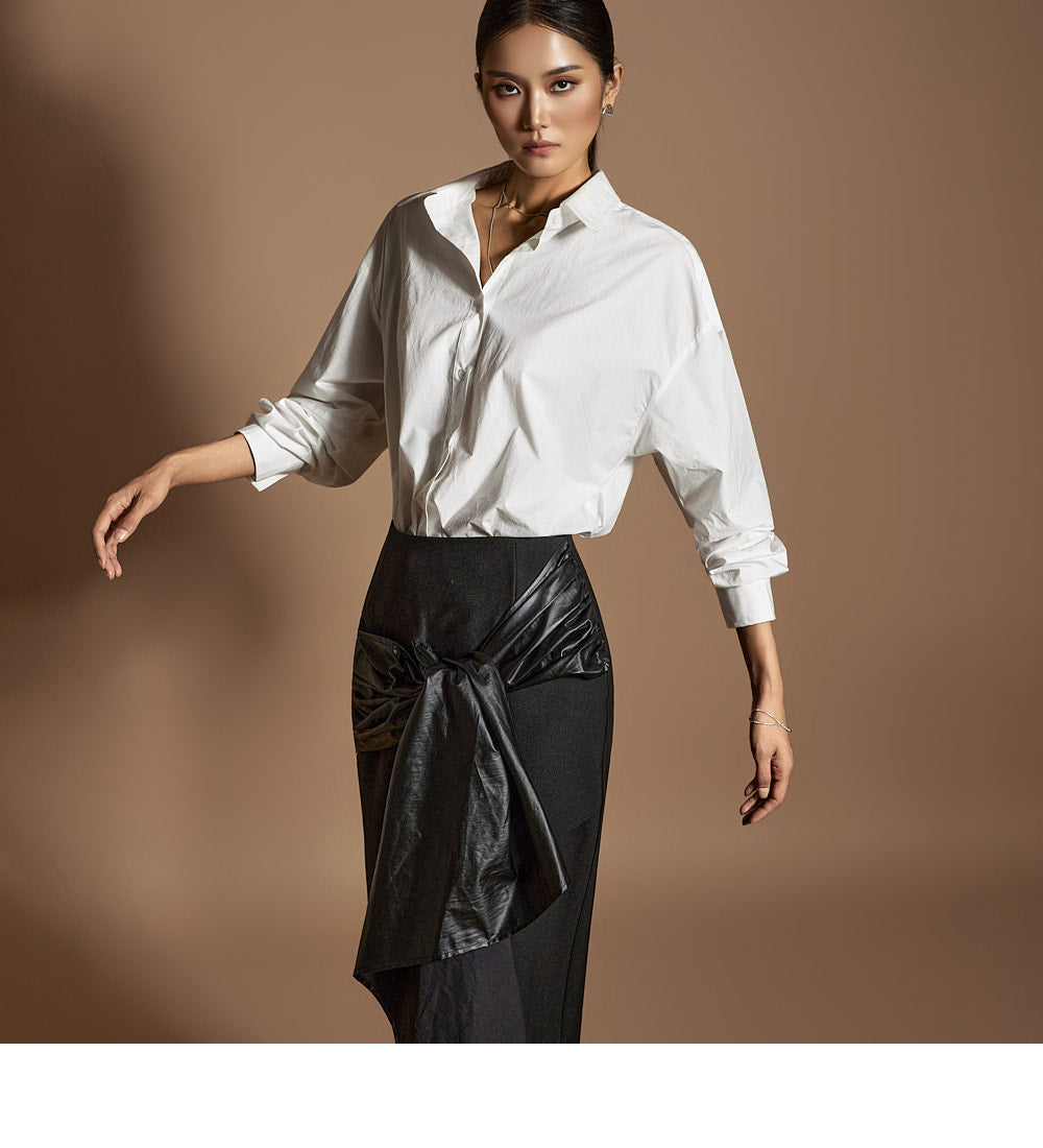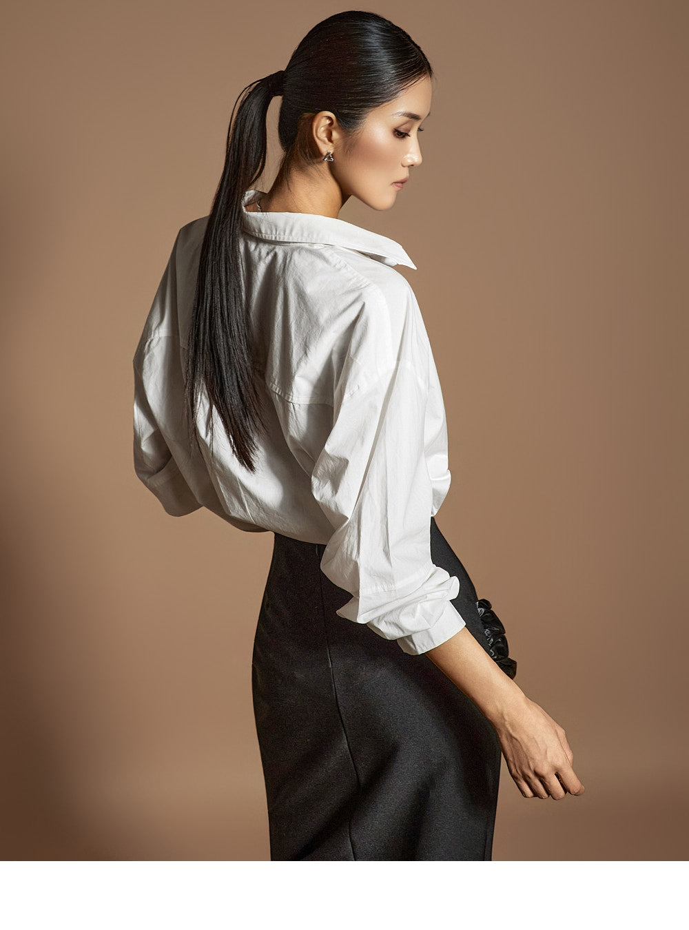 The H-line silhouette with a front slit creates a polished and elegant look.