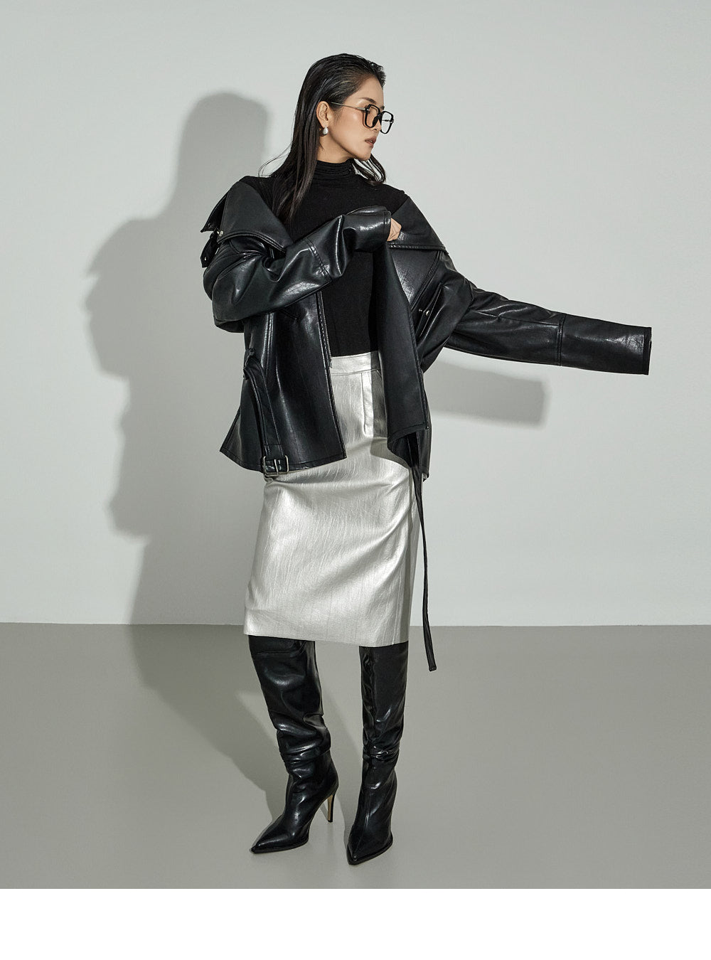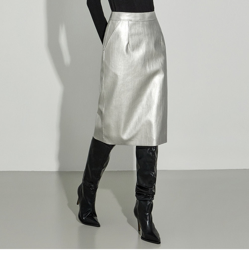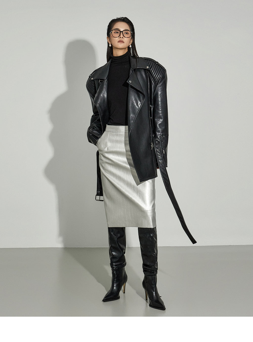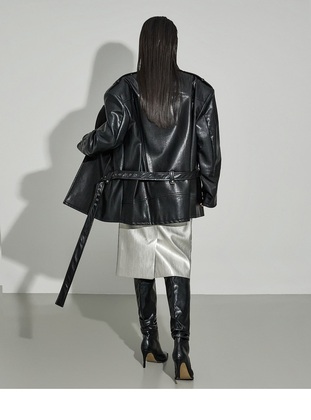 trendy vibe, and the slim silhouette emphasizes the feminine curves.