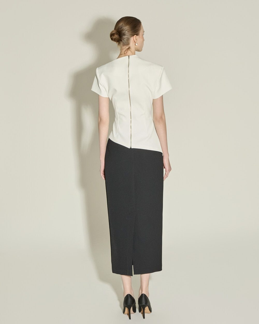 The high waistline elongates the legs,