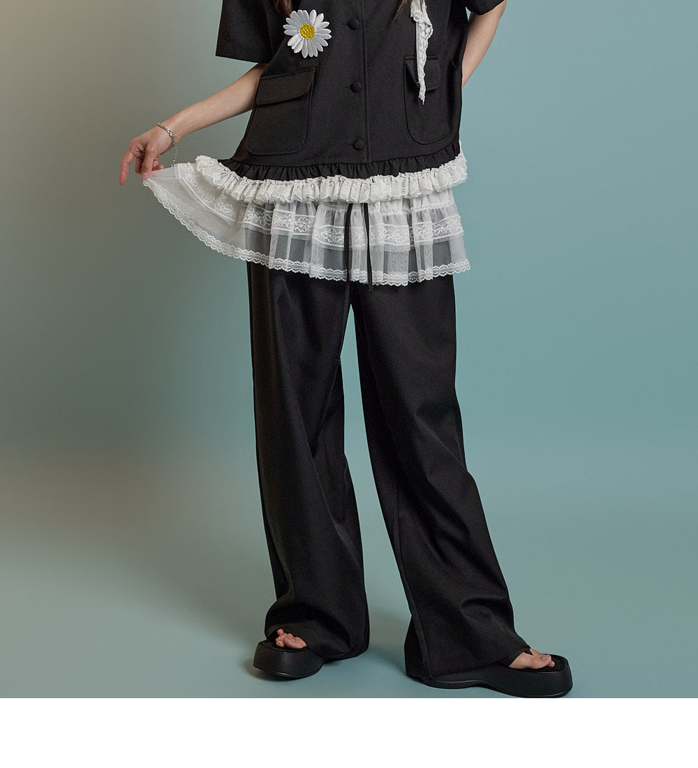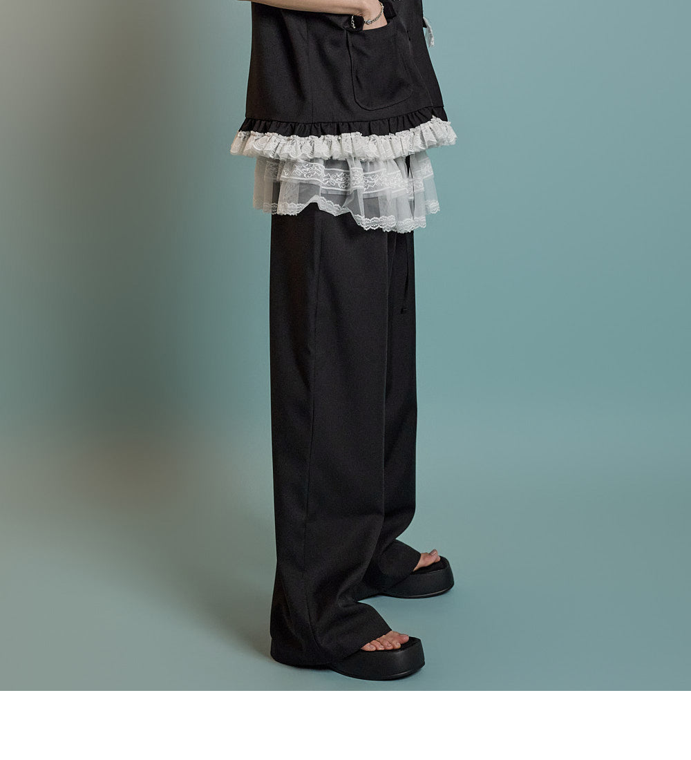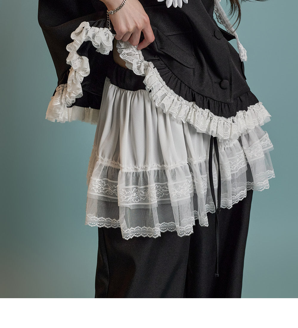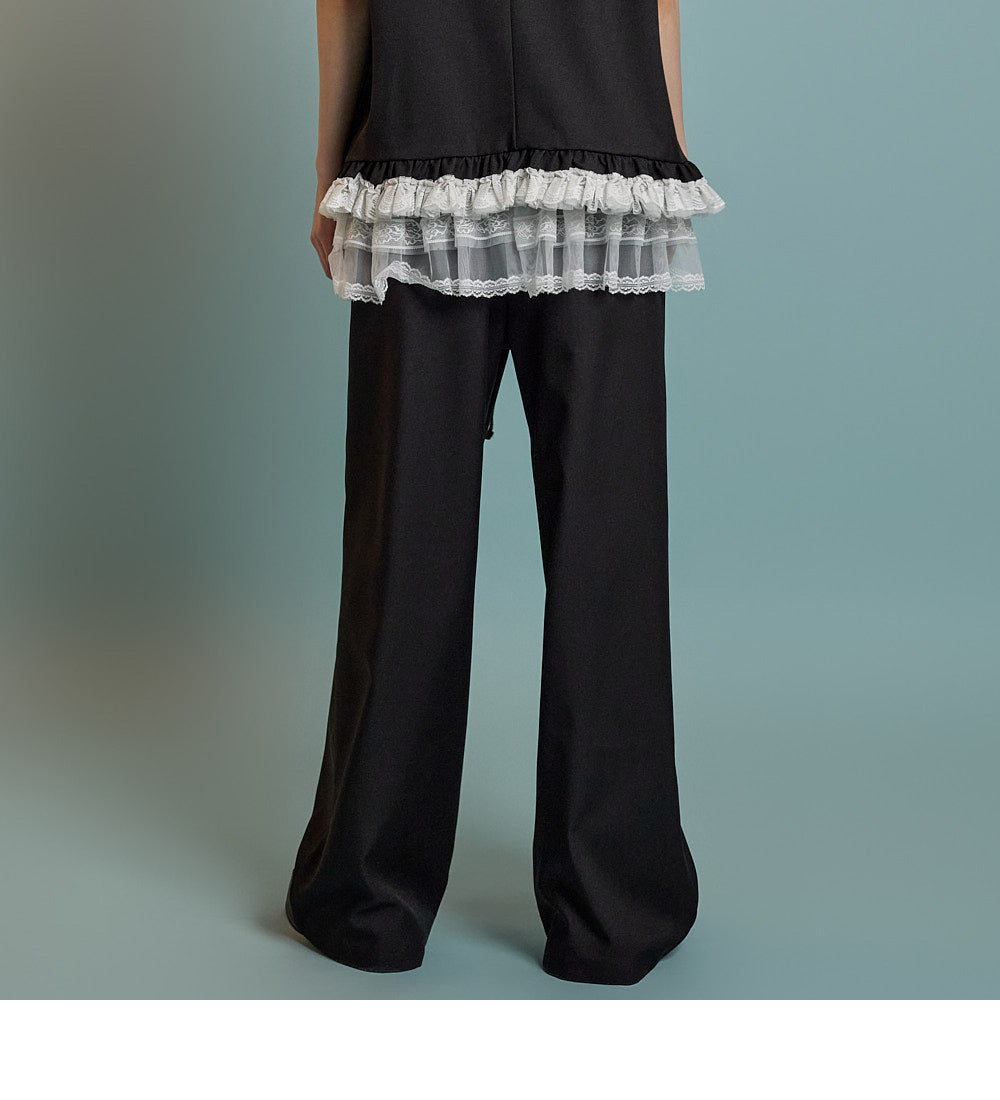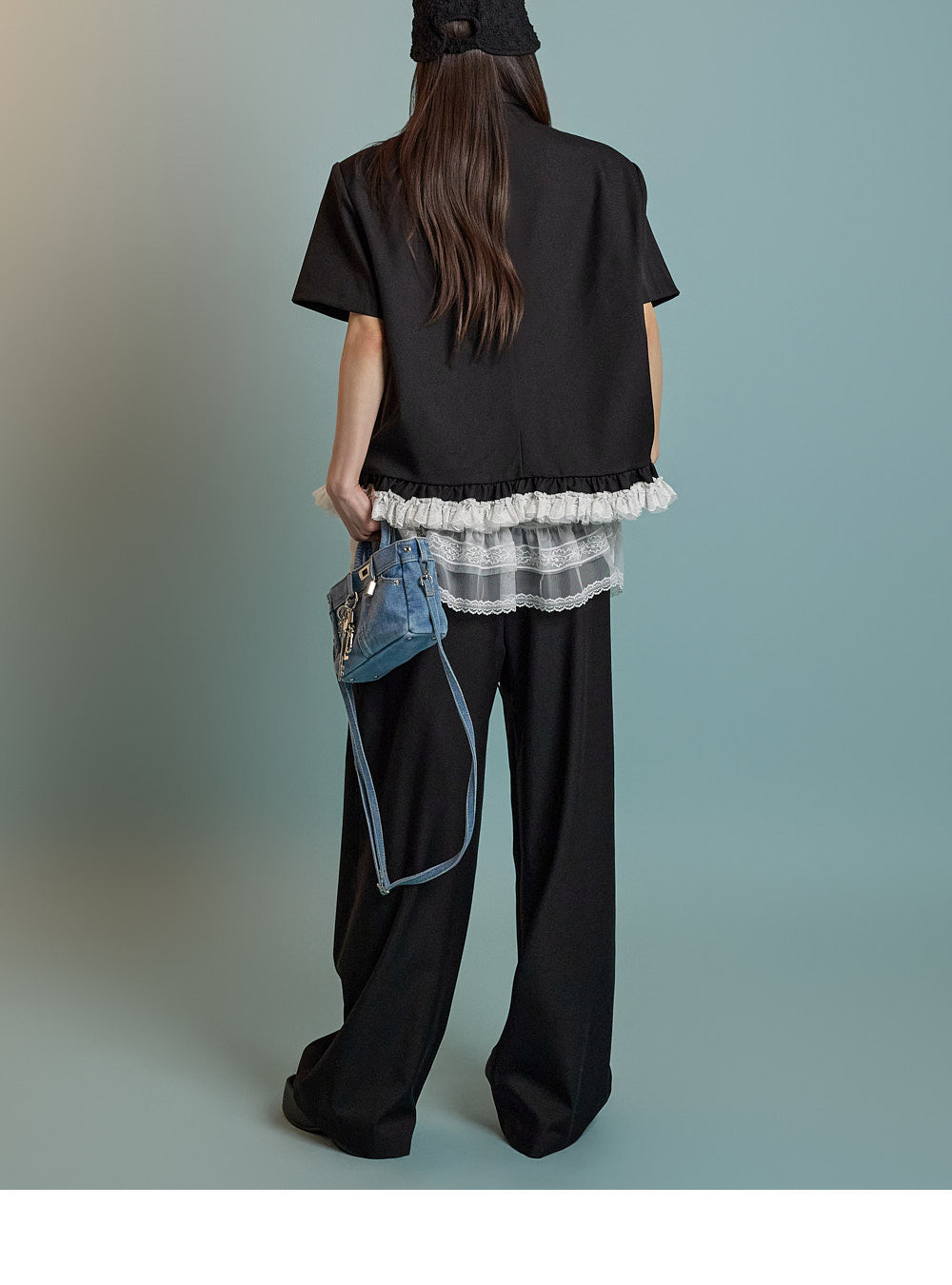 すっきりとしたシルエットを演出し、フリルレースのディテールが