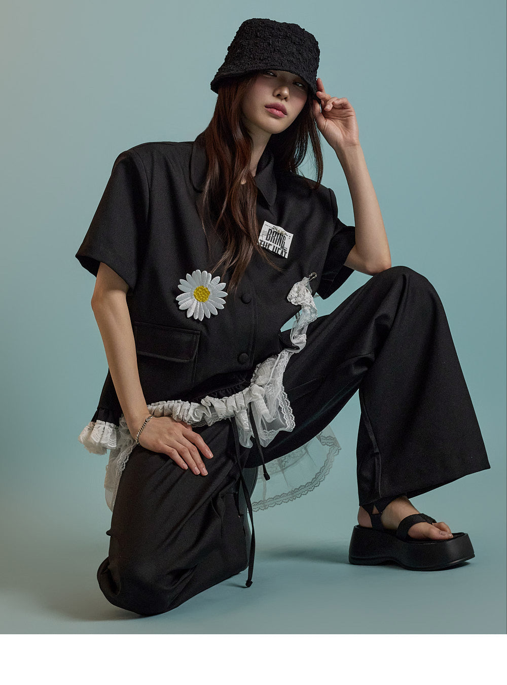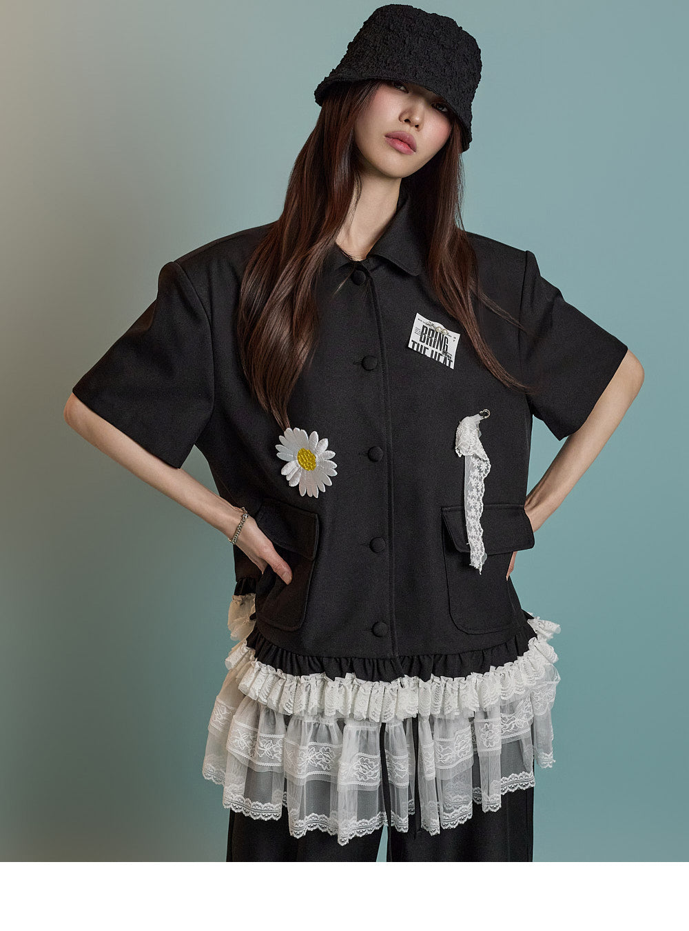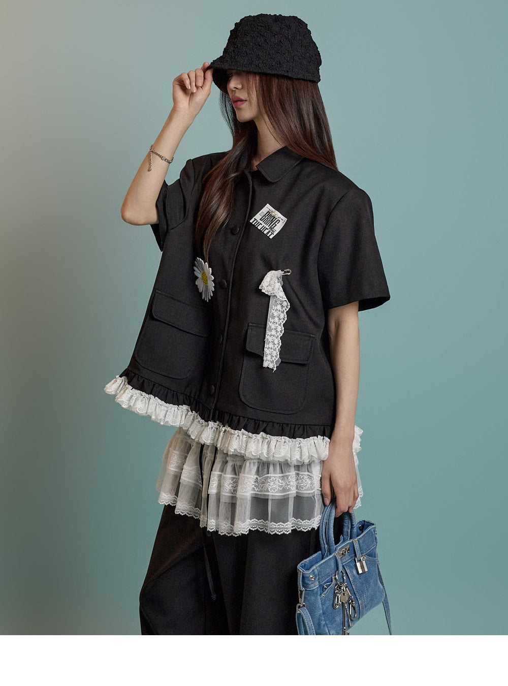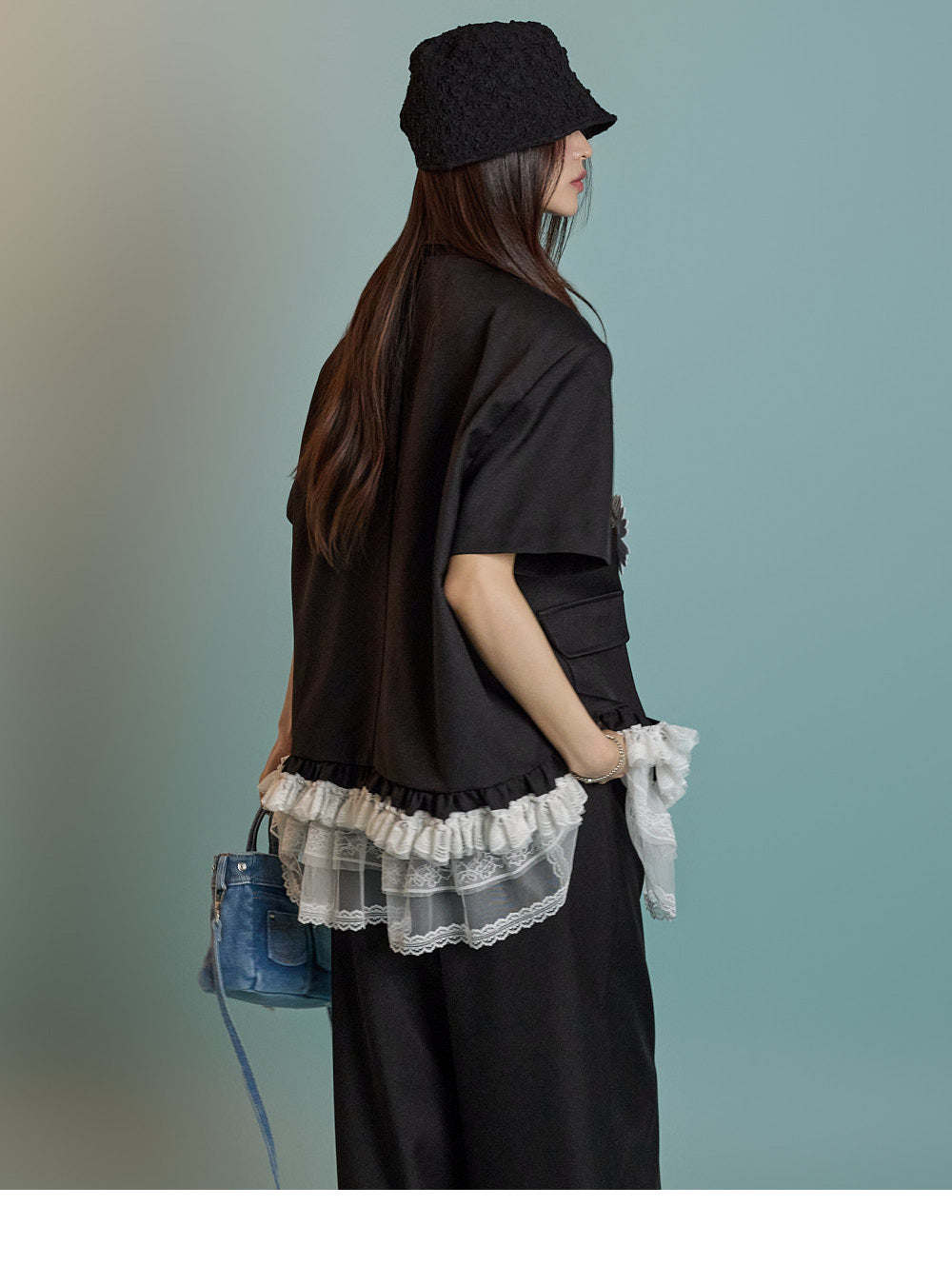 すっきりとしたシルエットを演出し、フリルレースのディテールが