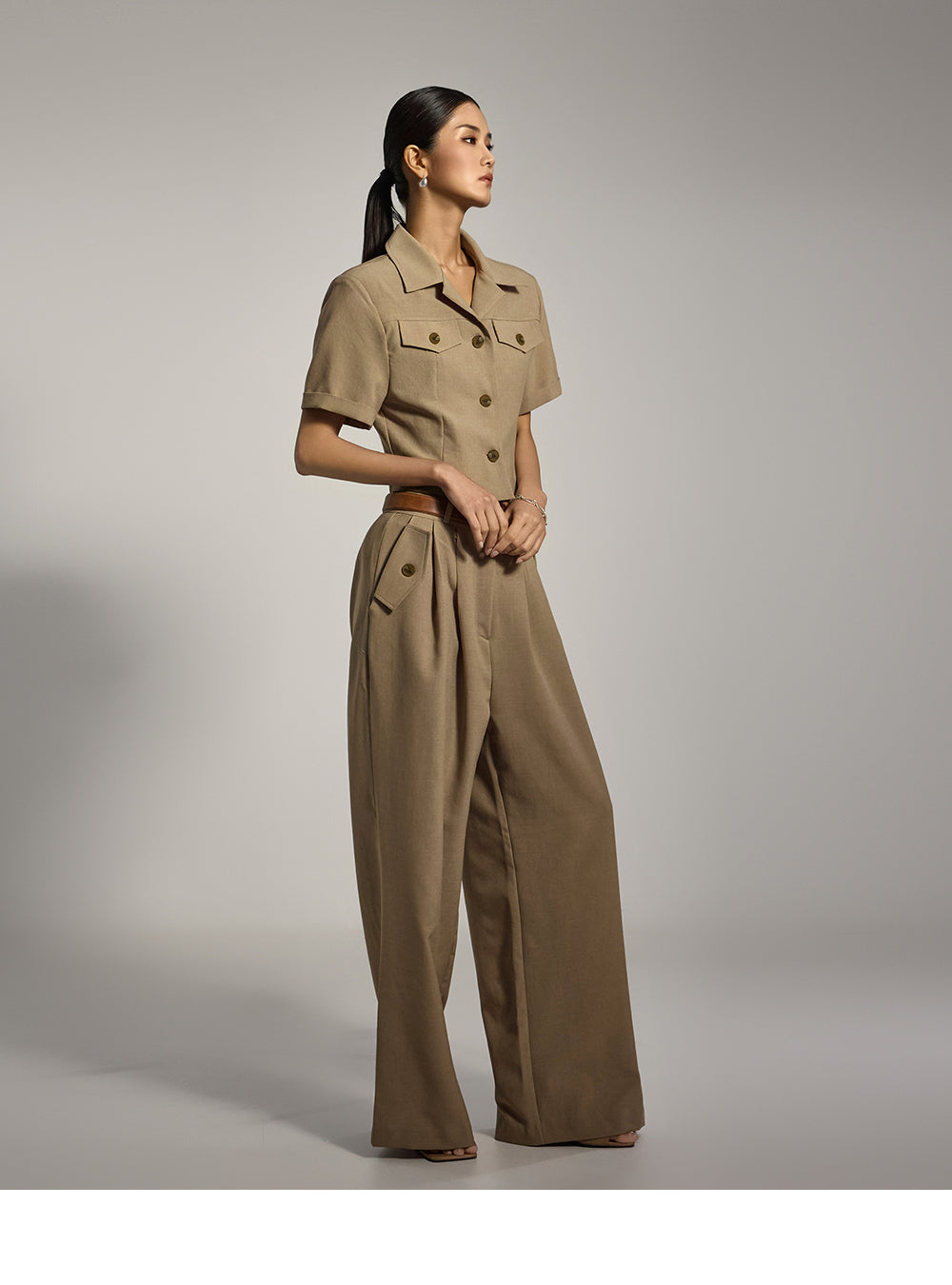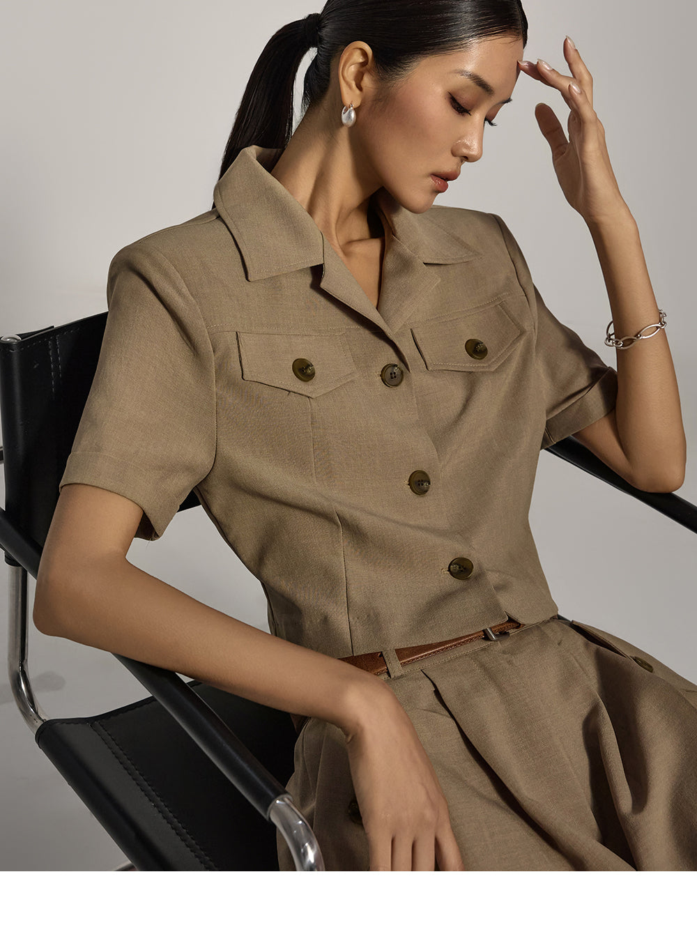 ピンタックのディテールで、すっきりと洗練された印象に。