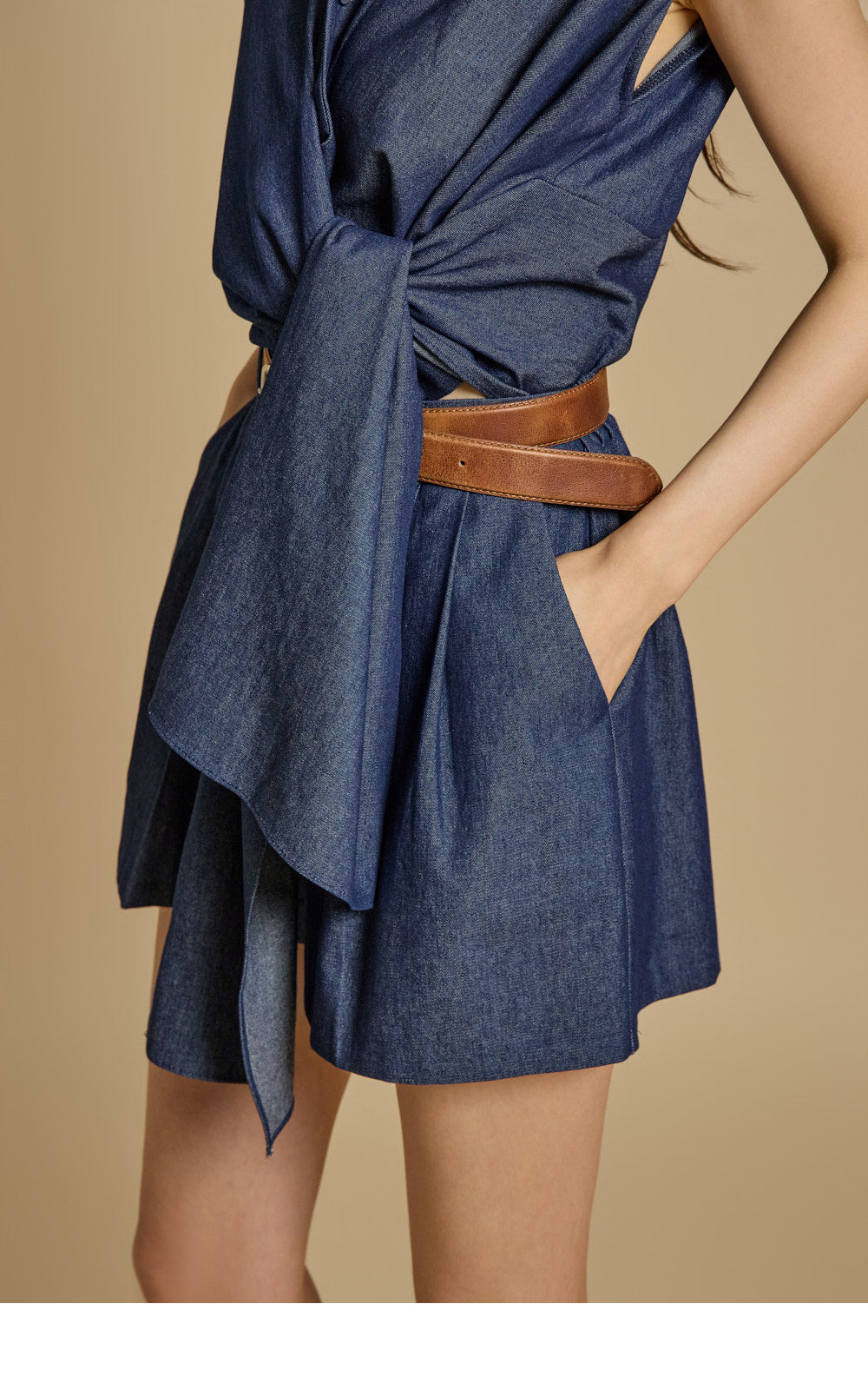 襟ぐりのラインとフロントのボタン留めがきちんと感をプラスします。