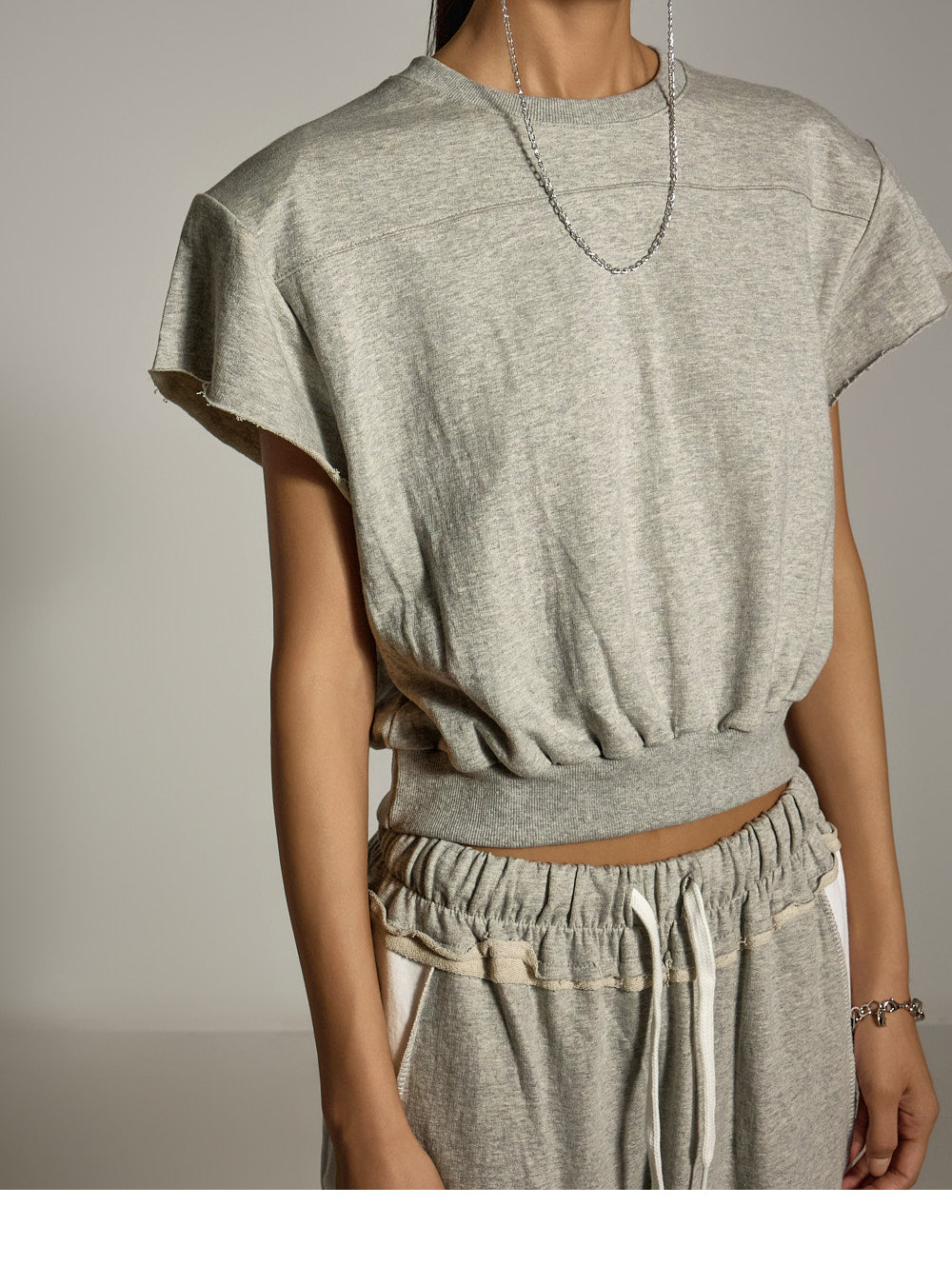 クロップドトップには軽い肩パッドが付いています
