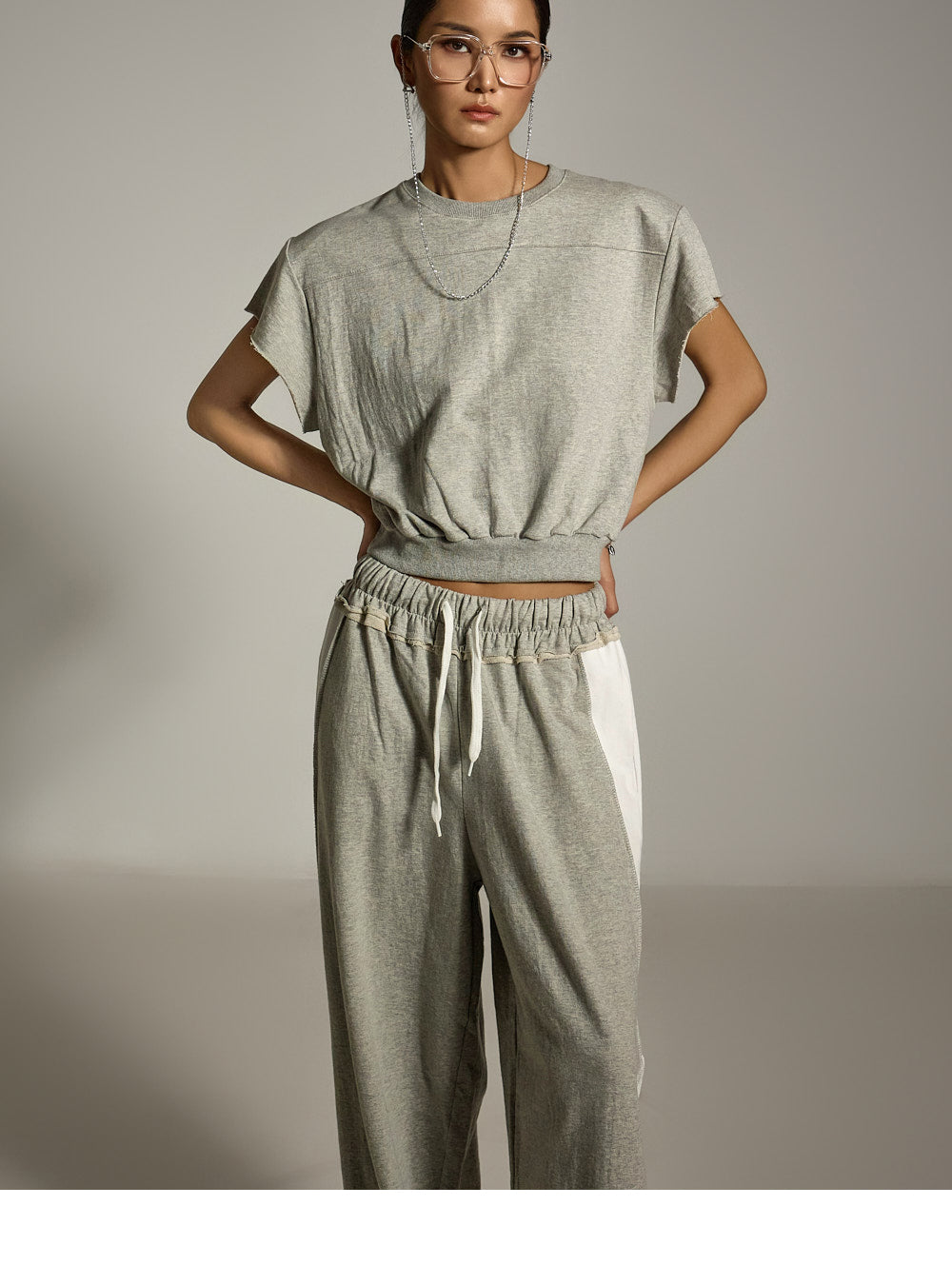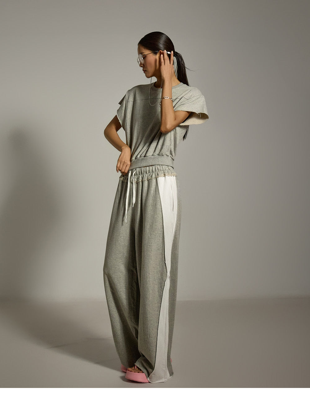 ワイドレッグのトレーニングパンツは、ナチュラルでありながらスタイリッシュなシルエットを演出します。