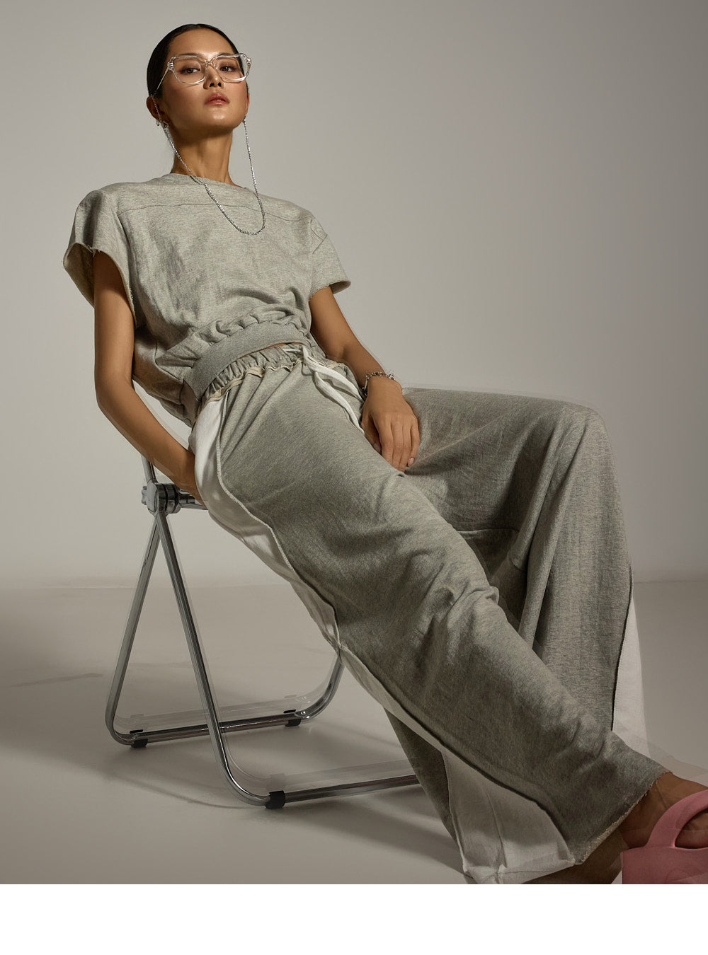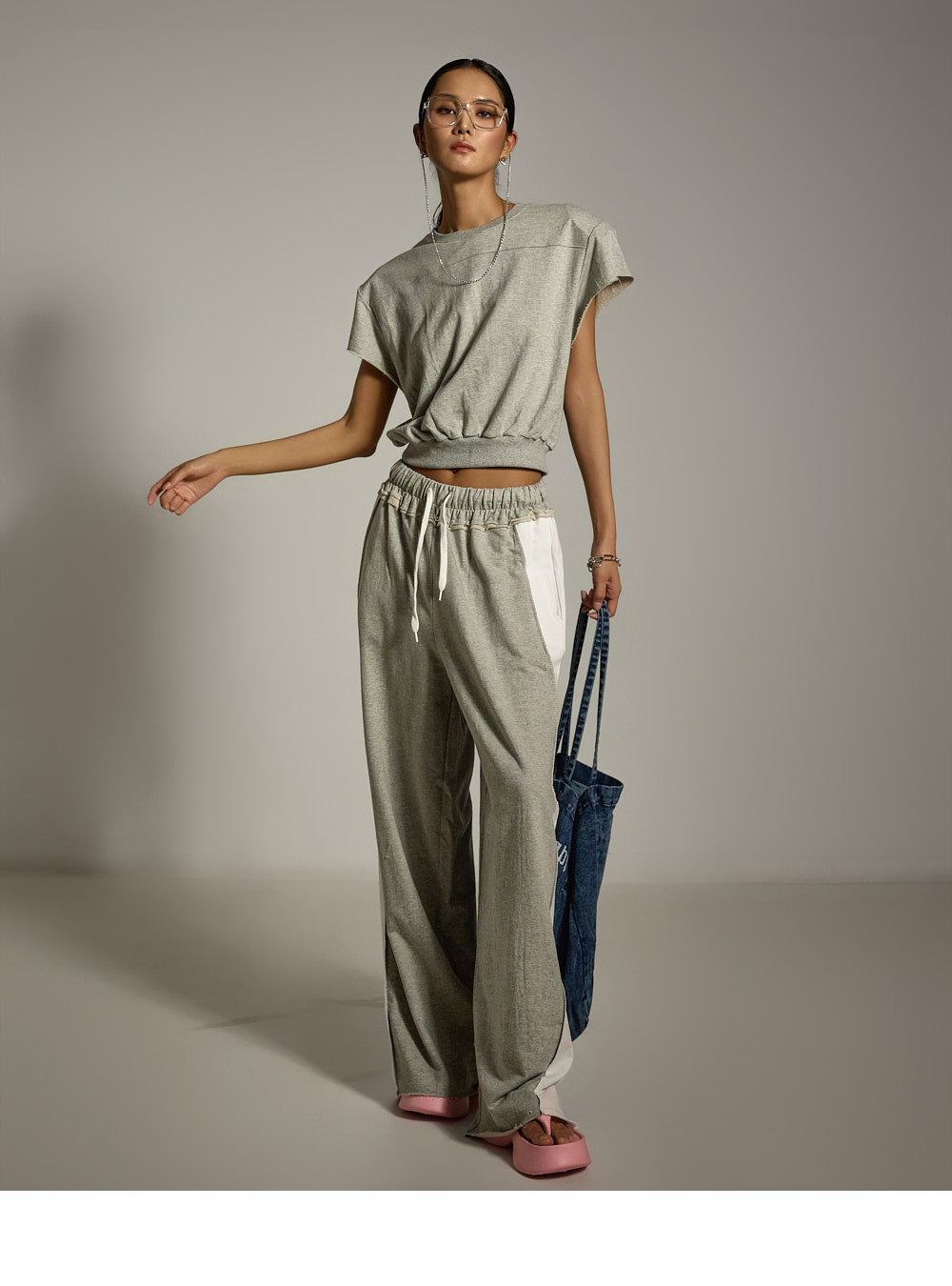 ゆったりとしたクロップドトップスと