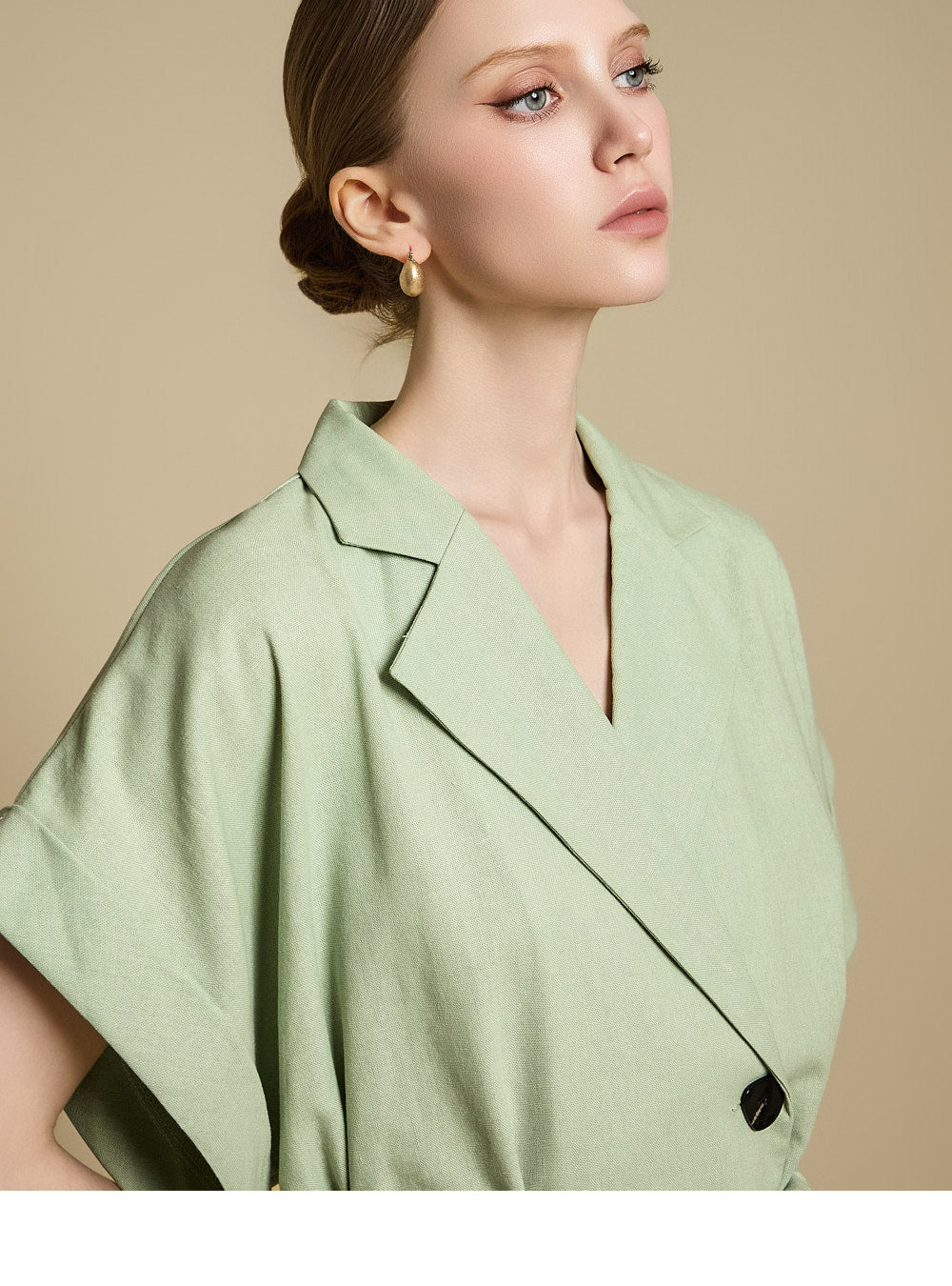 ジャケットは、自然にドレープするシルエットでリラックスしたフィット感が特徴です。