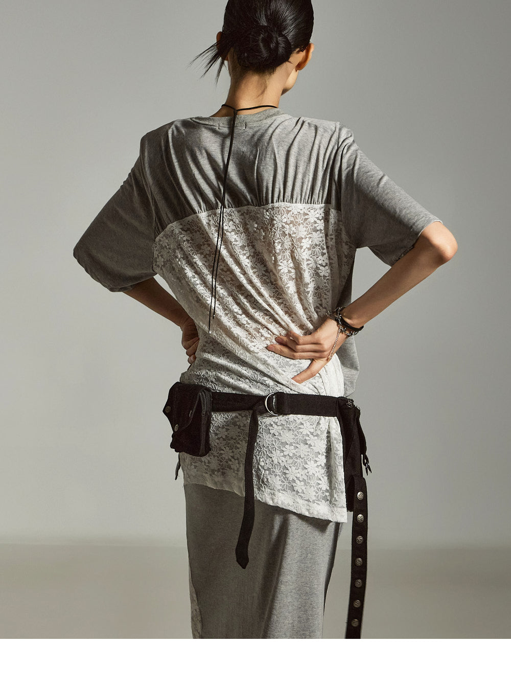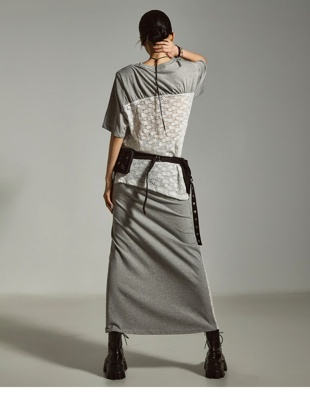 スカートはレースのレタリングディテールが施されたストレートシルエットです。