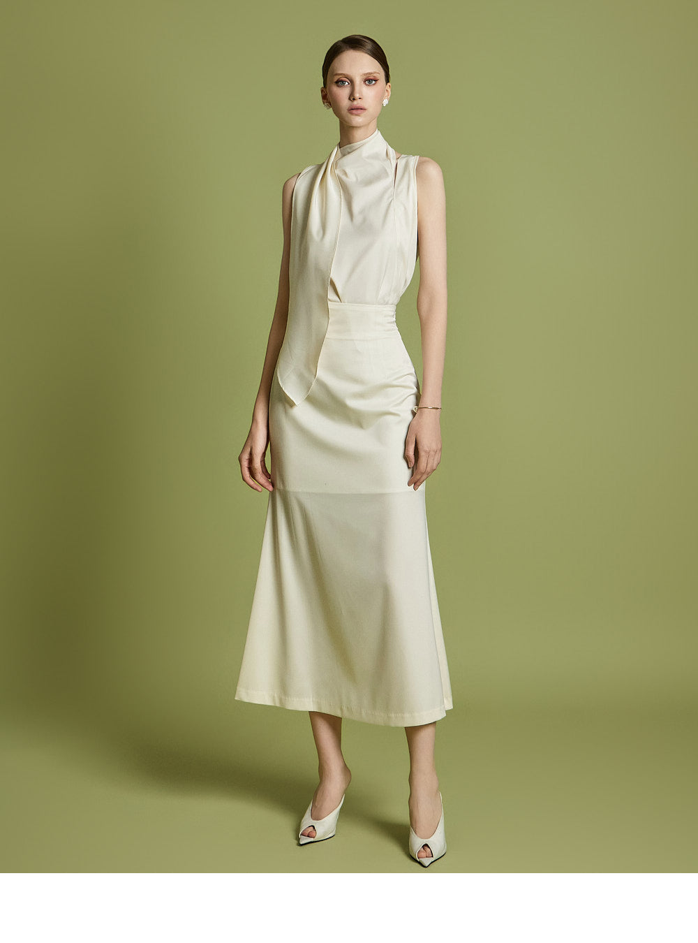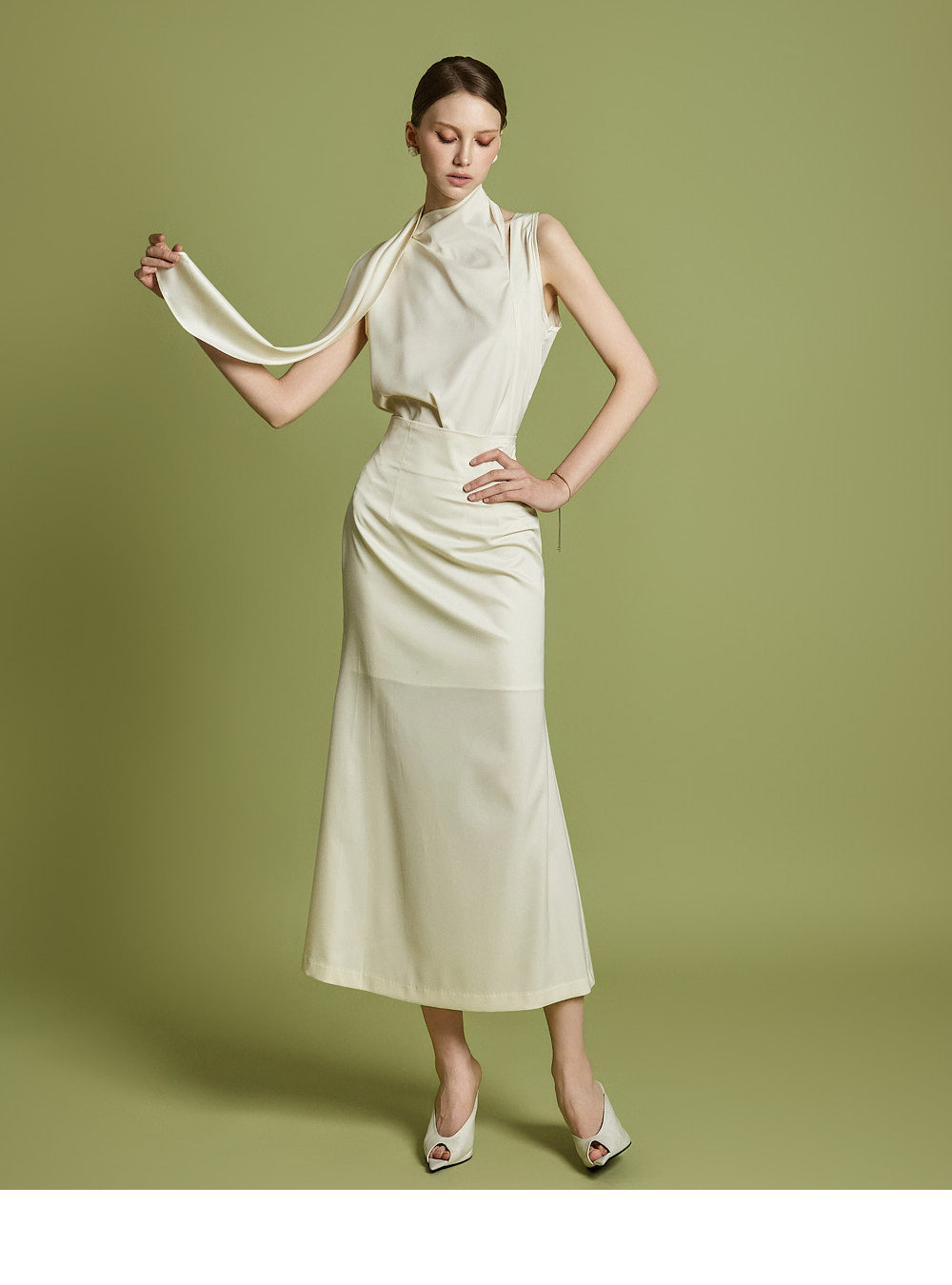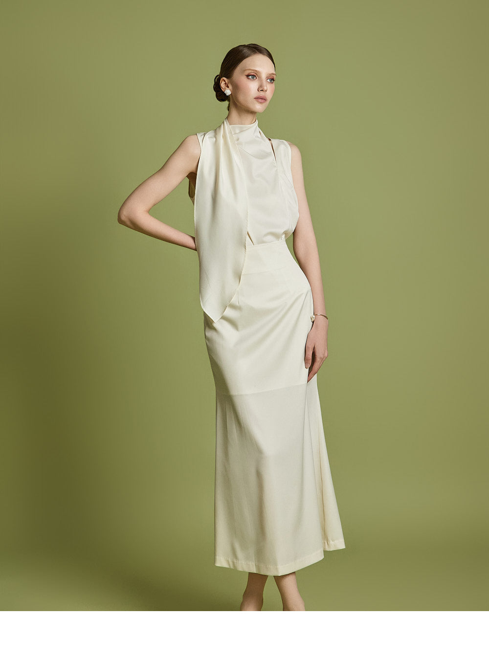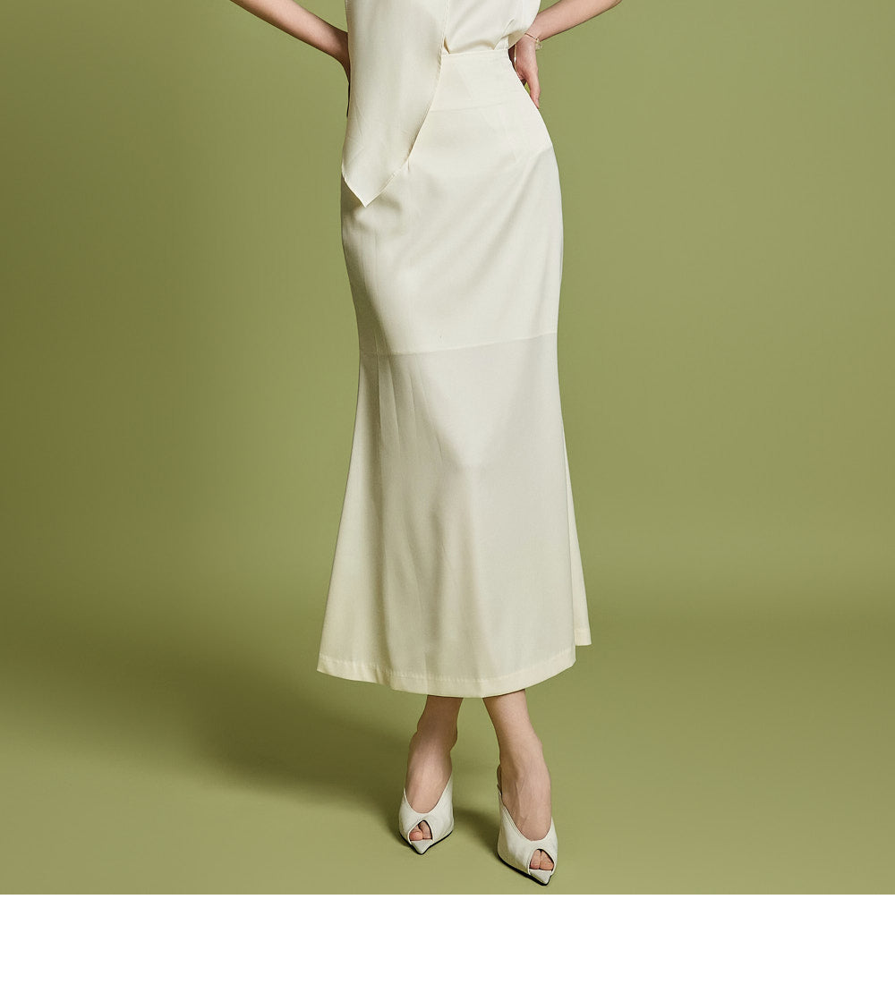 スカートは女性らしいマーメイドカットで仕立てられています。
