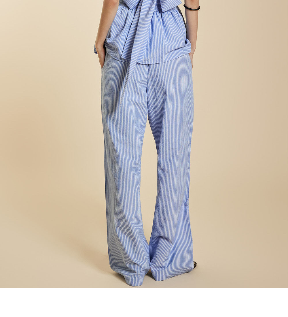ゆったりとしたワイドレッグカットに縦縞を組み合わせた