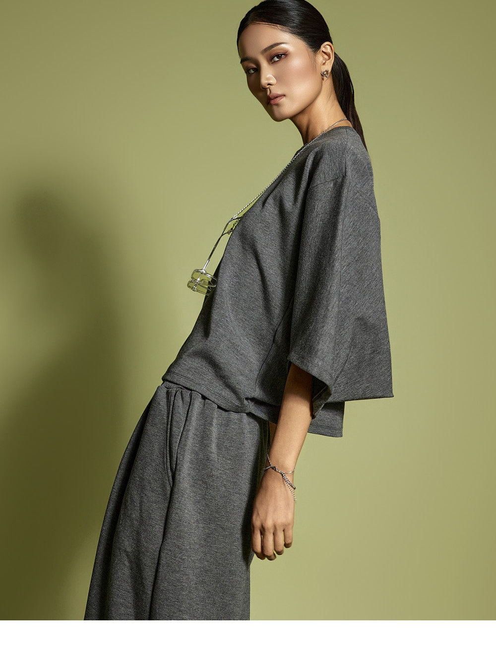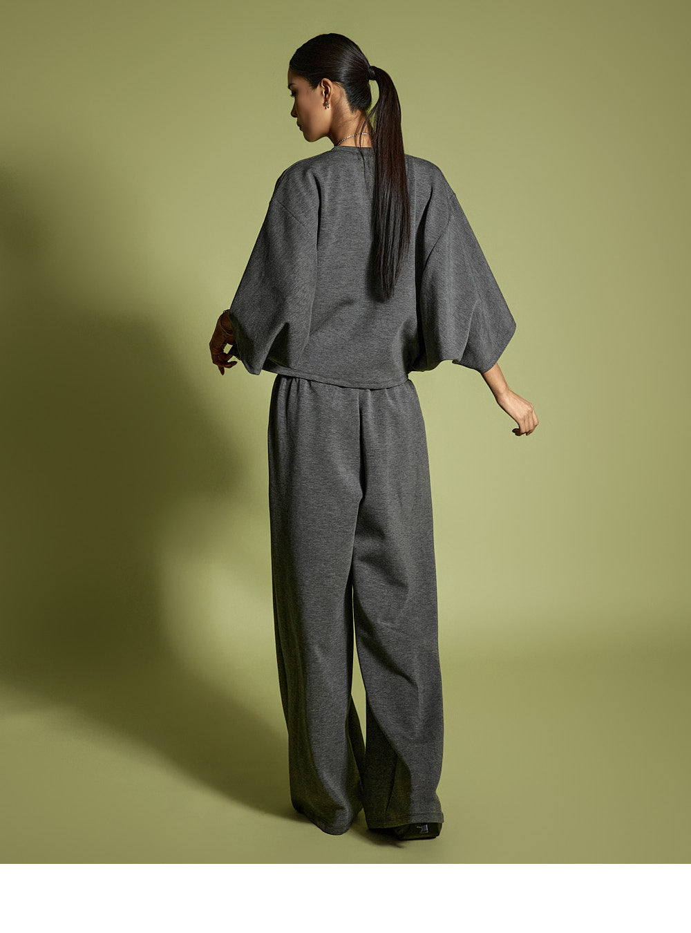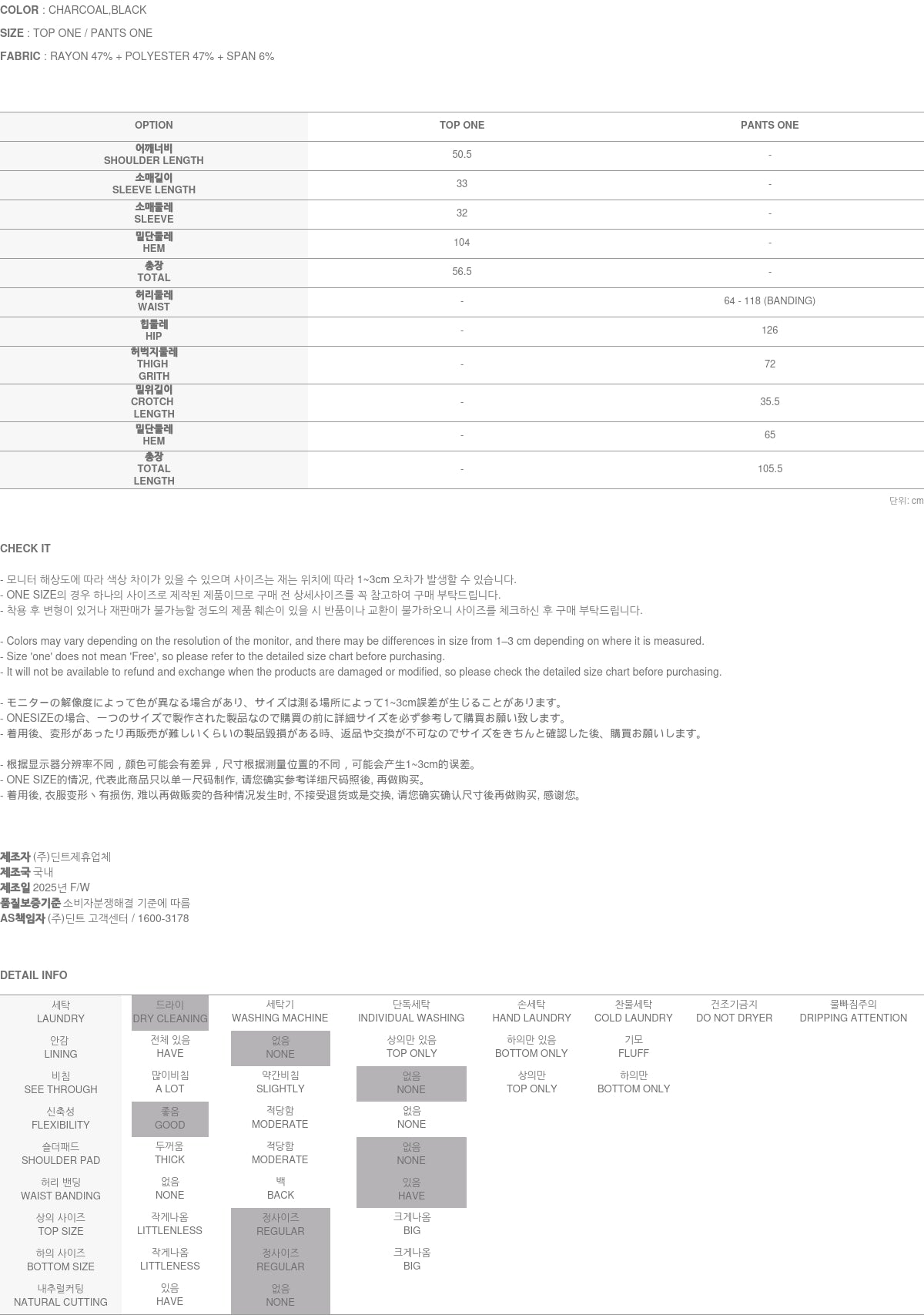 Model is 173CM, wearing ONE SIZE for both top and bottom in Charcoal.
