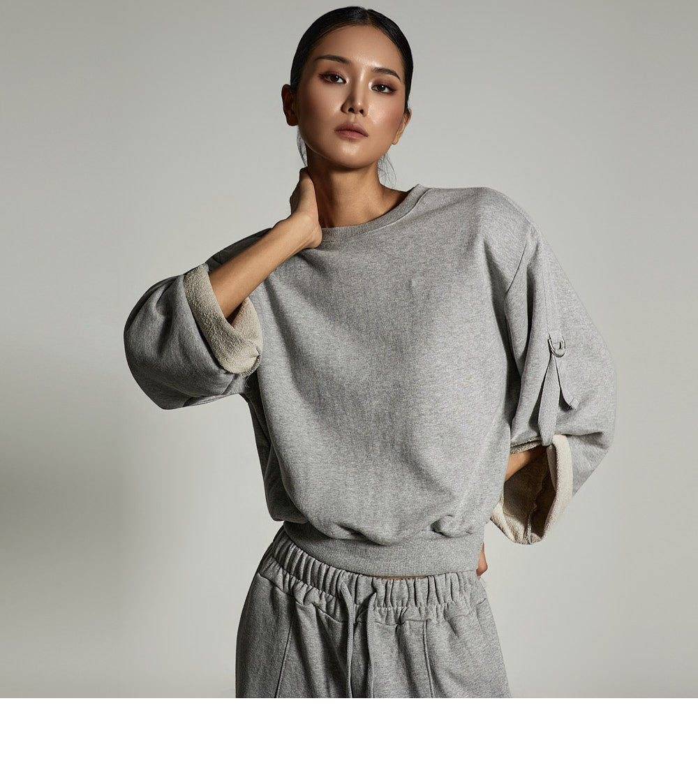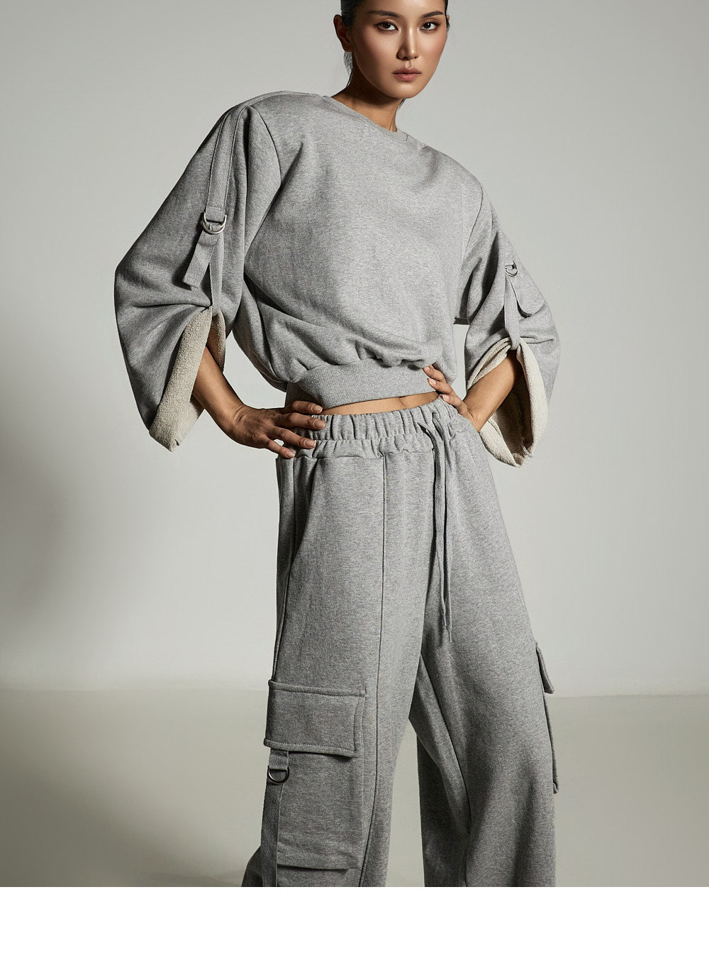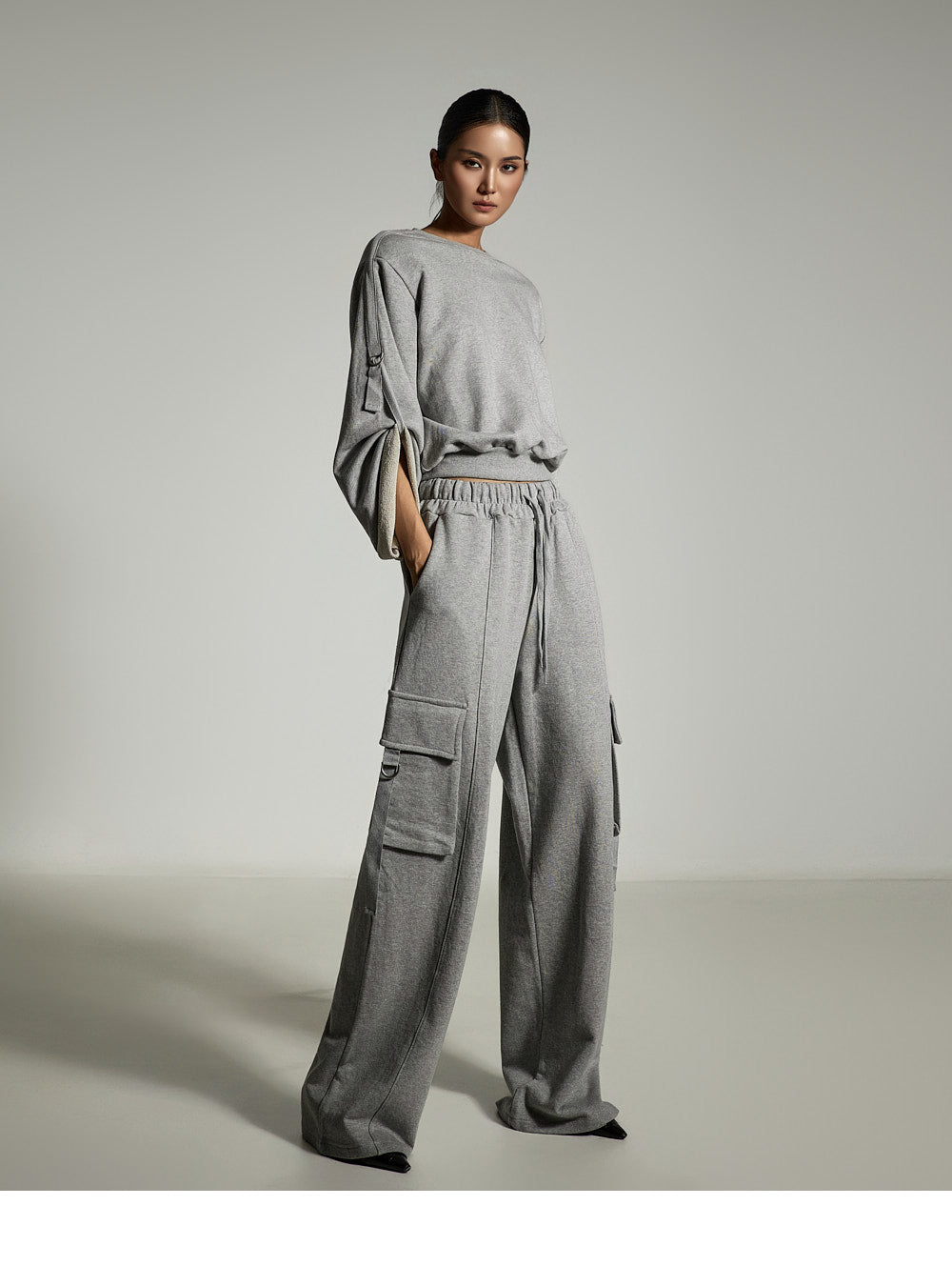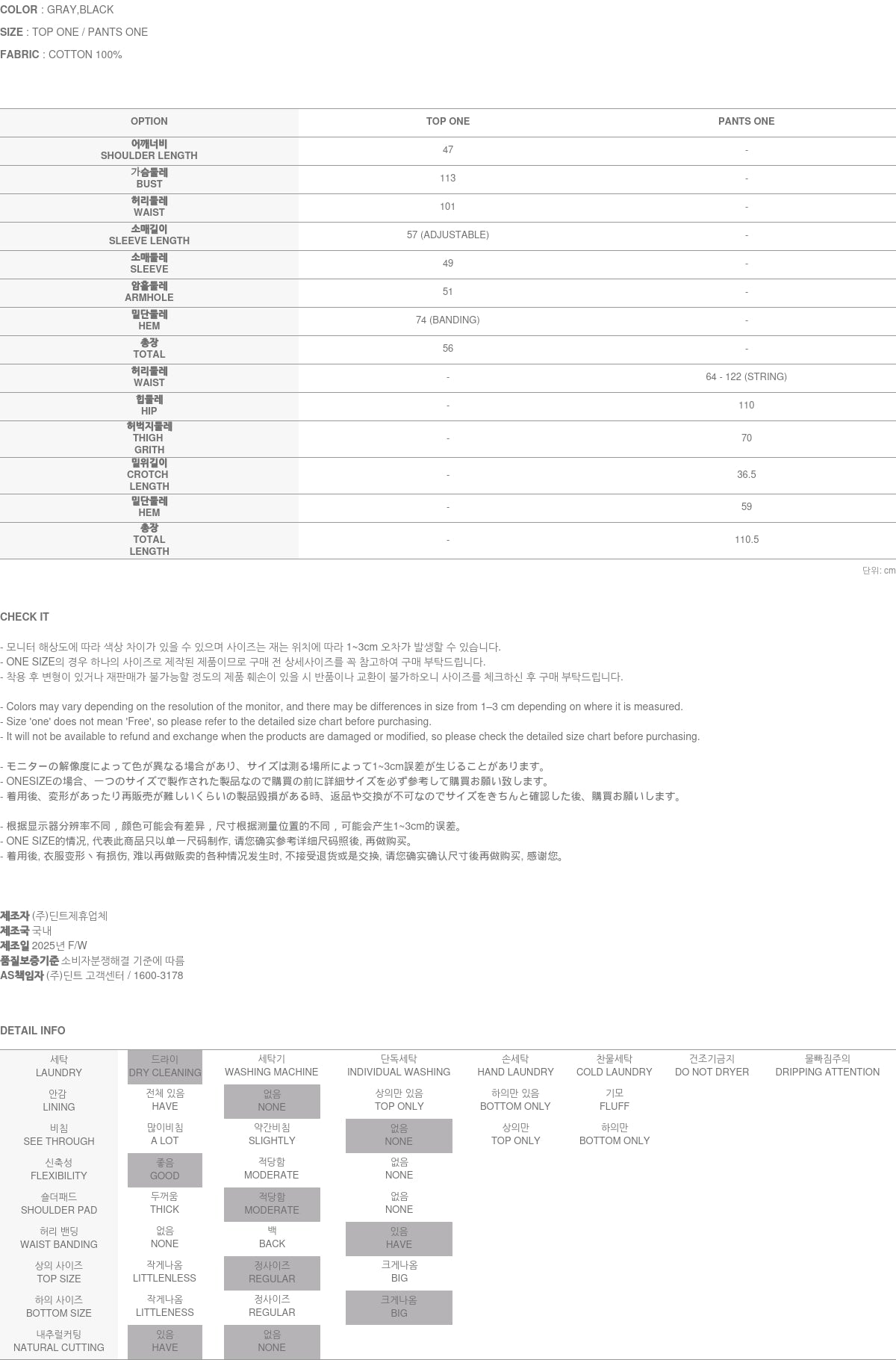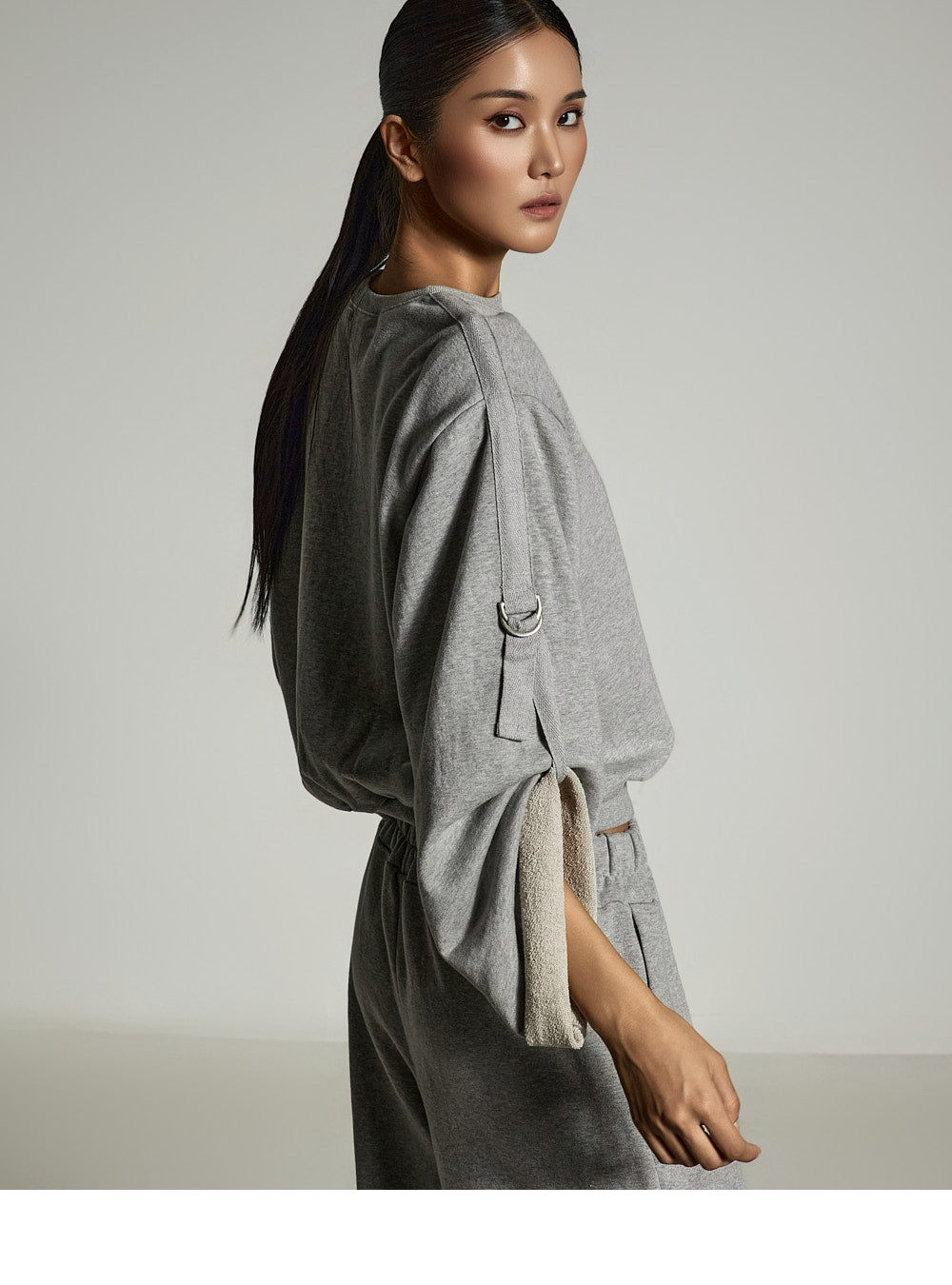Model is 173CM, wearing ONE SIZE for both top and bottom in Gray.