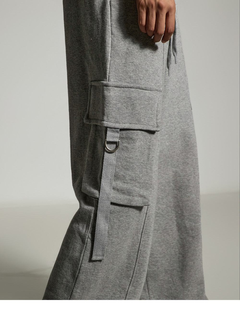 The pants have a relaxed fit with an adjustable drawstring waist,