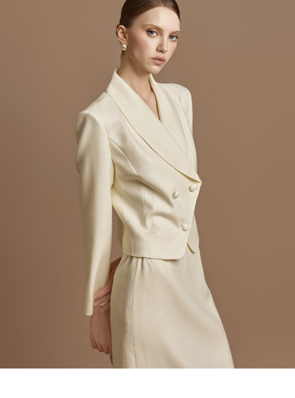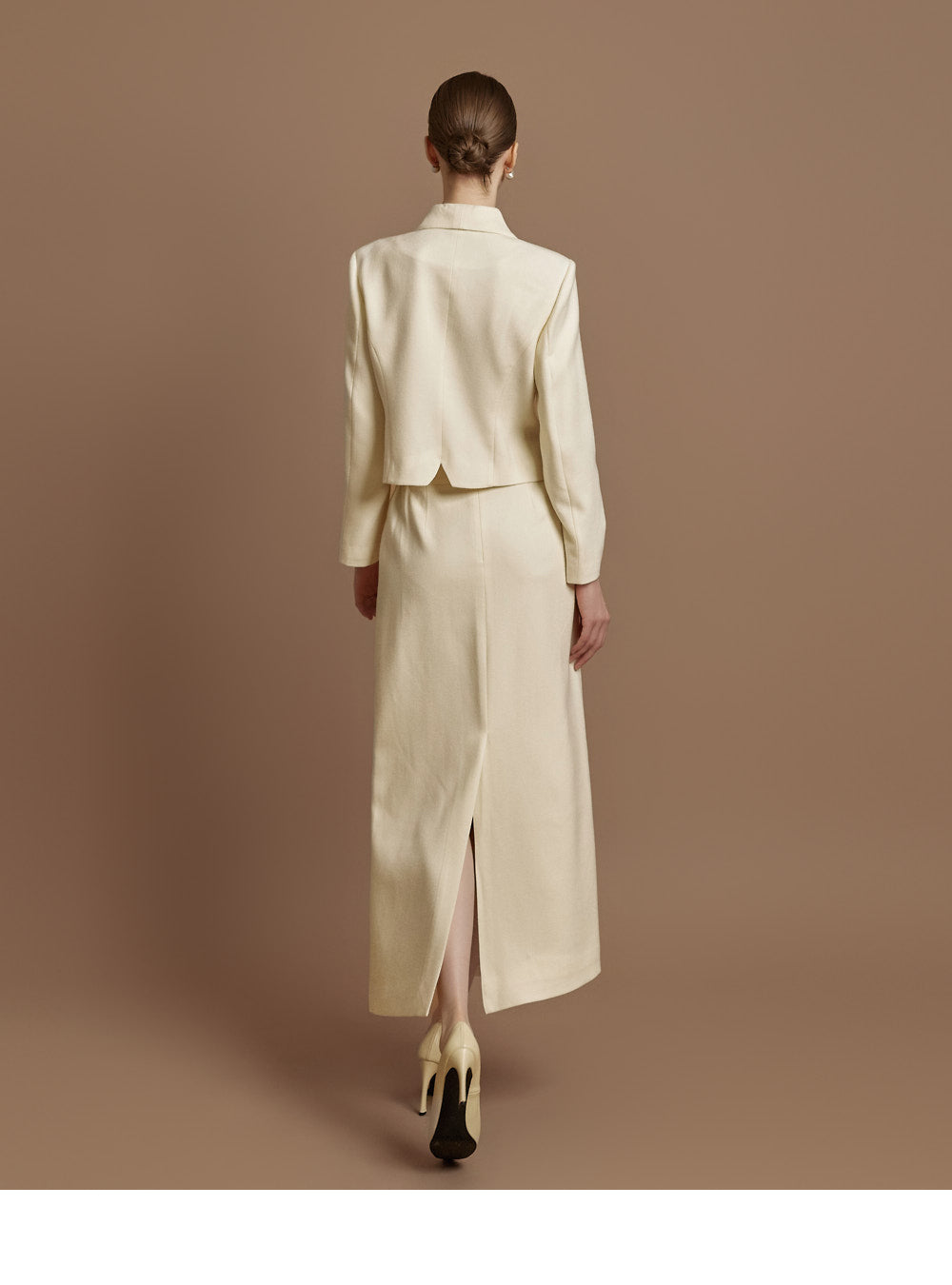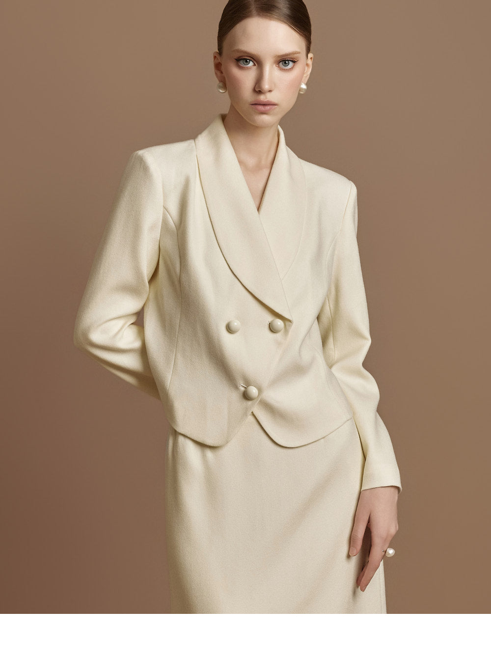 This jacket and skirt set exudes a classic vibe.