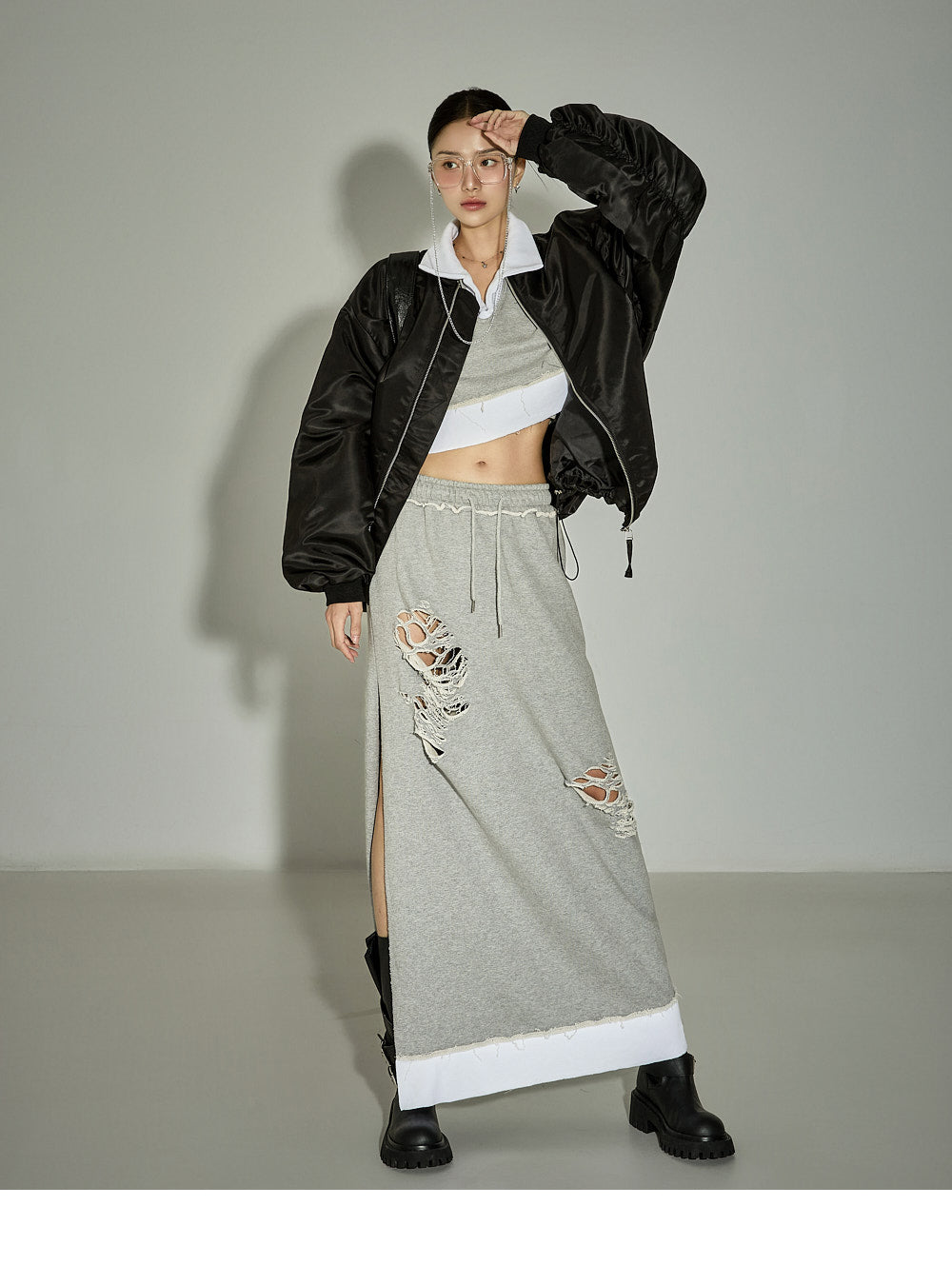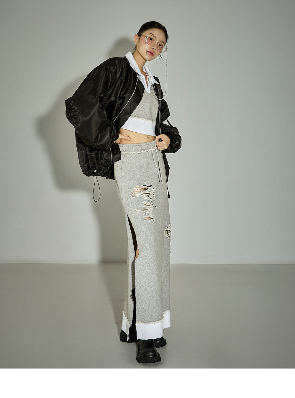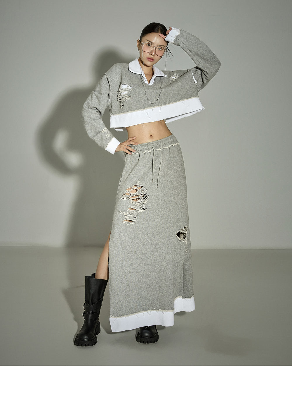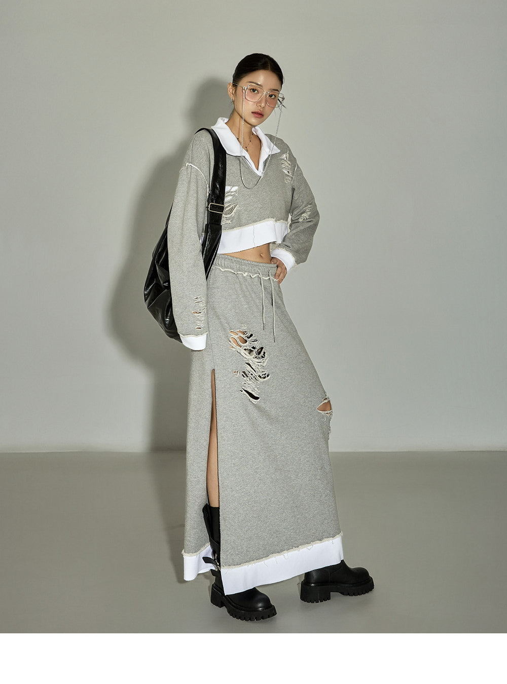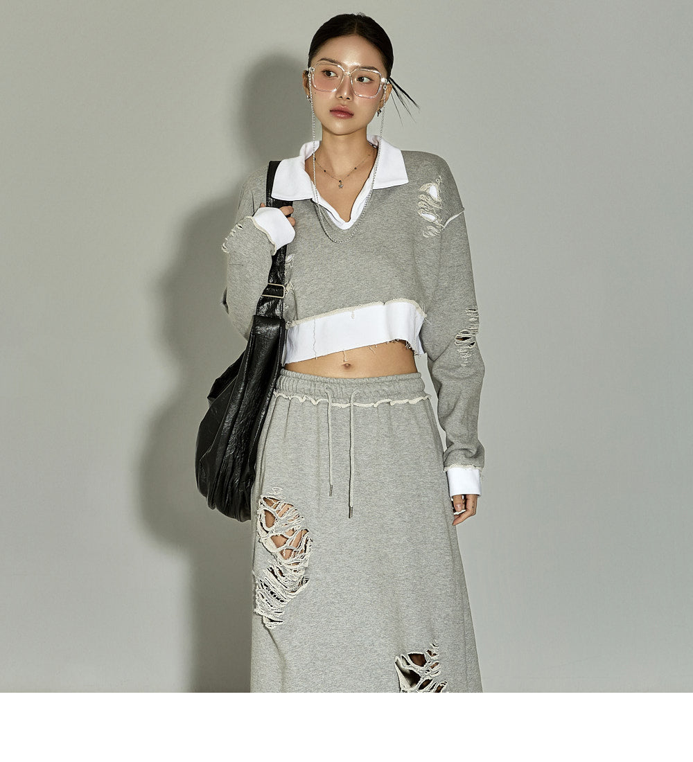 [For set discount items, please return both the top and bottom together for exchanges or returns]This casual sweatshirt and skirt set has a chic vibe.