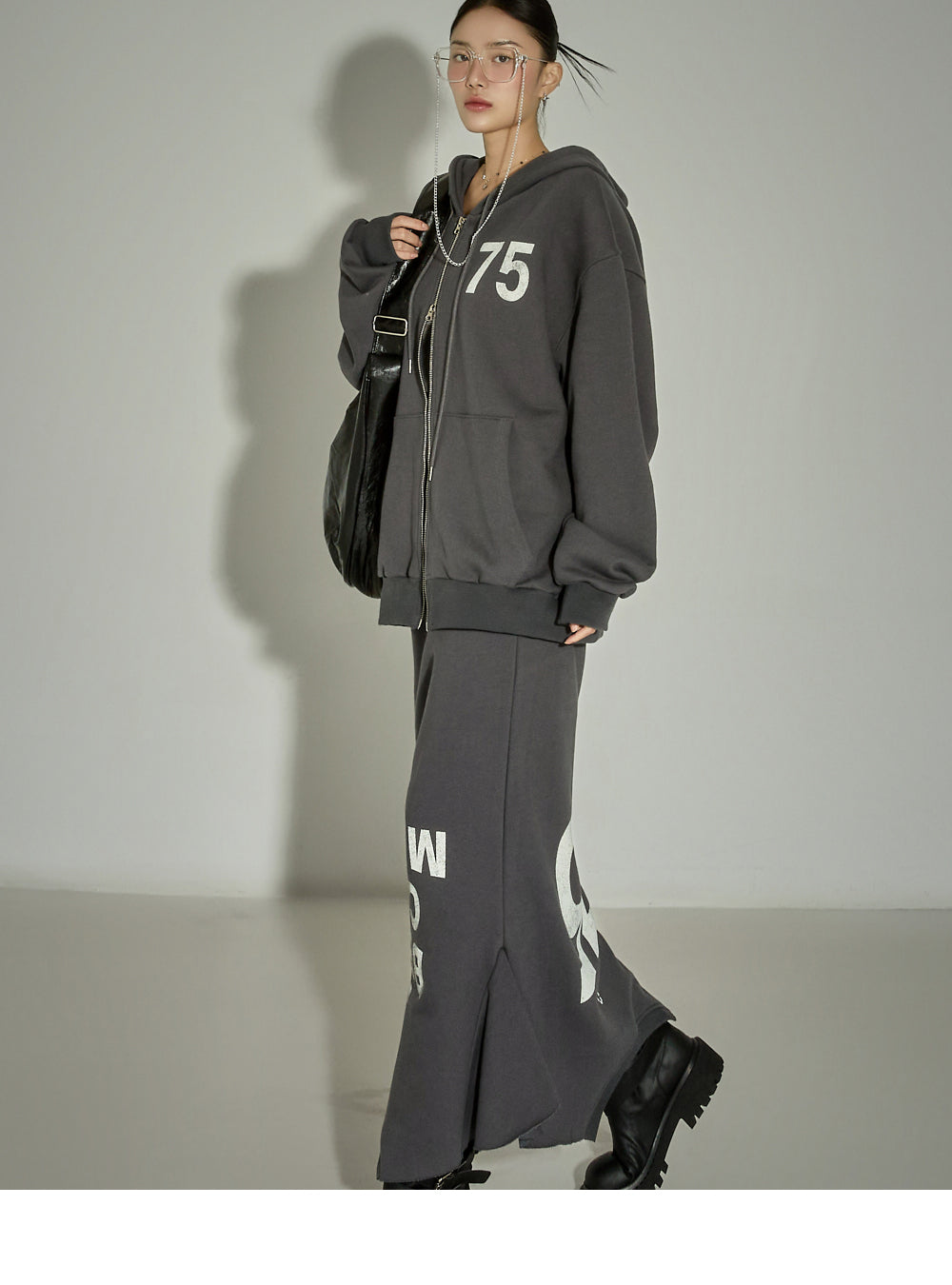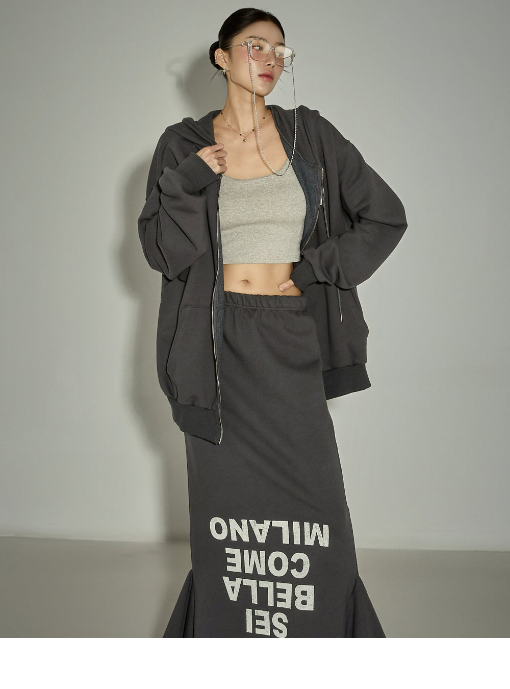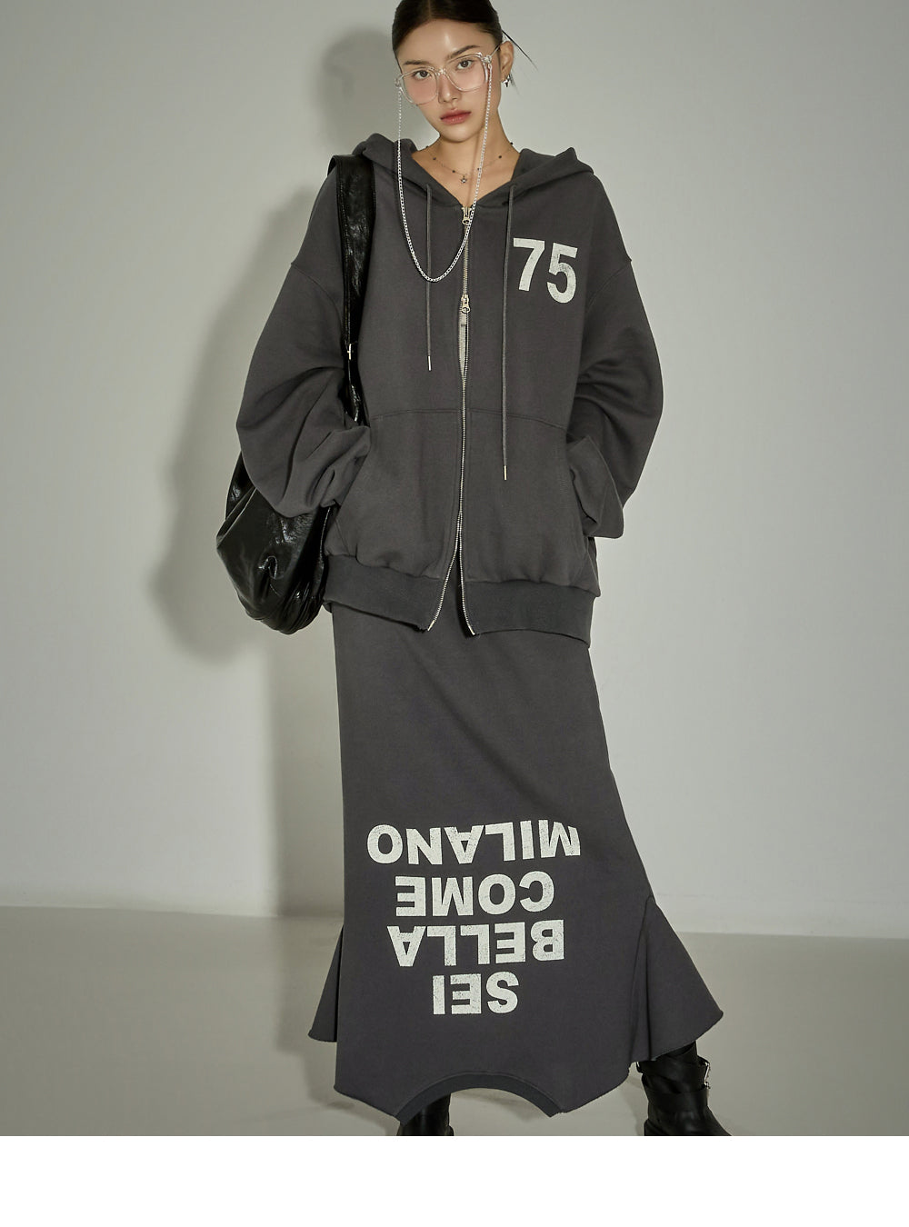 [For set discount items, please return both the top and bottom together for exchanges or returns]This chic hooded zip-up and skirt set is a stylish addition.