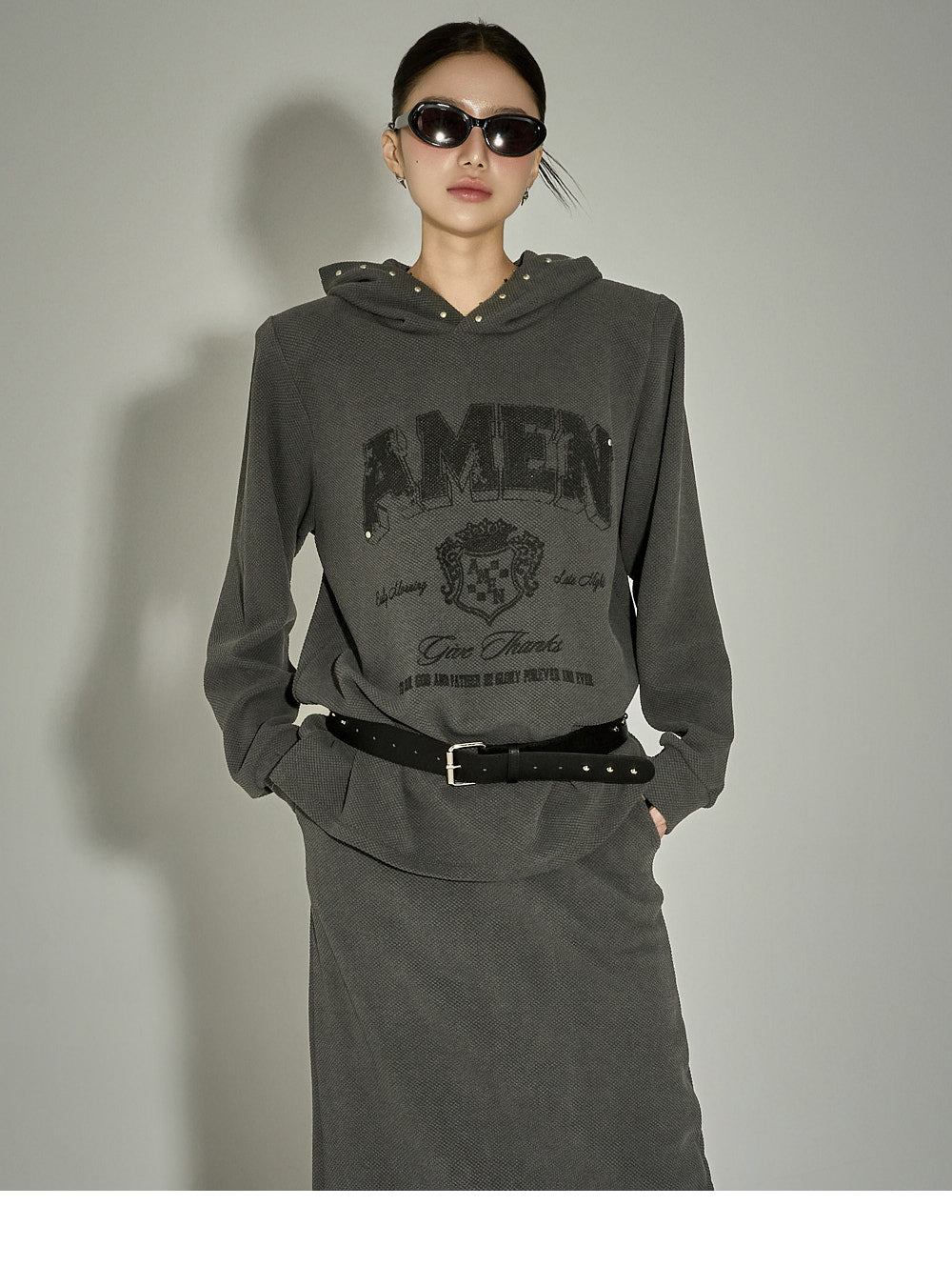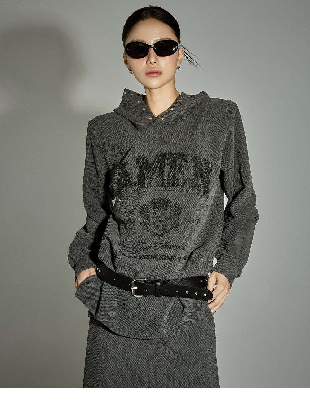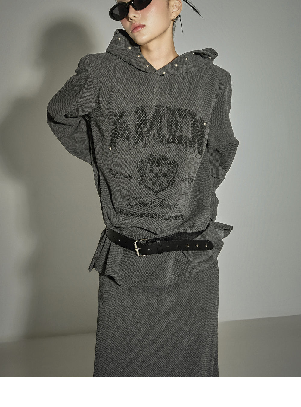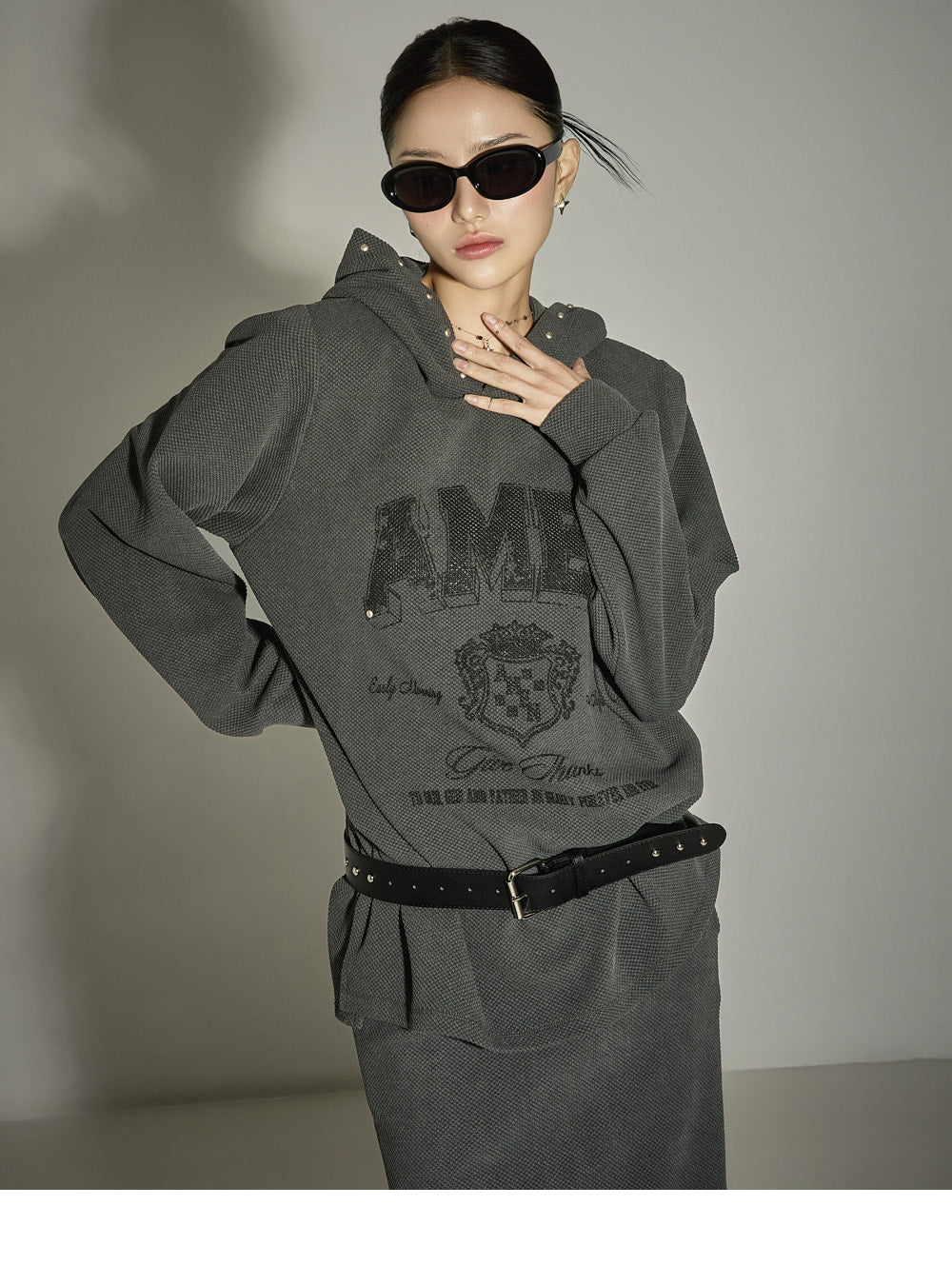 The hooded top is made from a polyester, cotton, and spandex blend,