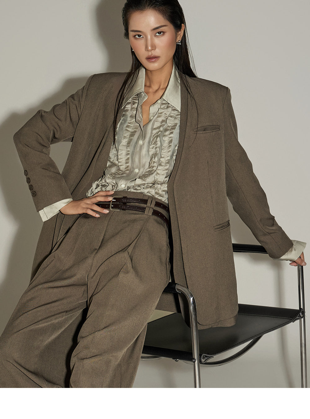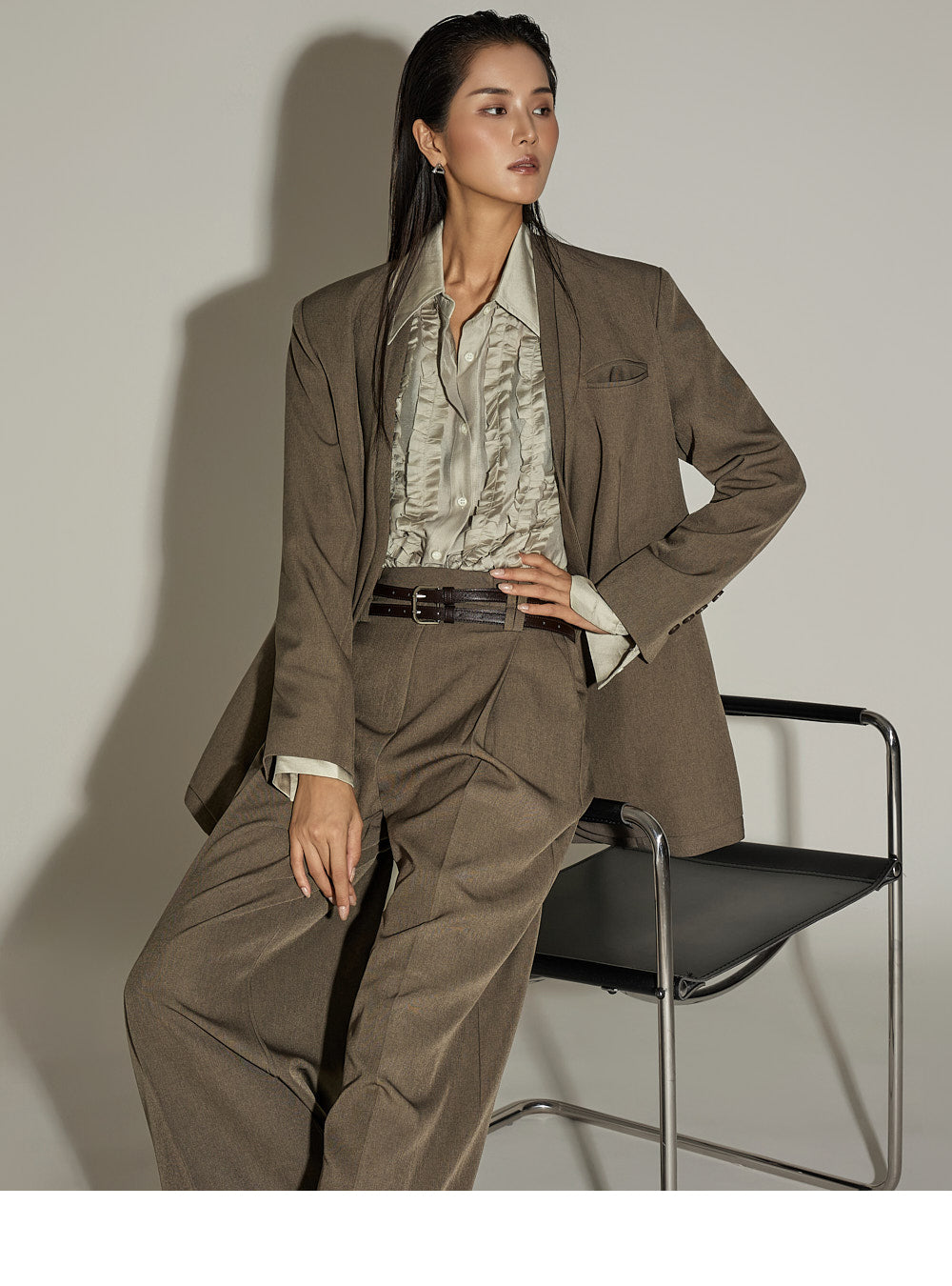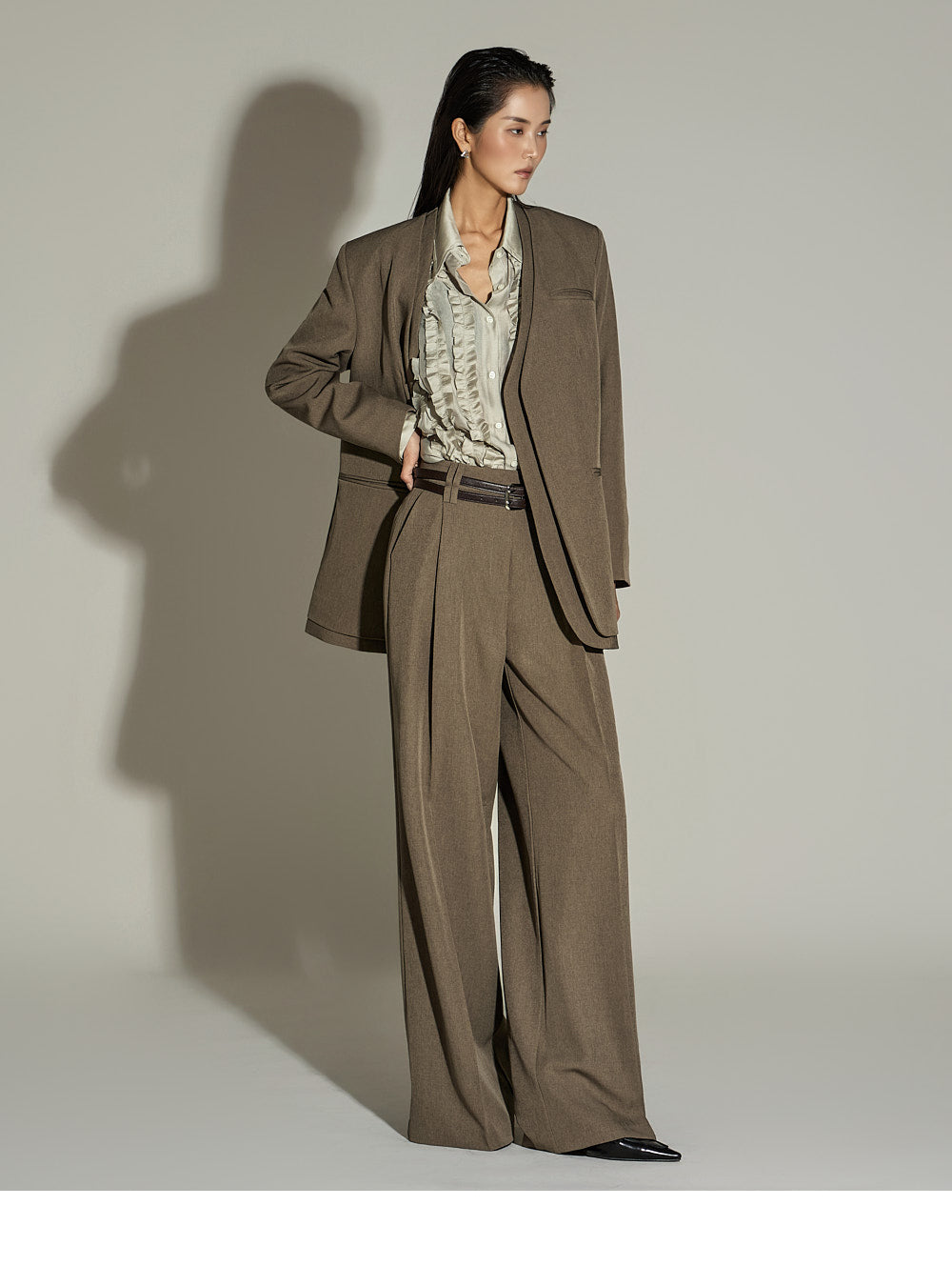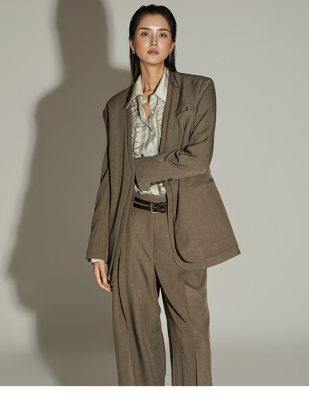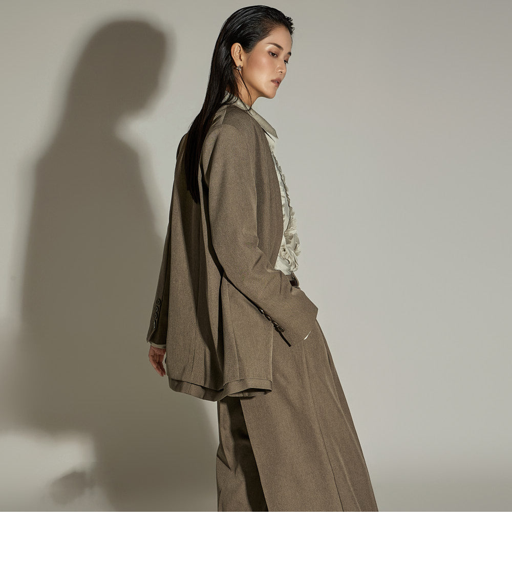 Model (173cm) is wearing a size ONE jacket and size S slacks,