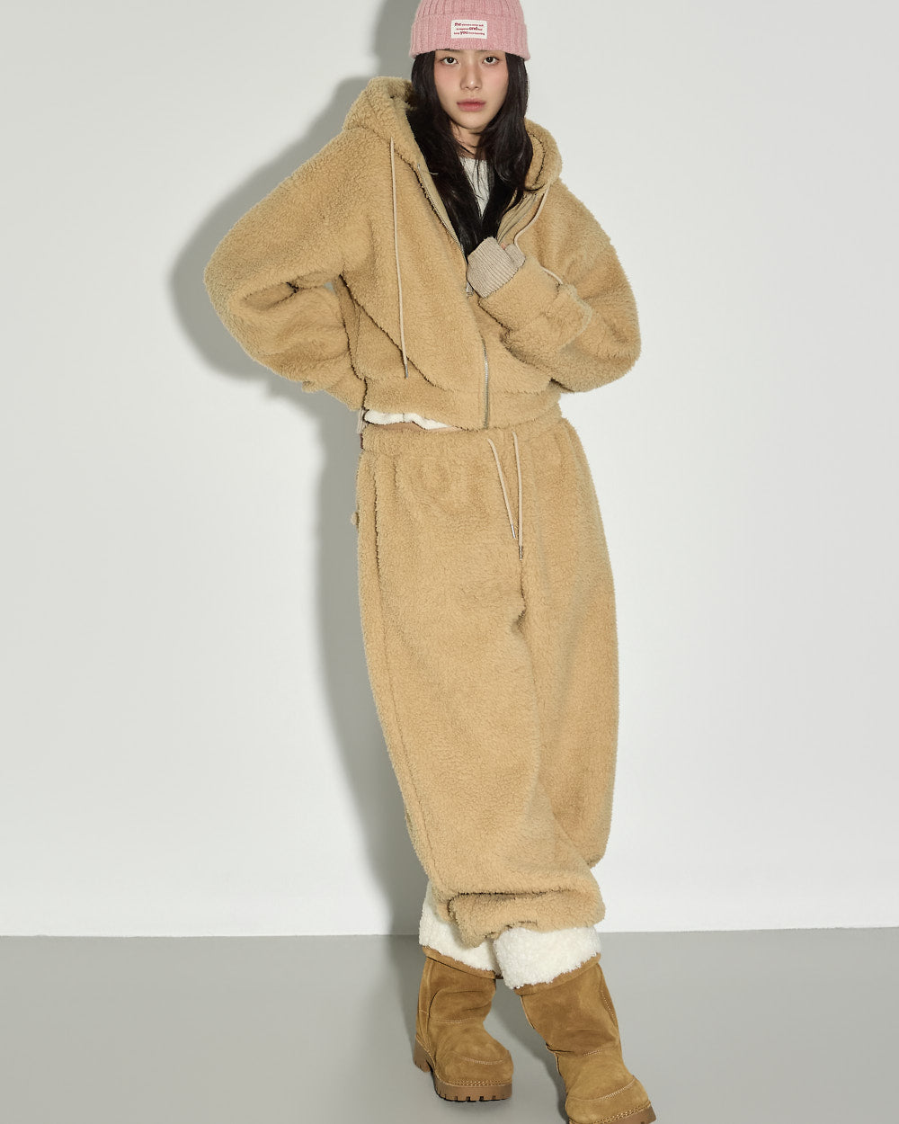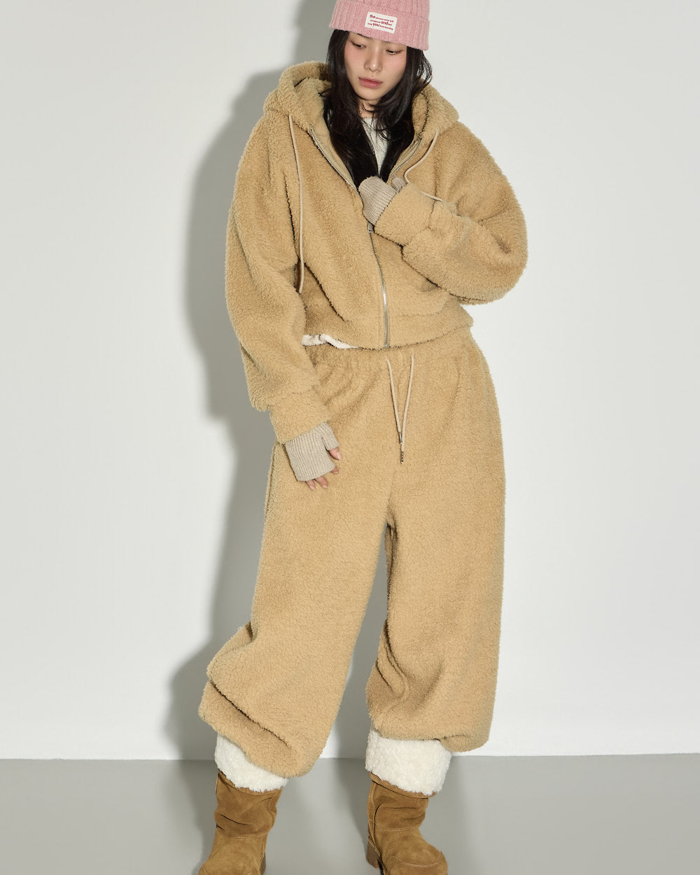 This cozy, casual fleece hooded zip-up and training pants set-up is a stylish addition.