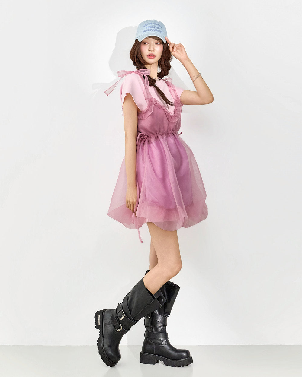 Frill accents and sheer textures enhance the layered look.