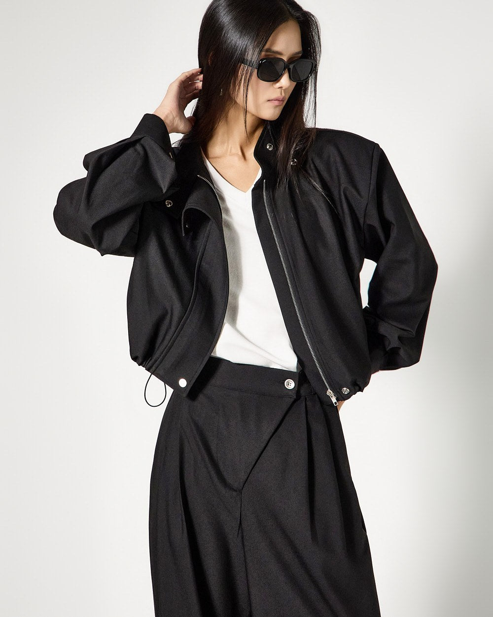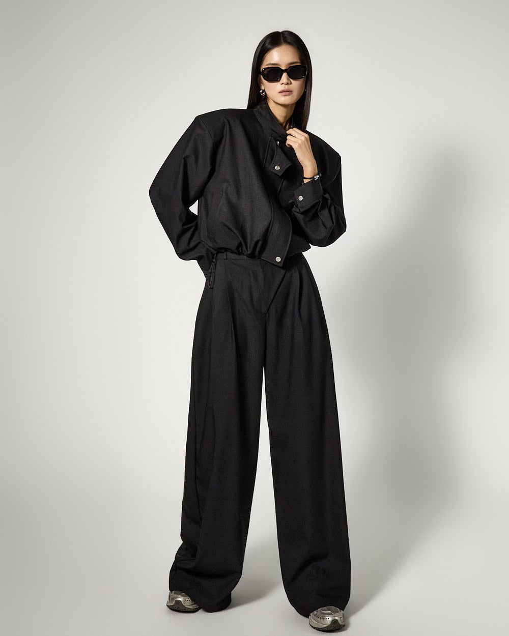 and the bottoms complete a naturally flowing silhouette with a wide fit,