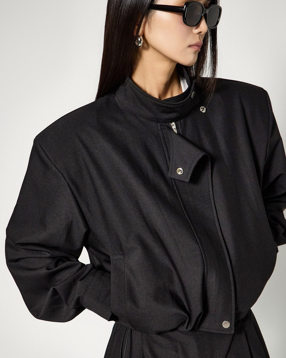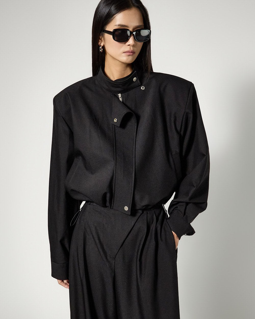 Additionally, the asymmetrical closure detail on the bottoms serves as a sophisticated accent,