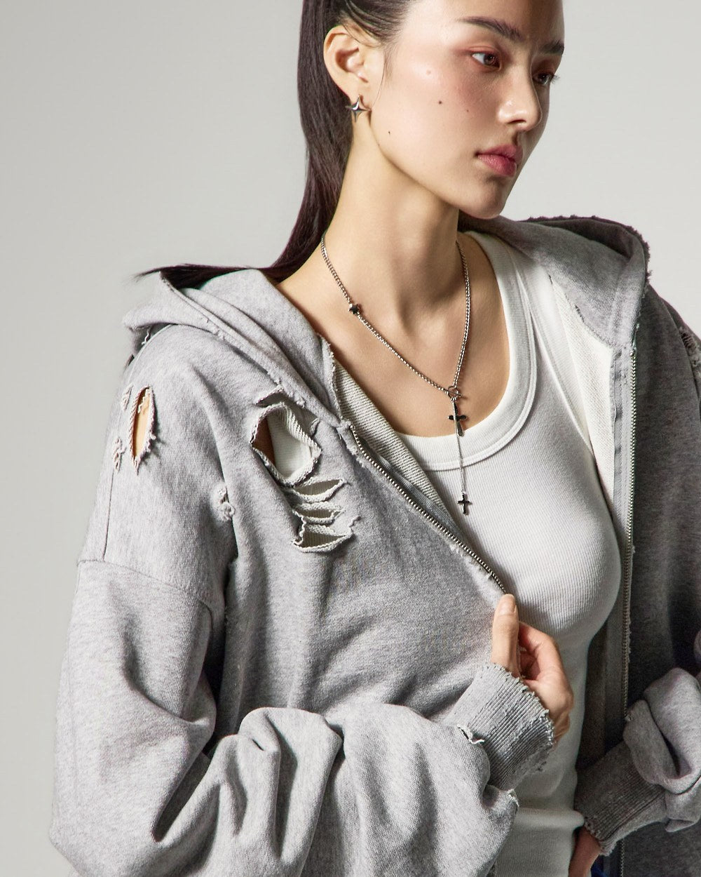 フードジップアップはフロントジッパーで着脱が簡単です。