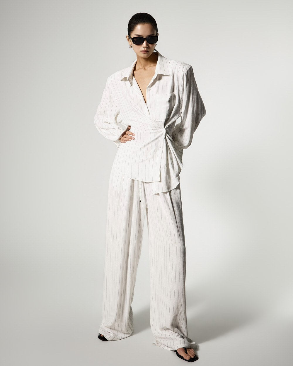 ほのかなストライプパターンが加わり、洗練された雰囲気を演出し、
