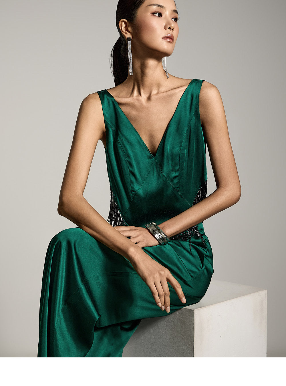裾のビーズフリンジがユニークな雰囲気を醸し出します。