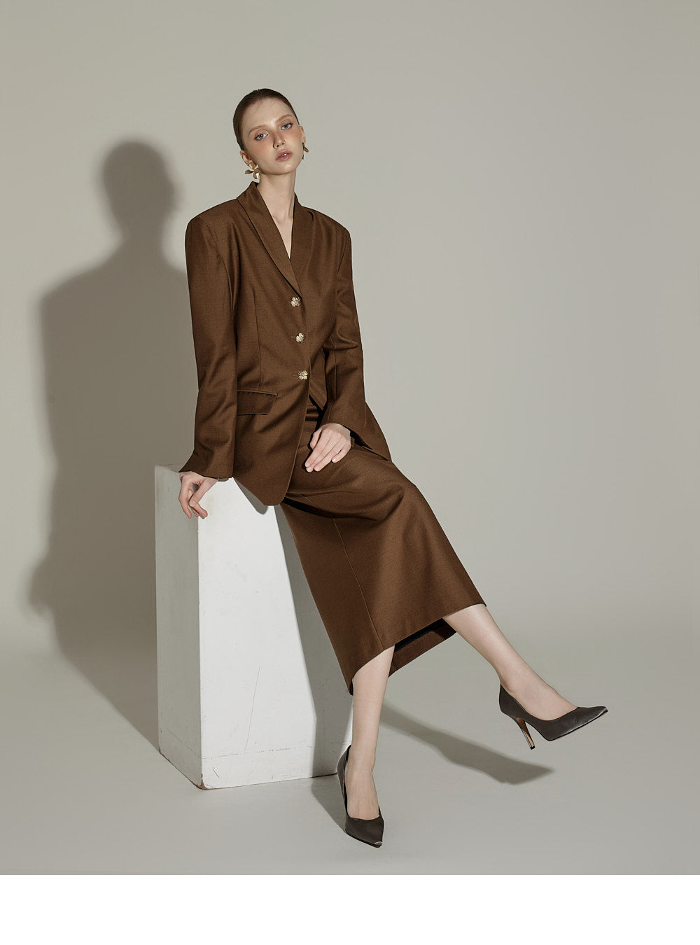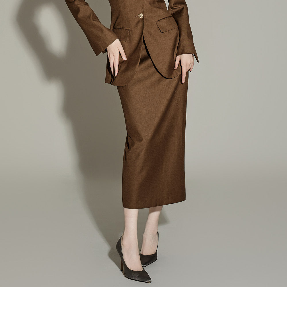 This autumn-inspired jacket and skirt set is perfect for fall.