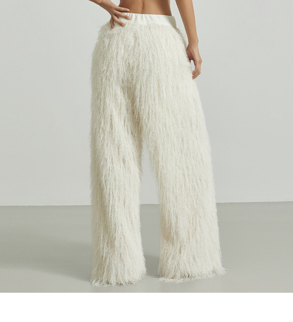 The pants are long and wide-fitting, creating a natural, slim leg silhouette,