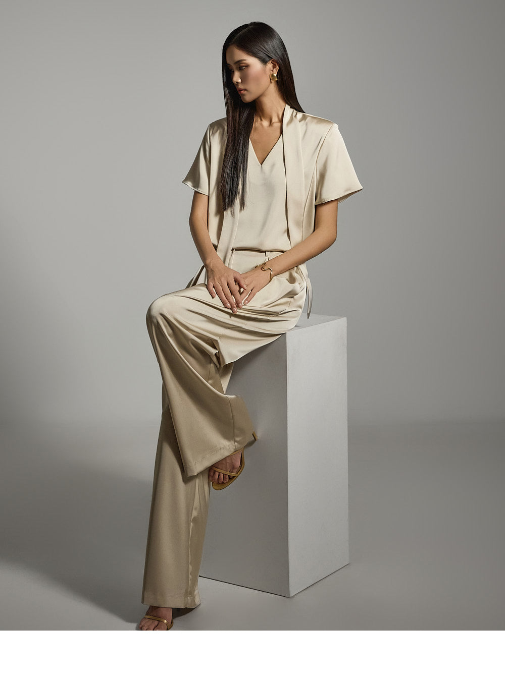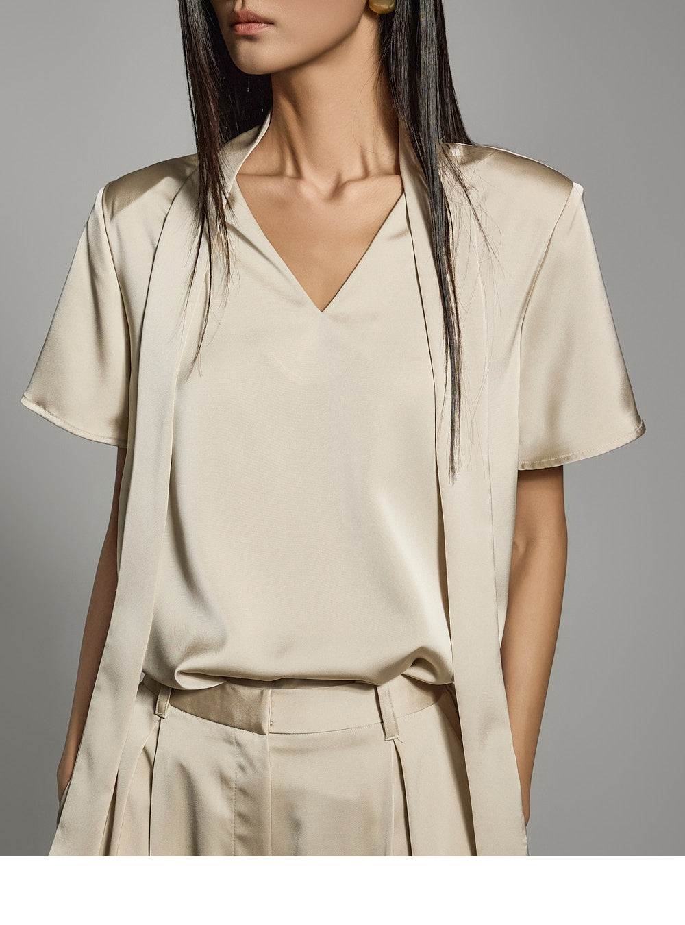 V 领口与系带细节相得益彰,