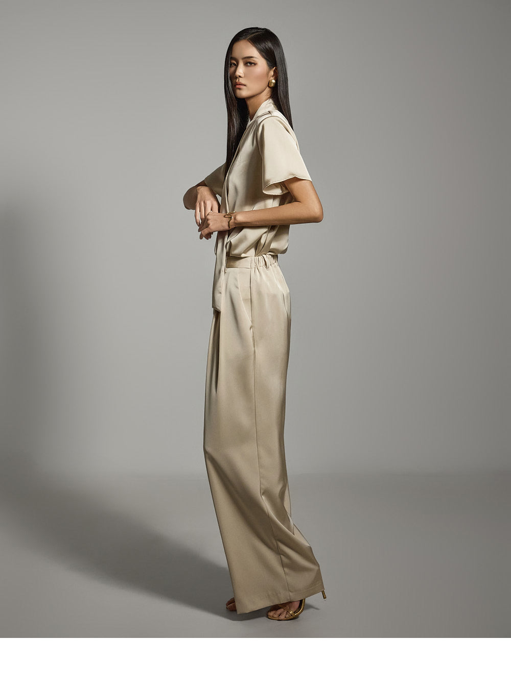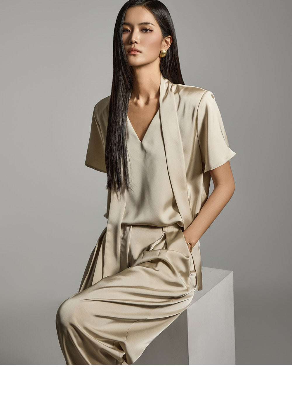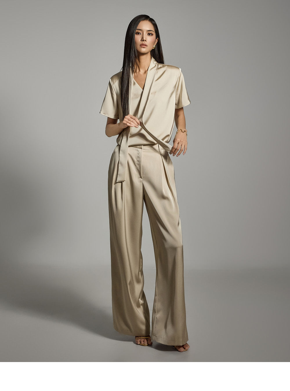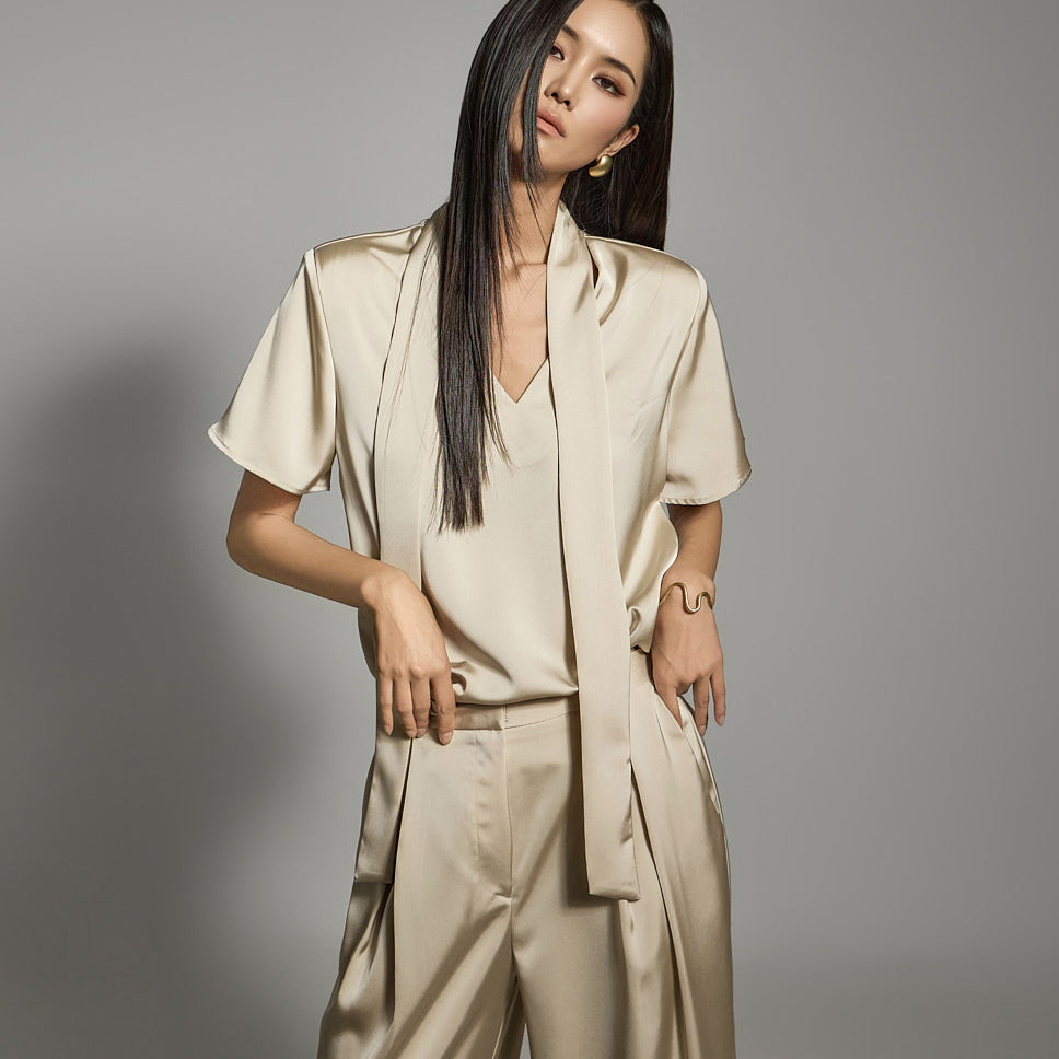 一件充满女性气质的缎面衬衫。