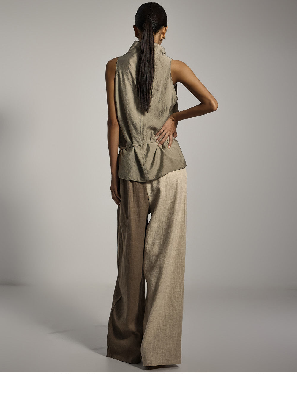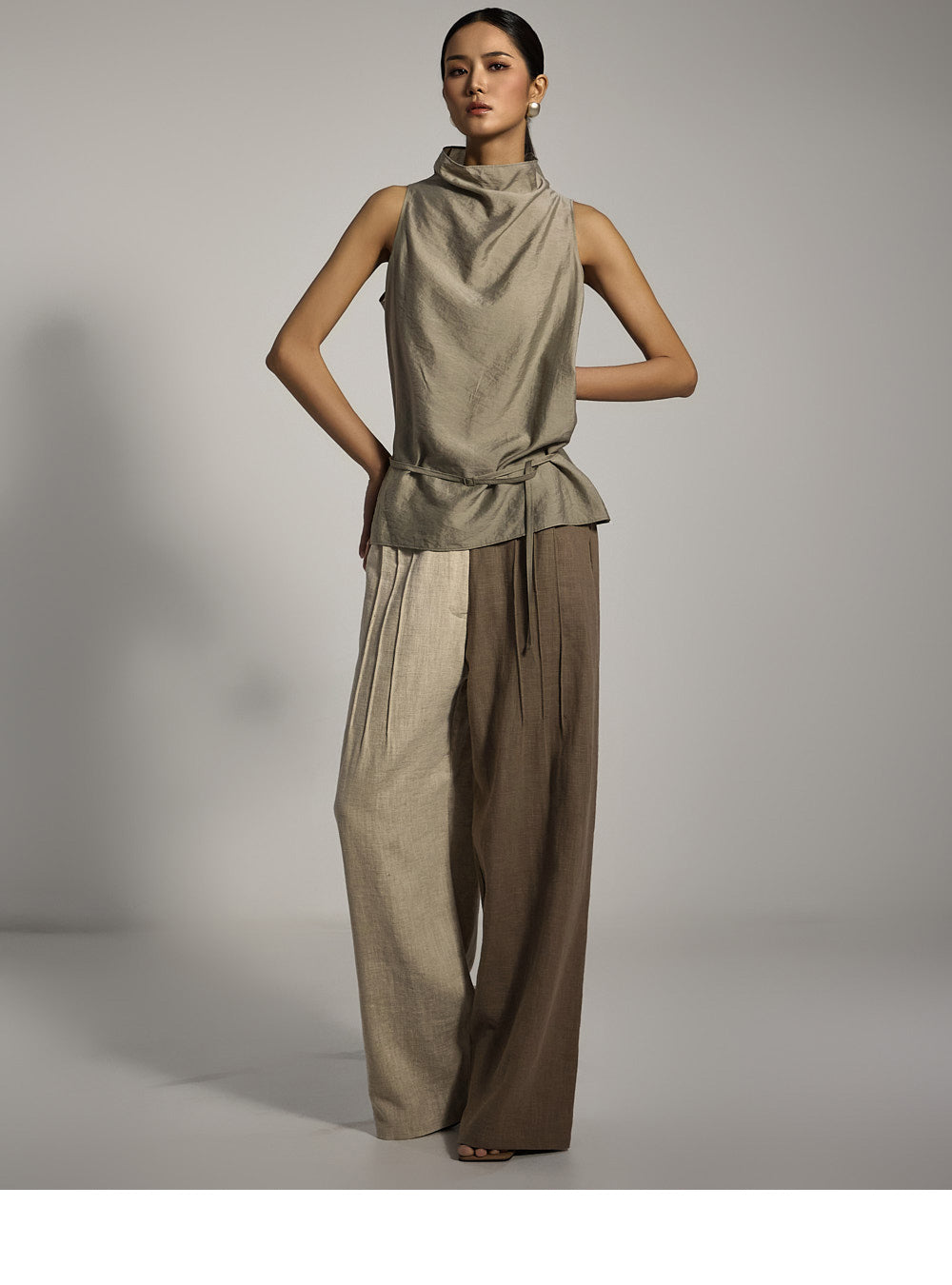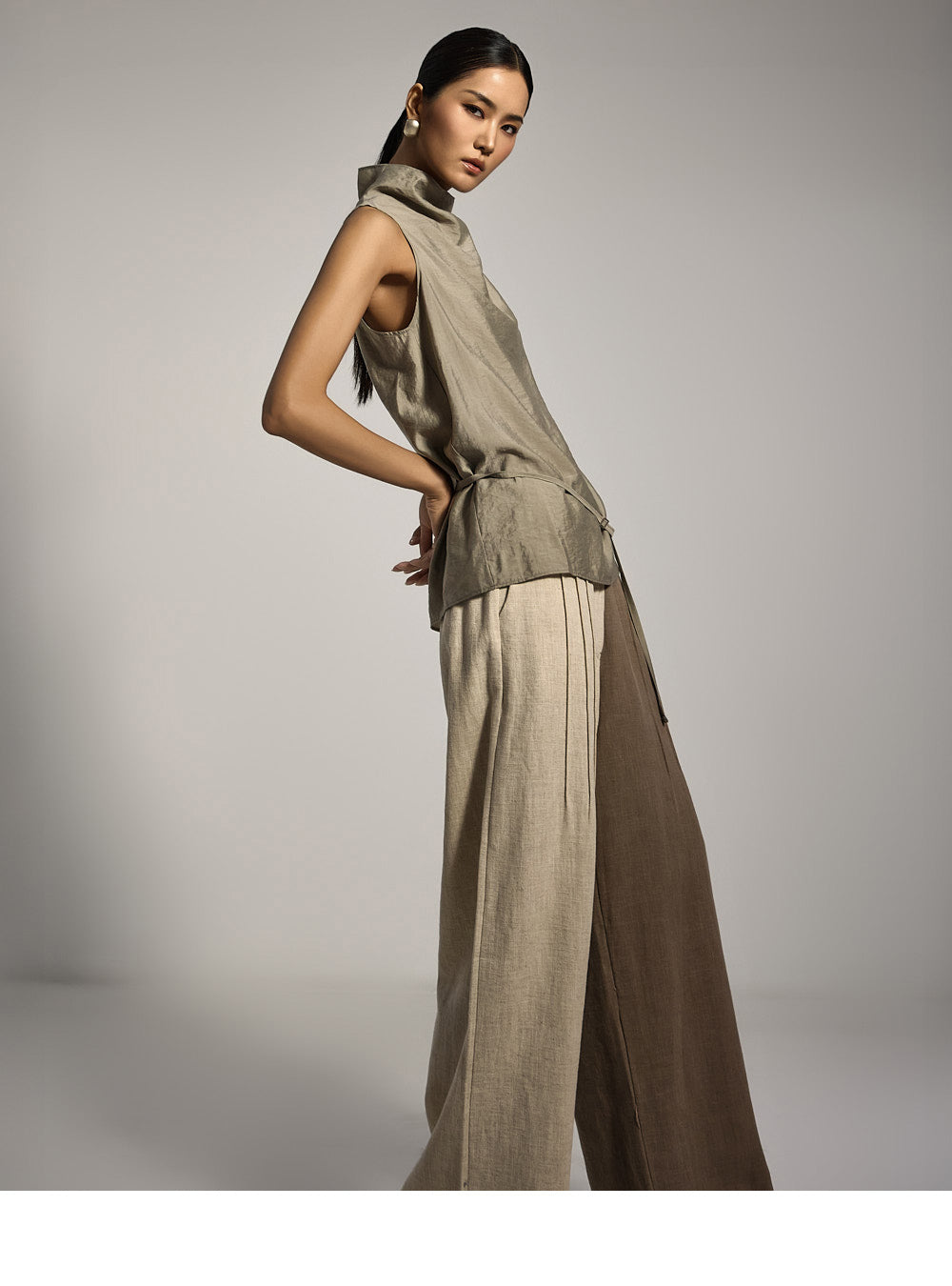 无袖设计搭配褶皱领口,带来微妙的触感,