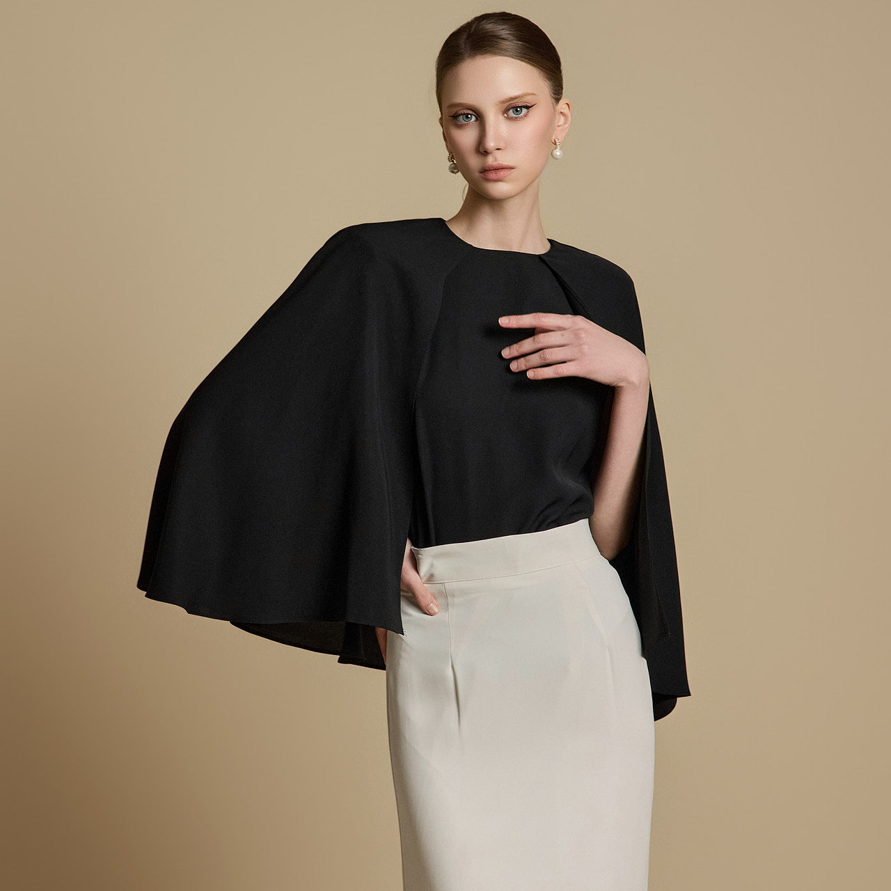 这是一件优雅的斗篷衬衫。