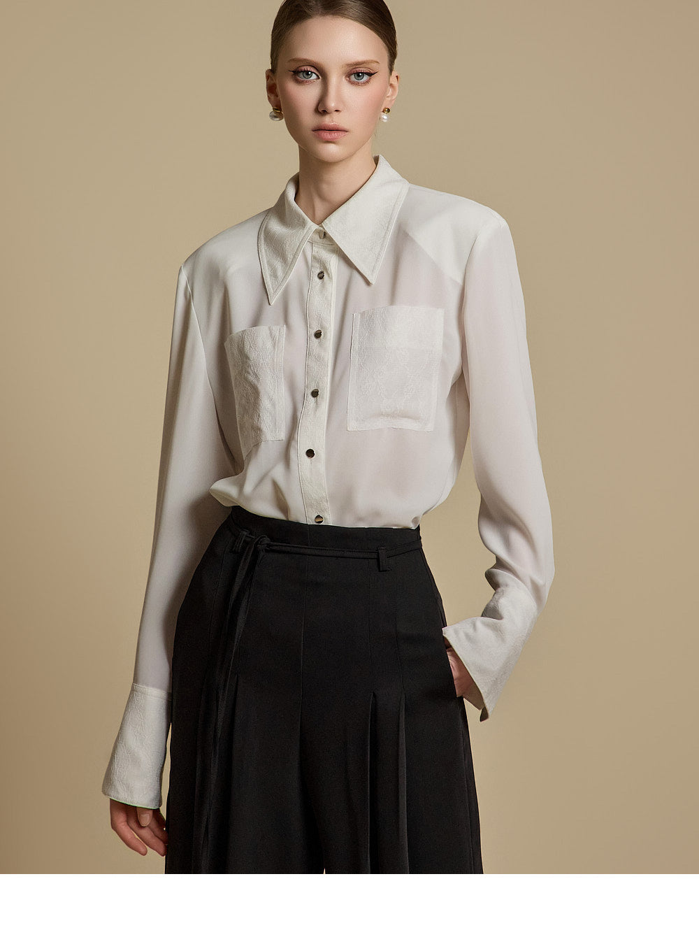 袖口口袋线上的蕾丝细节增添了微妙的点缀。